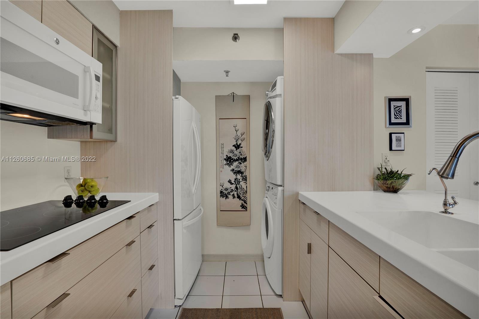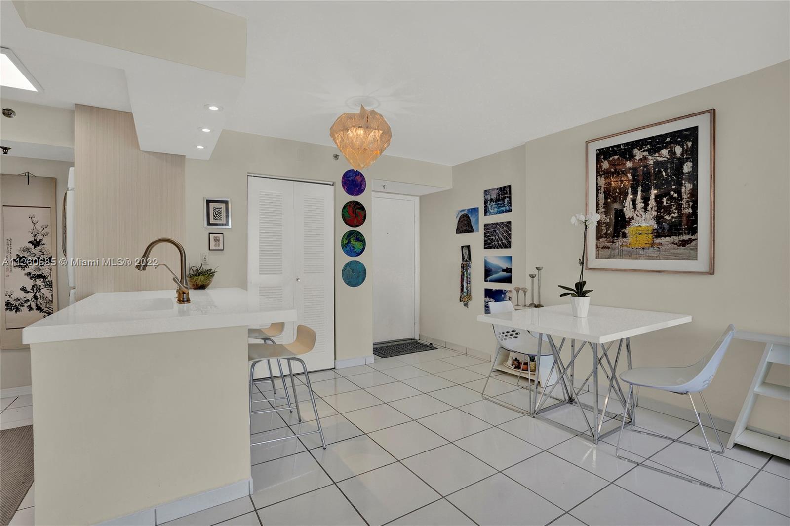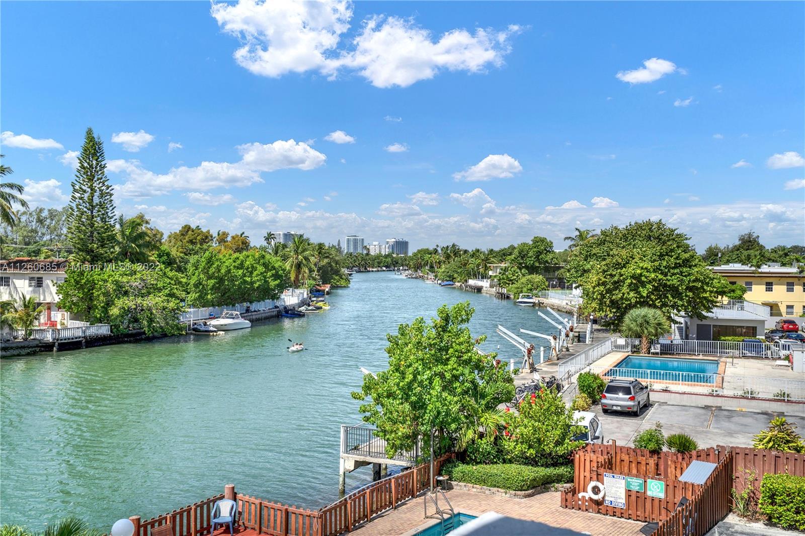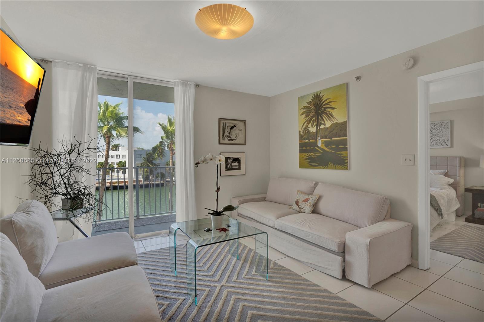 Spacious Unit in Normandy Isle within walking distance to the neighborhood's park, golf course, and the beach. This 1 bedroom, 1 bathroom condominium has an amazing water view from the balcony, lots of natural light, closet space and renovated kitchen and bathroom in 2018. It has tile floors throughout, and Corian countertop in the kitchen. The Boutique Building has a secured garage, an elevator, a pool with deck, and BBQ area. The Low Homeowner's Association Fee includes water, insurance, and maintenance of all common areas. The unit is being offered "as is".