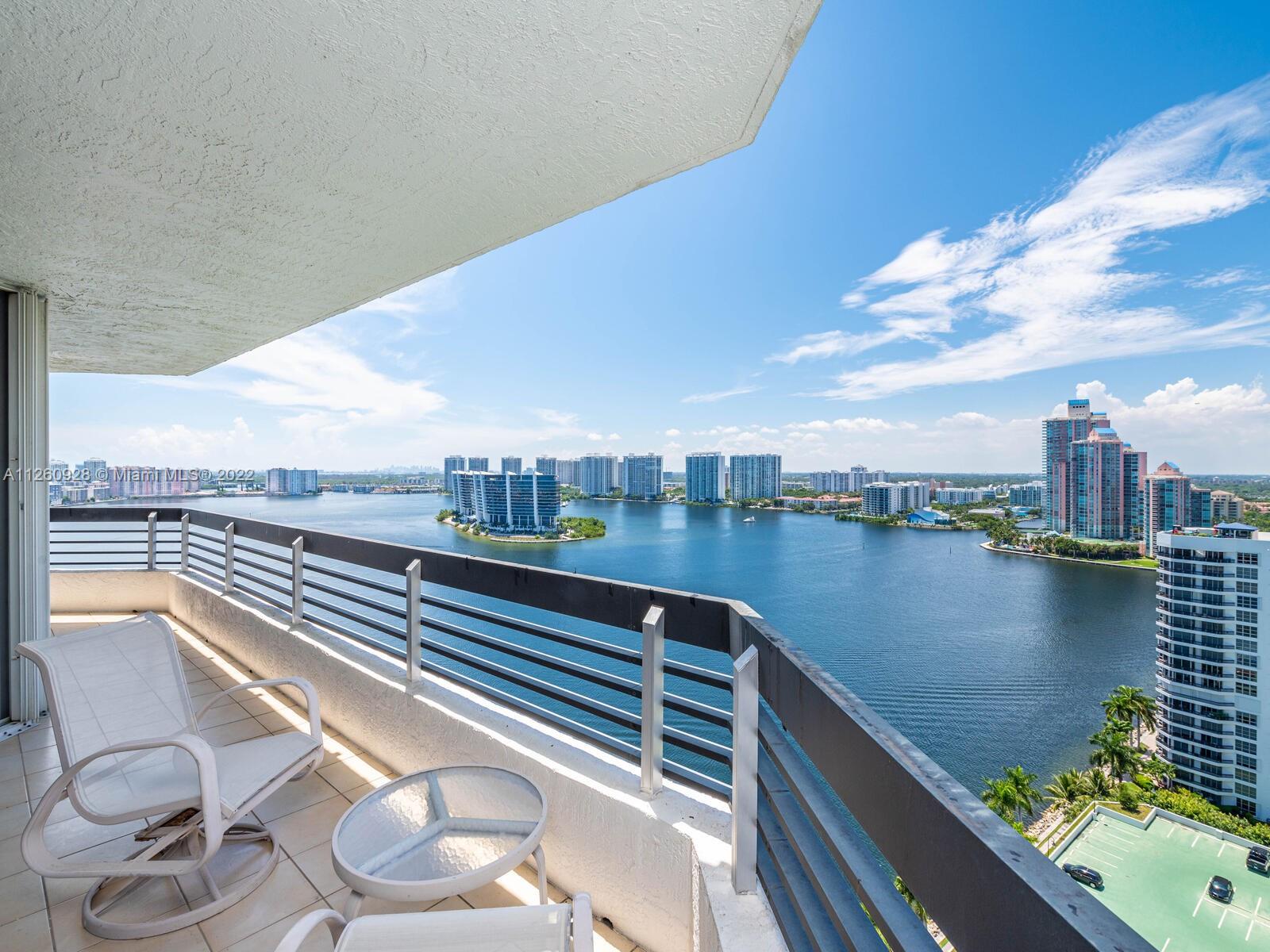 Mystic Pointe’s premier Tower 200. 25th floor corner unit with breathtaking ocean and bay views. Spacious 3 bedroom, 3 full bathroom apartment with wraparound balcony.. . Split floor plan with a large living room and a separate dining and kitchen area. The apartment comes with 1 covered parking space (additional spaces available from HOA with a very low monthly payment). Mystic Pointe is a private and secure gated community, and the building features a full-time concierge, an outdoor pool/hot tub, a fitness center, and much more!