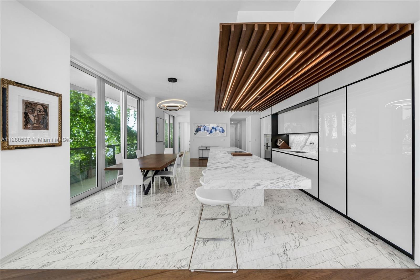 Spacious corner, 3-bedroom, 3.5 bathroom with wraparound terrace featuring views of Biscayne Bay and the Atlantic Ocean. Calacatta kitchens with dramatic sculptural marble island. Bathrooms with richly veined, stone countertops, marquetry flooring and tiled walls. Other notable features include custom cabinetry & built-in features, designer fixtures, teak flooring throughout & private elevator. Monad Terrace is 59 individually designed waterfront residences around a glittering lagoon, designed by Pritzker Winner, Jean Nouvel providing brilliant light, climbing gardens, unique sawtooth honeycomb facades & stunning sunset views.
