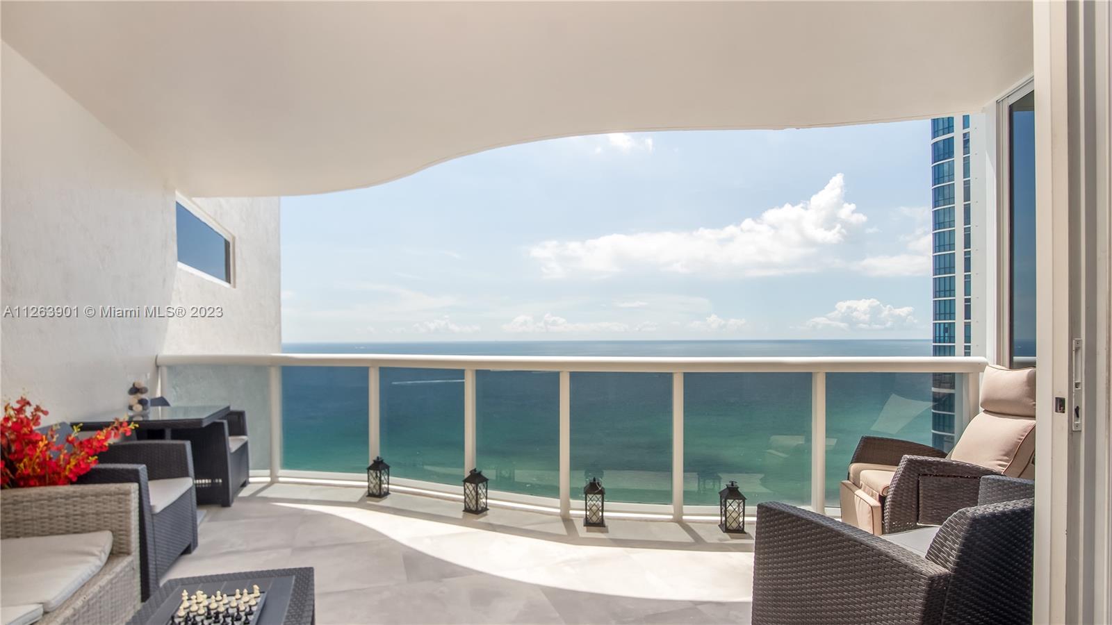 Private Beach front! The Pinnacle of Oceanfront Living. Unit 2102 Comes Inclusive of All Furniture & Décor. Enjoy Spectacular Vistas from this 21st Flr Flow-Thru! Front & Rear Terraces (Oceanfront & Intracoastal). 2 Terraces w/ 4 Exits. Huge Granite Gourmet Eat-in Kitchen. Split Private Ensuite Bedrooms. Walk-in Closet. Marble Floors. In-unit Laundry. An Extraordinary Lifestyle awaits you w/ 5-Star Amenities, including World-Class Beach Club, Towel & Umbrella Service. Resort-Style Pool Deck. 24/7 Concierge. On-Site Management. Tennis. Fitness center w/Saunas, Steam Rooms & Treatment room. Yoga studio. Billiards. Theater. Social Room. Library. Children's room. Mezzanine Level Resident Lounge w/Complimentary Coffee. Valet. Low Maintenance $1,270.73/mo (paid Qrtly). Welcome Home to Paradise!
