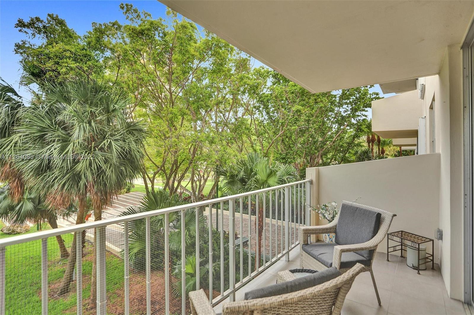 Immaculate maintained residence on second floor at the Jockey Club II. This over 1350 SF split floor-plan offers 2 main suites each with its own bathroom. The residence overlooks serene parklike views. Abundant closet space everywhere. Kitchen opens to the dining room bringing tons of light and space. This residence is move-in ready and comes with one covered parking space with plenty of parking for extra cars.