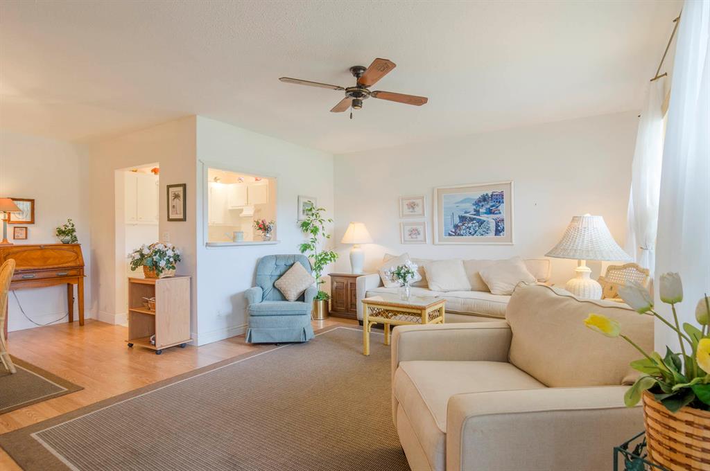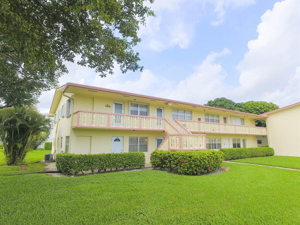 This 1BR/1.5BA condo has everything you need conveniently located on the first level. The home features laminate flooring throughout with an open living & dining room that flows into the kitchen via a window pass through. The master bedroom has a private enclosed patio, double walk-in closets, and a dressing area. Master bath has a stand-up shower with grab bars, and a half bath for guests. The building allows one small pet! Century Village is an active 55+ gated community centrally located in West Palm Beach. Its many amenities include a 92,000 sqft clubhouse, 12 swimming pools including a resistance pool, indoor pool, and heated pool, a 1,200-seat theater, numerous social, fitness, and creative activities and clubs plus bus transportation and more!