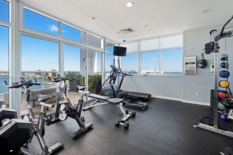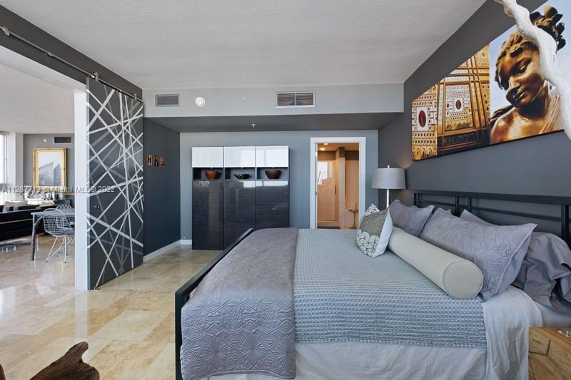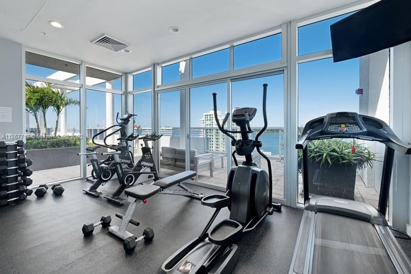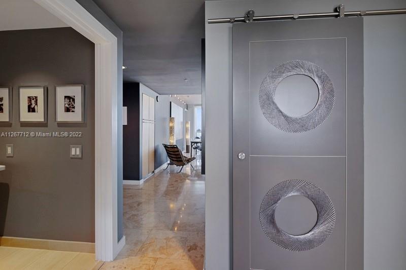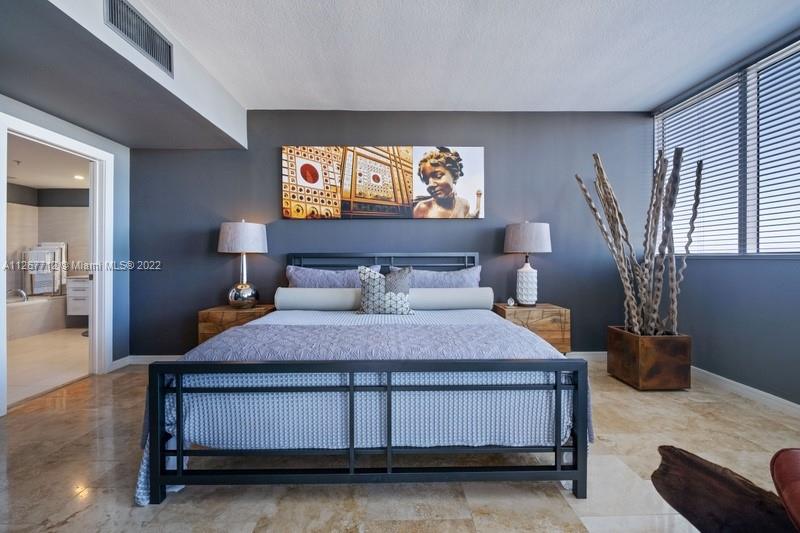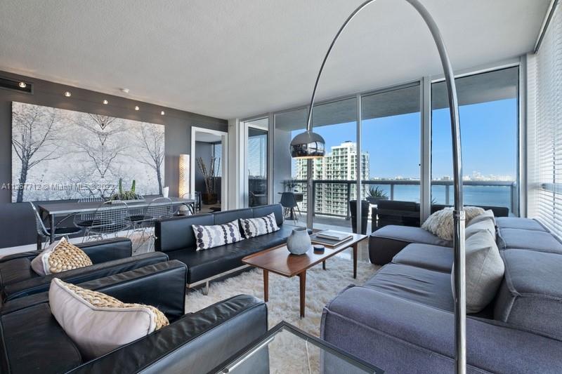 Here's your chance to own a pristine, architect-designed condo in the heart of North Bay Village, Miami's hidden waterfront secret. This 3 bedroom, 2 and a half bathroom flow-through lower penthouse offers expansive water views from every room and has been meticulously outfitted and detailed for the most discerning eyes. Enjoy sunrises and sunset from this furniture optional property which you will be proud to call home. This full corner unit comes with 2 assigned garage parking spaces. Blue Bay Tower is a boutique condo with only three units per floor, and offers rooftop amenities including pool, gym, bbq area, sauna, and community room. Furniture and Art Package available for sale.