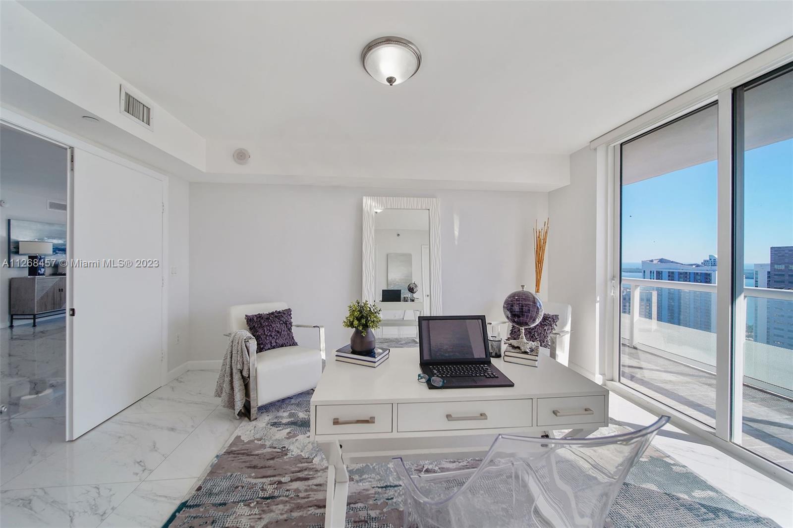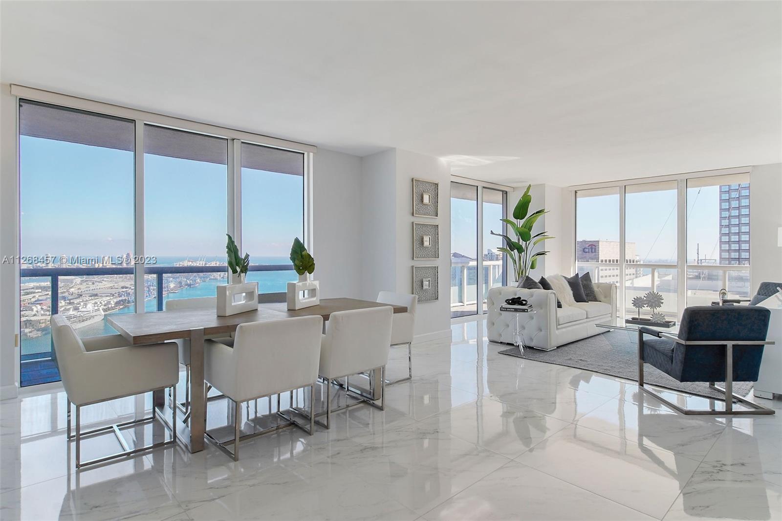 Enjoy spectacular views of Biscayne Bay, Port of Miami, and Miami Beach from this 3 bed/2 bath corner residence located in the heart of Miami. This Southeast corner unit features an open kitchen/living room layout, porcelain floors throughout, ample closet space, washer and dryer, tiled balcony and views from each room. 50 Biscayne is a full amenity building with an Olympic-size heated pool, state of the art spa, private fitness center, tennis, security valet parking and concierge service. Enjoy living across bay front park with the convenience of being minutes away from Miami’s top museums, restaurants, nightlife, financial district, best hospitals, public transit hubs and main highways.