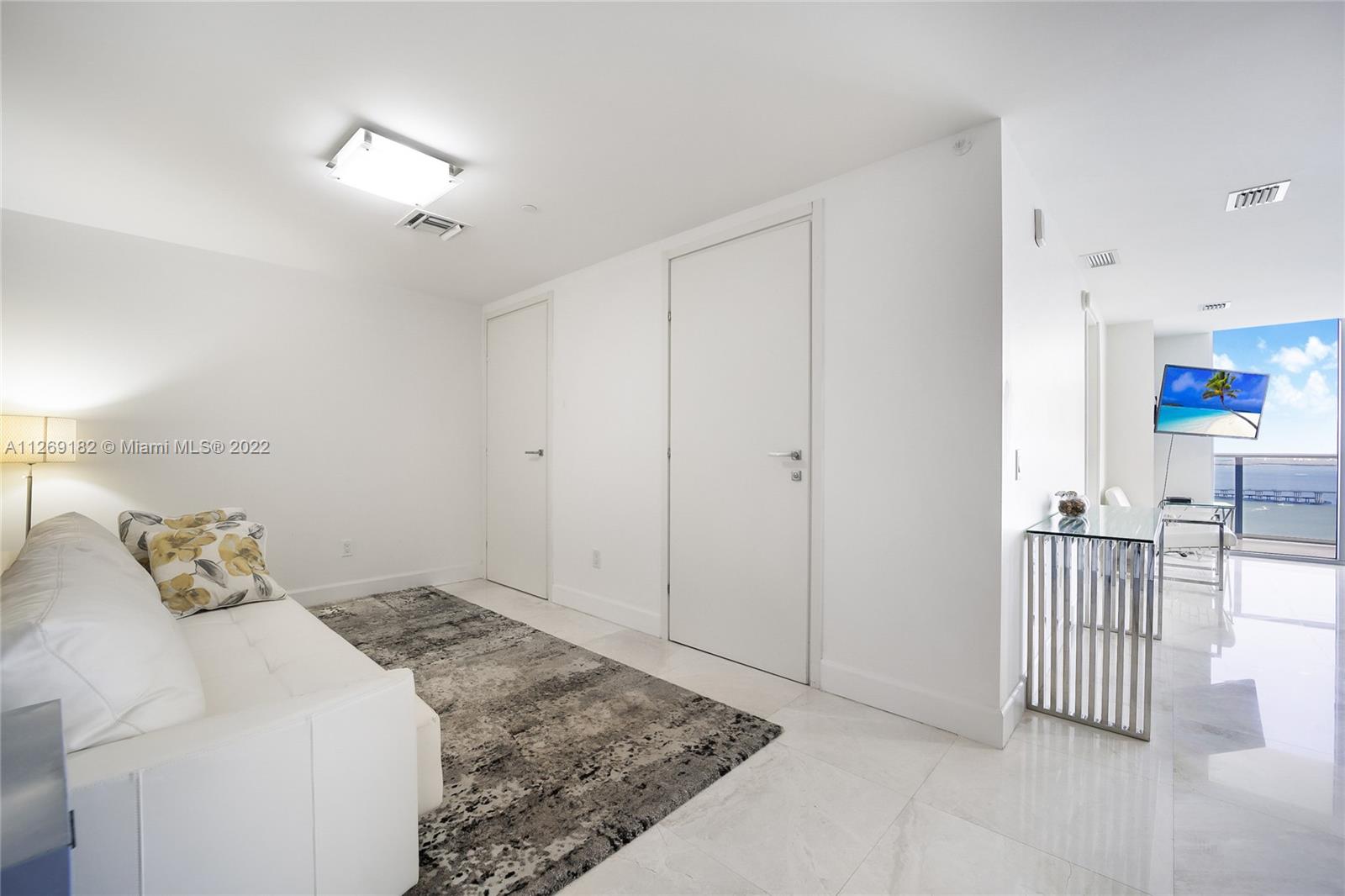 DIRECT BAY VIEW from both bedrooms and living room!!! Spectacular & Furnished 2 bed-2bath +DEN (additional room w sofa bed, closet and access to second bath) in desirable Brickell House in Brickell. Luxurious marble floors throughout! Ample layout interior features this 2 Beds + Den/2 Baths residence with amazing views overlooking the Biscayne Bay, Key Biscayne and the Atlantic Ocean. Marble flooring throughout the residence, state of the art appliances, Quartz countertops and roller shades-blackouts in bedrooms. 24Hr concierge, 24-hr guest valet, resort style mezzanine w/ pool, family areas, steam room & expansive 46th floor sky deck w/ pool, fully equipped fitness center. Showings from Monday to Friday w/ 24 hs notice.