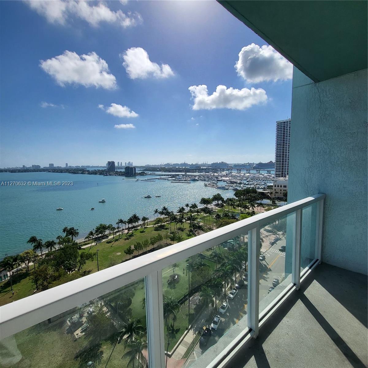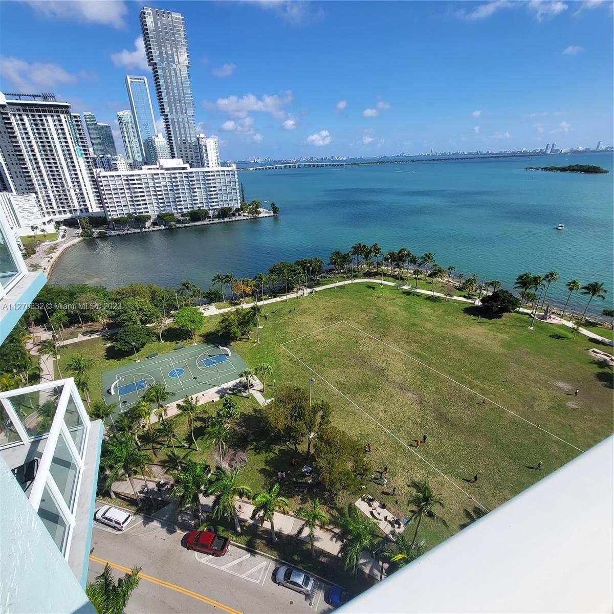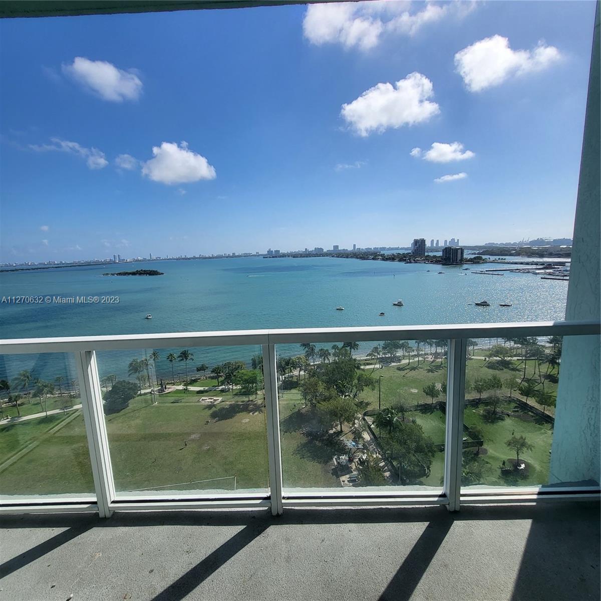 large unit featuring 2 bedrooms and 2.5 baths facing direct bay view and park. Grey tile floors, stainless steel appliances, two balconies. Building offers great amenities, suck as 2 pools, party room, well equipped exercise and yoga/stretching room and garage parking. Right in from of the park , walking distance to restaurants and supermarkets, very conveniente to access Venetian Cswy and I-95.