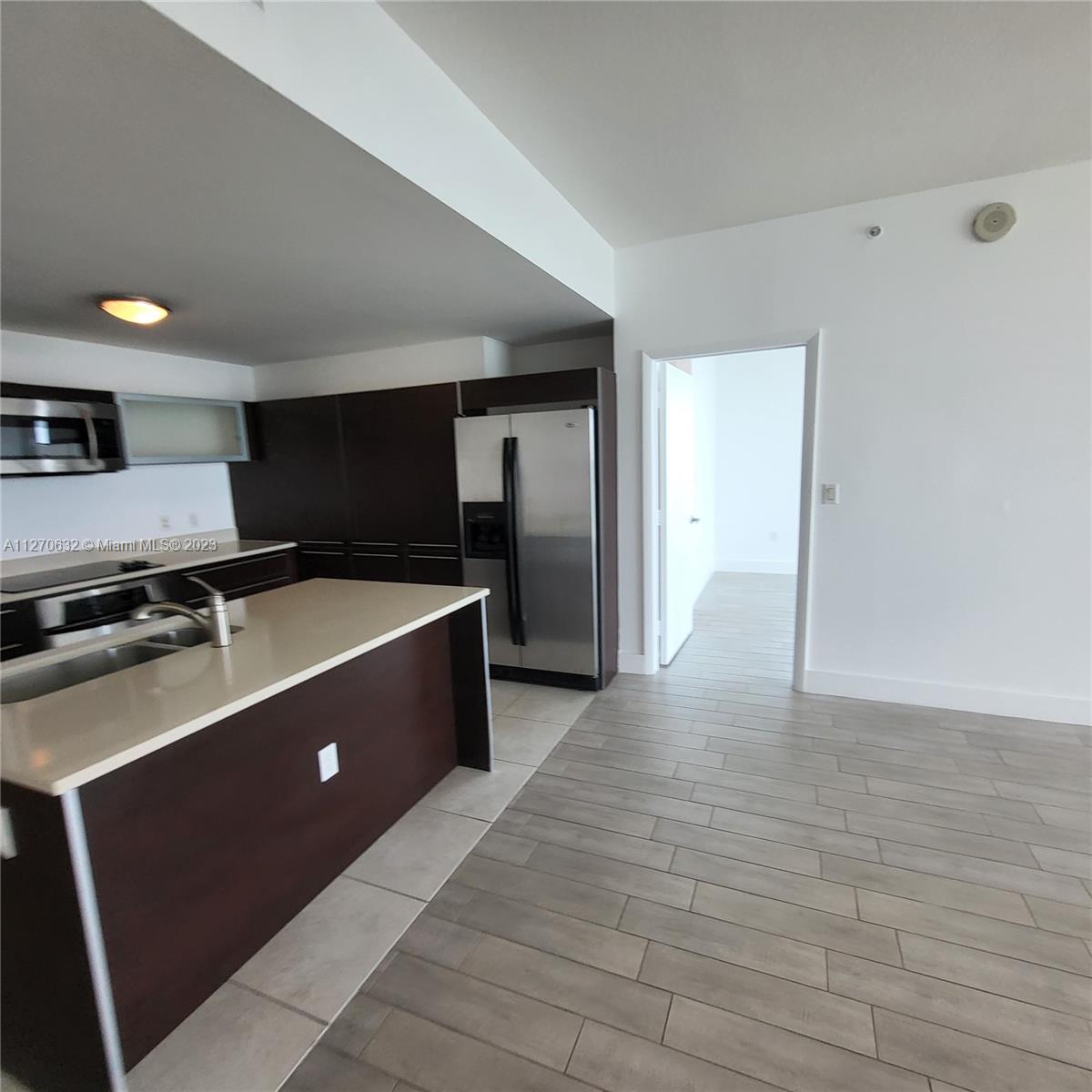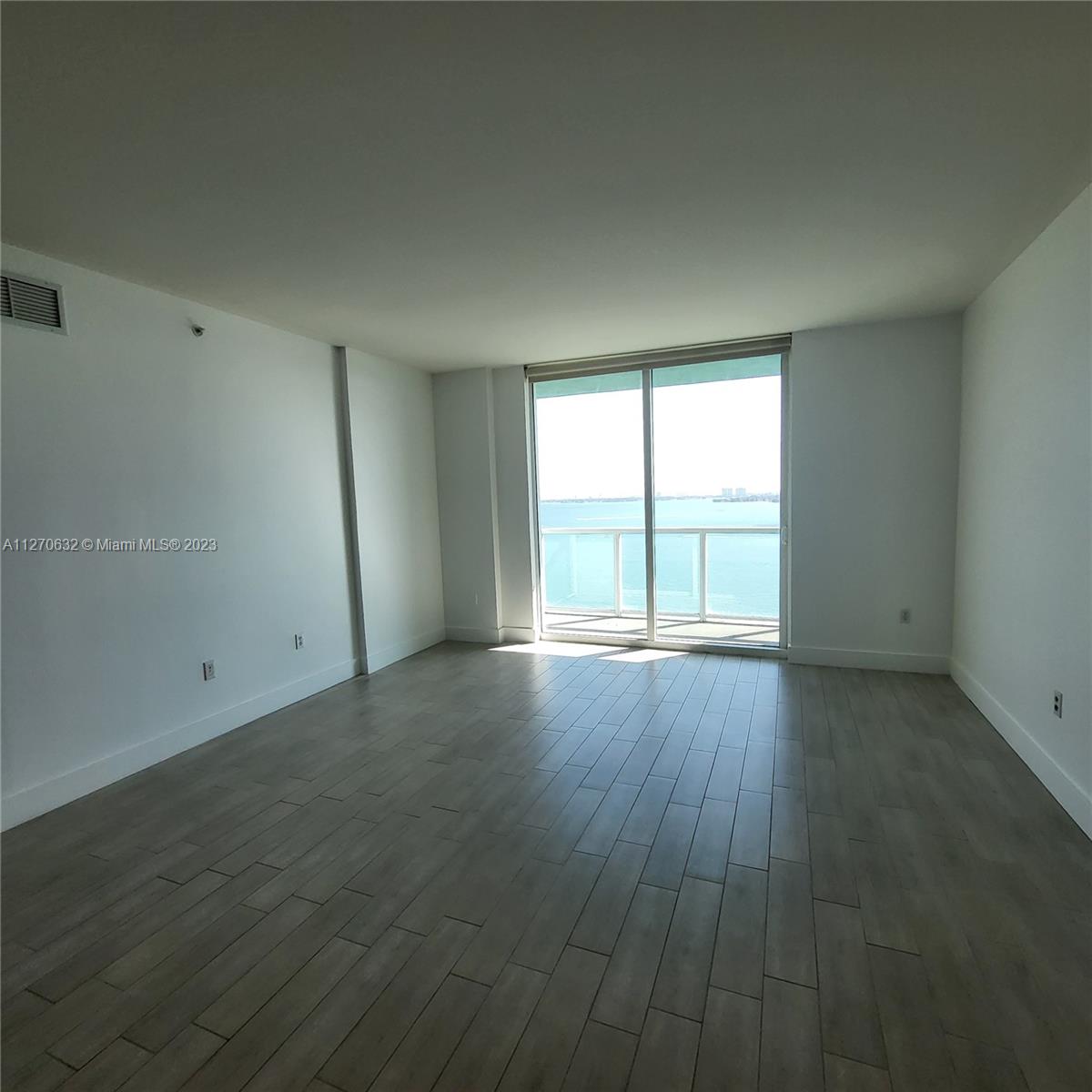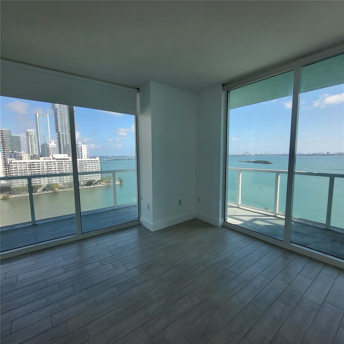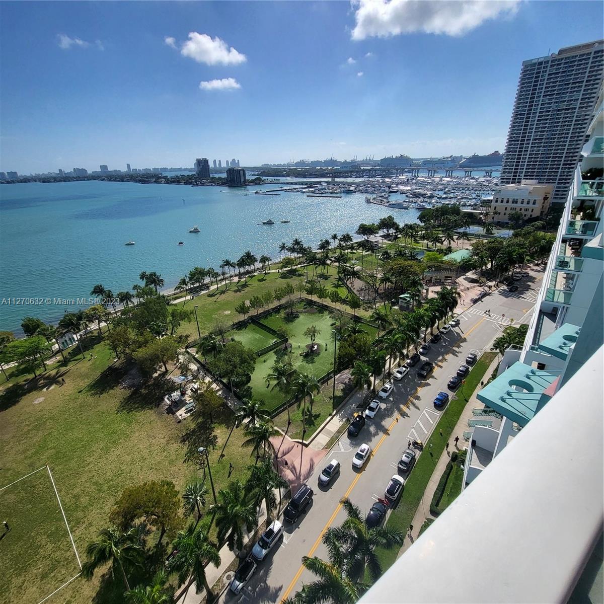 large unit featuring 2 bedrooms and 2.5 baths facing direct bay view and park. Grey tile floors, stainless steel appliances, two balconies. Building offers great amenities, suck as 2 pools, party room, well equipped exercise and yoga/stretching room and garage parking. Right in from of the park , walking distance to restaurants and supermarkets, very conveniente to access Venetian Cswy and I-95.