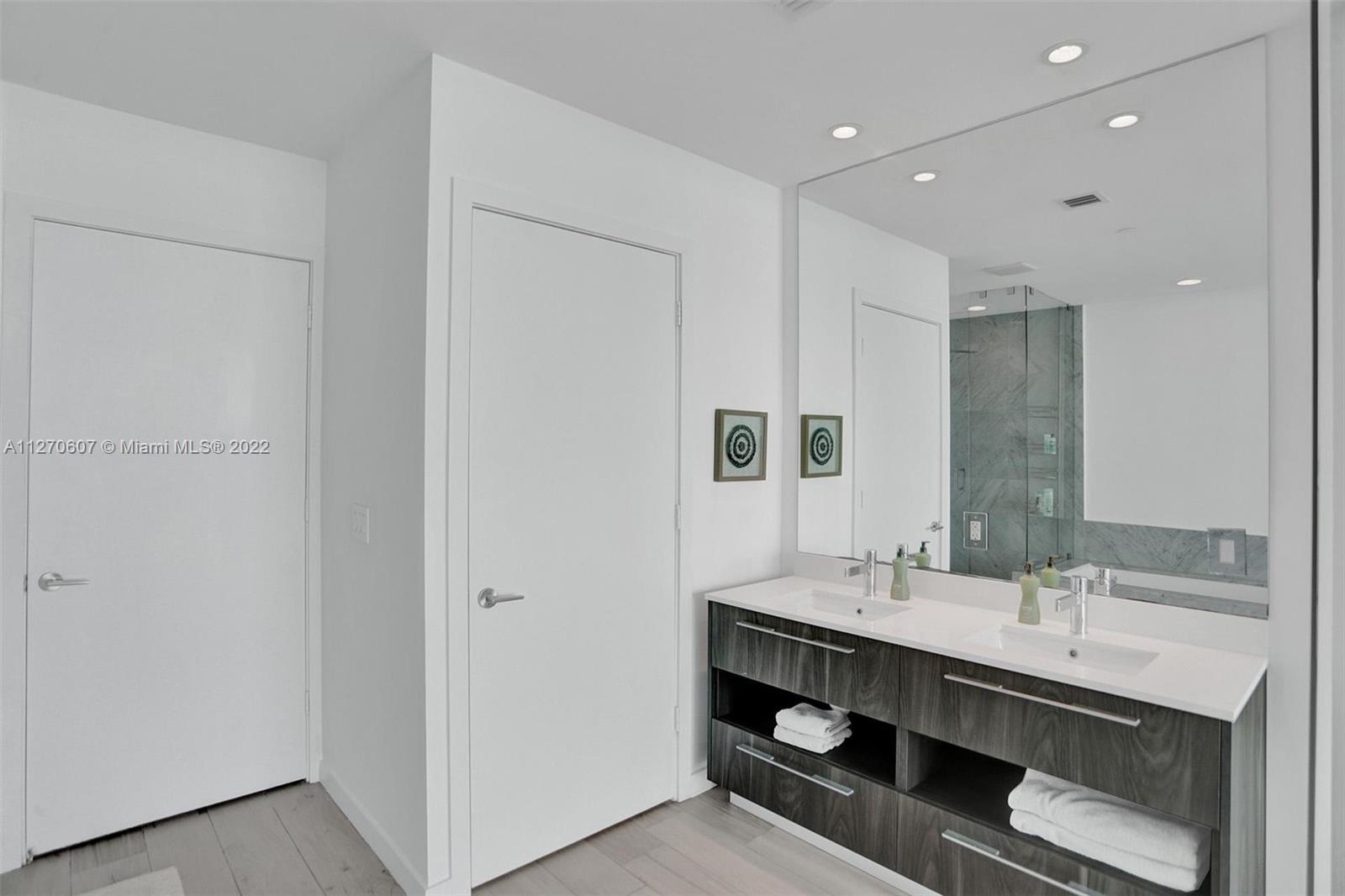 Enjoy breathtaking views from the 46th floor at Gran Paraiso Condo in Edgewater Miami. This spacious condo boasts three full bathrooms, private elevator entry, high impact glass doors, 10' ceilings, porcelain flooring and has the larger, 10' deep balcony that forms part of the facade "bubble". High-end finishes include ItalKraft cabinetry, Sub-Zero + Wolf appliances, top of the line bathroom fixtures and motorized shades in master. Unmatched amenities include a 100' wide resort style pool, tennis courts, bowling alley, fitness center, spa and movie theater just to name a few! Also enjoy the BeachClub & award winning restaurant at Amara by acclaimed chef Michael Schwartz. Located in Edgewater & close to Midtown, the Design District, downtown Miami and M. Beach. (agents see Broker remarks)
