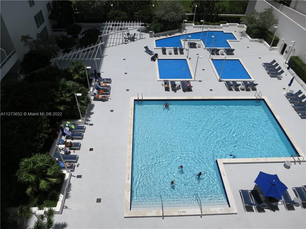 1BR with sunset views over pool deck, facing west. Laminate wood floors.