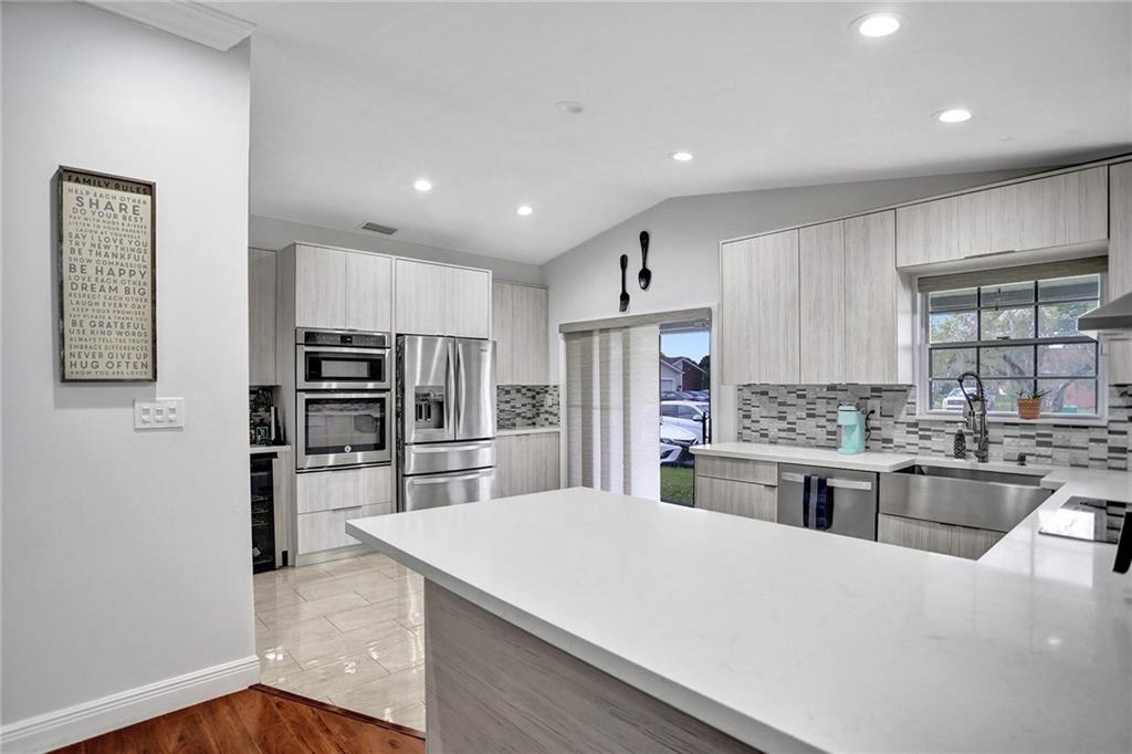 MAGAZINE BEAUTIFUL! ALL YOUR DREAMS WITHIN YOUR MEANS! BRAND NEW ROOF BEING INSTALLED AT THIS TIME! This home as a million dollar look at a reasonable price! Enter the great room with vaulted ceilings and experience the WOW factor! Beautiful laminate flooring, lots of windows overlooking the patio. The kitchen is a masterpiece by any standard! Amazing 42" cabinets, lots of designor counter top and backsplash. Upgraded stainless steel appliances. Washer and dryer have a convenient nook here! Split bedroom plan, remodeled bathrooms, today's soft colors. Master bedroom has walk in closet, spacious bathroom with matching cabinets with the kitchen. Just bring your furnishings! Screened patio is large and perfect for table and play area. Low HOA fees. Garage plus two spaces. HURRY!
