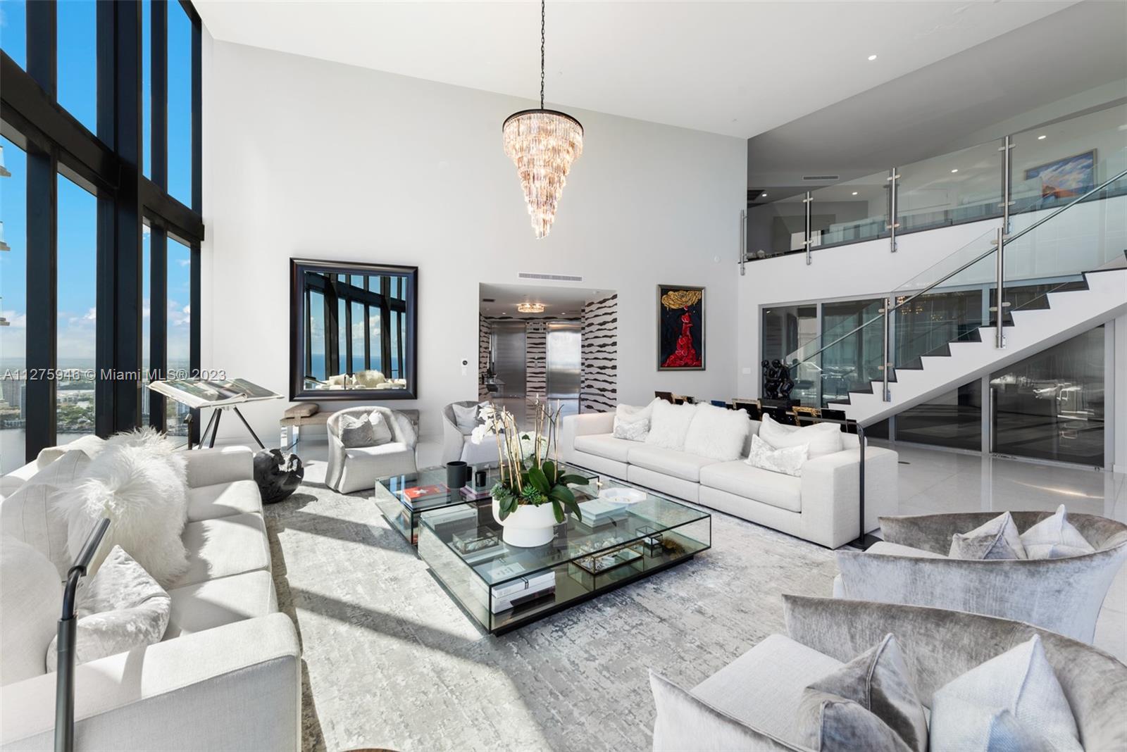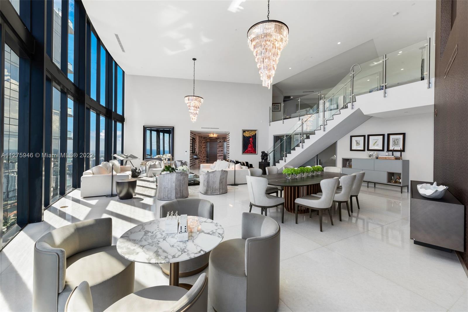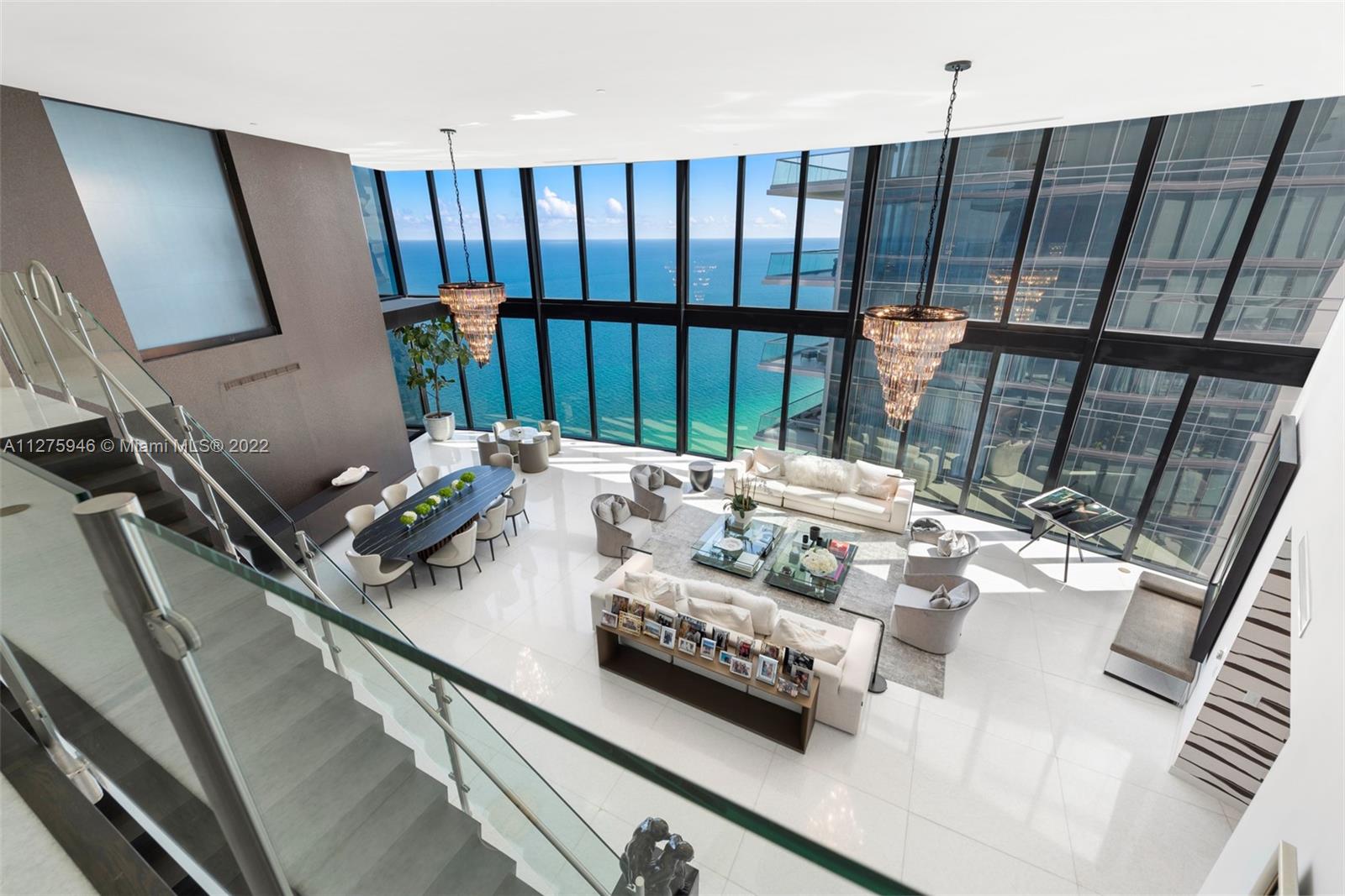 This is the last lower PH, a true high-end oceanfront residence, ( Double level floor plan with 22 foot windows in the living room ) 48x48 Italian marble floors flow throughout, two spectaculars master suites,2 impresive terraces equipped with a ultra modern pool, summer kitchen, lounging area as well a enclose terrace for a beautiful breakfast or a romantic dinner. One of the few units with 4 car garage and a private elevator inside the unit, private beach club for residents only, beautiful sunset pool, building amenities: Movie theater, private restaurant, state of the art gym, VRX motion Z-55 racing simulator.