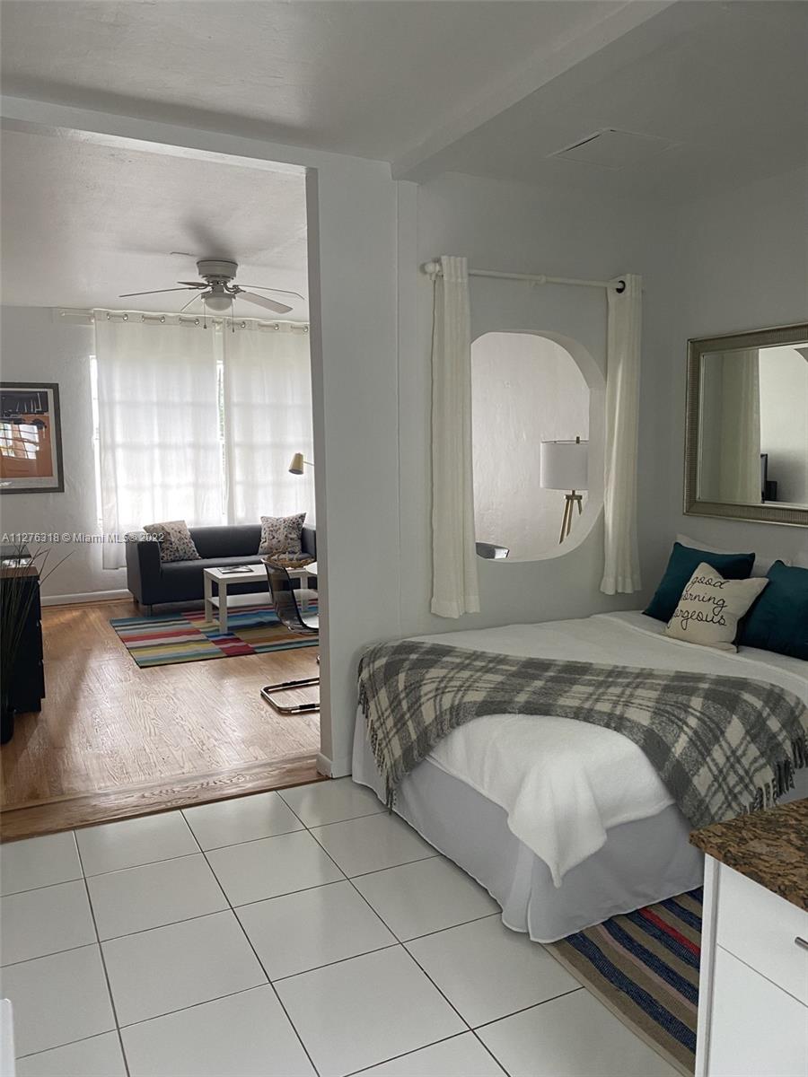Furnished and fully equipped studio. Beautiful, spacious and bright, 2nd floor apt in a well maintained Art Deco building, building just passed the 10yr recertification. Located one block from Flamingo Park and a few blocks from the ocean. Recently updated with new fridge, new range, new a/c, new furniture, remodeled bathroom, restored wood floors and freshly painted. two large closets, washer/dryer inside the unit. Maintenance includes reserves and rentals are allowed twice a year, pets allowed.