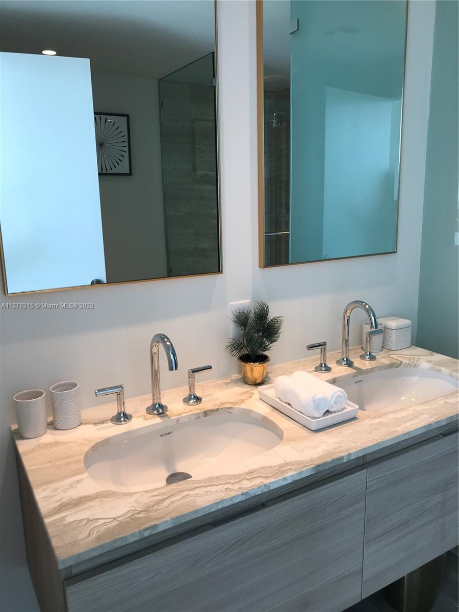Amazing corner unit with spectacular panoramic views of Biscayne Bay and breathtaking views of the Miami Skyline WITH beautiful sunsets. 1 Bedroom + Den easily convertible into a second bedroom with, unit comes with 2 full bathrooms. Top of the line appliances and floor to ceiling windows. Private elevator and separate foyer entrance. Modern porcellan floors, closet cabinets and window treatments. Luxurious condominium with high end amenities and Miami’s first manmade beach club on the waters of Biscayne Bay with private sand beach. Biscayne Beach is in the growing Edgewater area, near to the popular Design District, Wynwood Arts District, Midtown and Downtown Miami neighborhoods.