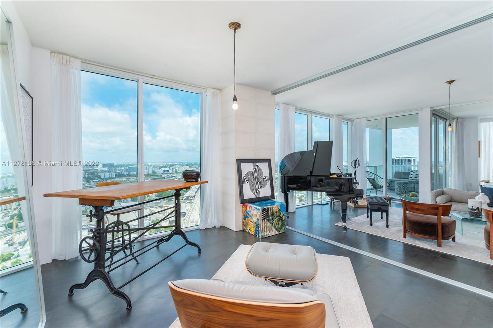 Stunning high-floor residence at Ten Museum Park has been completely renovated with modern high-end design and finishes. From the kitchen, bathrooms, and flooring, to the smallest touches, every detail has been thoughtfully executed. This is a one-of-a-kind property with large balcony featuring spectacular west views. Ten Museum Park is a full-service building with valet parking, fully staffed front desk, secure elevators and abundant amenities: gym, spa, sky terrace pools, and access to Bentley Beach Club in Miami Beach. Well managed, pet friendly, and rentals allowed. Minutes to Brickell, Wynwood, Miami Beach and MIA.