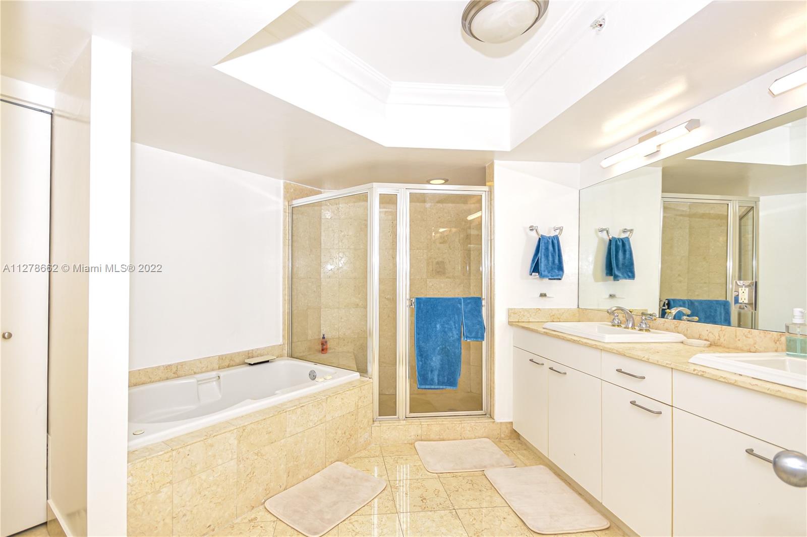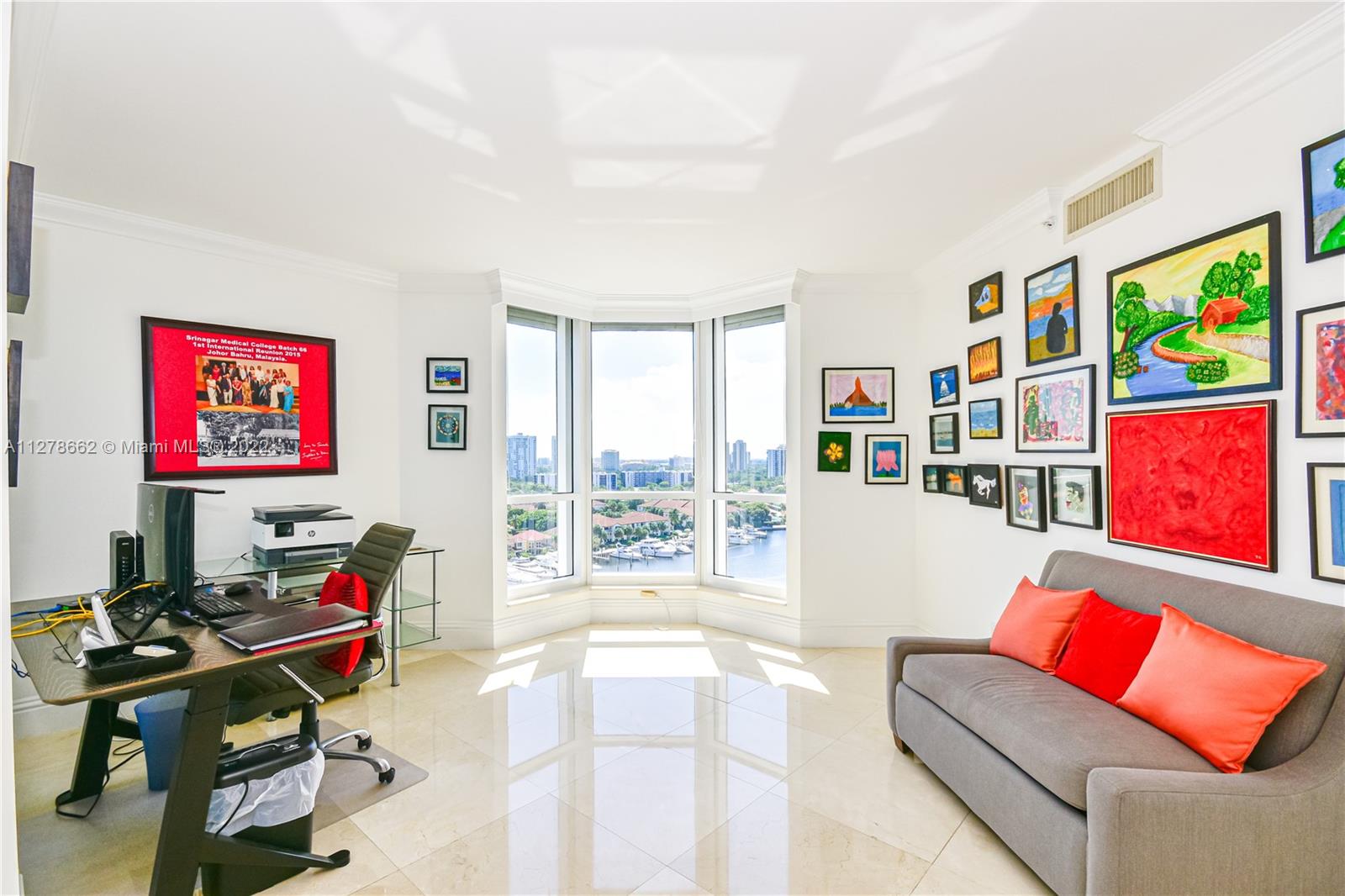 Beautiful 3/2 condo at the South Tower at The Point in Aventura w/water and city views. 1,865 sq ft split floor plan, marble and wood floors. Master w/en-suite bathroom, double sinks, jacuzzi tub, glass shower, Walk-in closet. Guest bedroom has private balcony, walk-in closet. 3rd bedroom is open but can be enclosed easily. Full size wash/dryer in unit. Accordion shutters. 2 covered parking spaces, air conditioned storage unit, AC and water heater new from 2019. Resort style amenities: 3 pools (1 w/salt water) , BBQ area, 4 tennis courts, 25,000 sq ft spa and fitness center, steam room, massage room, barber, beauty salon, kid’s playground, library, on site cafe, 24 hr valet, concierge and security. HOA includes Cable TV, Wifi, Building insurance and Water. No rent 1st yr ownership.