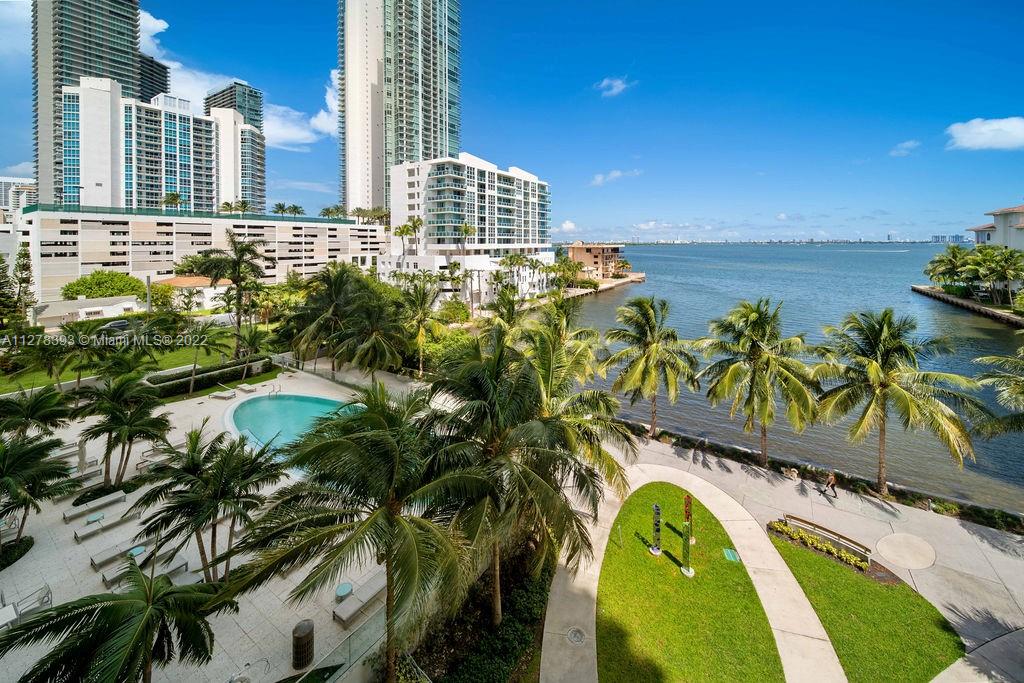 Spectacular direct bay views from this 2 bedroom, 2 bath condo. Unit has customized pieces, italian porcelanato and UPGRADED KITCHEN. This condo provides a private elevator and foyer, and 2 PARKING SPACES in the attached garage. State of the art building amenities include a gym, sauna, pool, tennis court, theater room, sky lounge, valet parking, and a club room. The building is conveniently located in the quiet area of Edgewater and close to the Design District, Midtown, Wynwood, and Downtown.