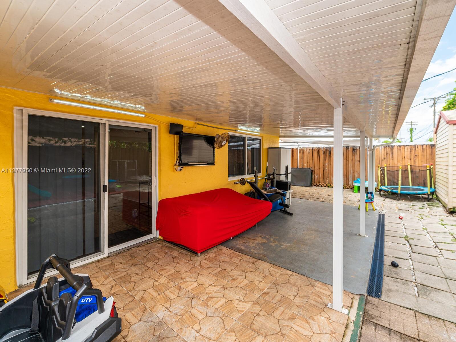 Gorgeous Villa completely remodeled. All tiled in living areas and bedrooms. The Kitchen has beautiful wood cabinets and granite countertops and a brand new top-of-the-line Samsung touchscreen refrigerator and newer appliances as well. New Hi-Hats in Kitchen and Living Room. Master Bedroom has a large walk-in closet and a spacious Master Bathroom with a large walk-in shower and beautiful new tile. A/C 2015. Hurricane Impact Windows and doors. Roof 2015. Fully fenced Backyard with nice pavers and a brand new Deck and artificial grass. Shed included. Two Canopy Carports. NO HOA. Great investment for AIRBNB. Ready to move in!
