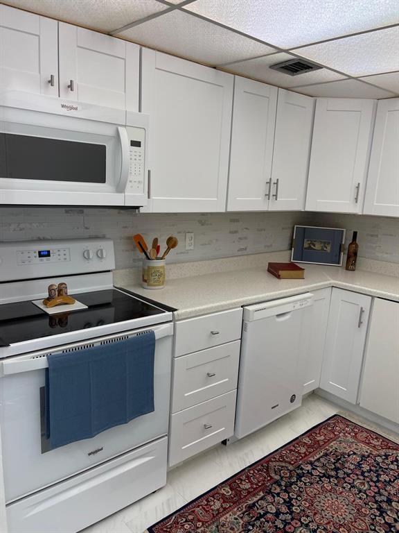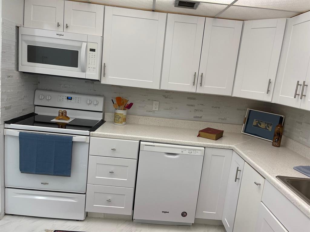 VERY ATTRACTIVE 2/2 CONDO IN ''BREAKWATERS OF THE PALM BEACHES'', GATED, WELL MAINTAINED, NUMEROUS AMENITIES. FEATURES INCLUDE: BOTH BATHROOMS, THERMOSTAT, DINING CLOSET DOOR, & LIGHT FIXTURES ALL IN 2022. KITCHEN WITH APPLIANCES AND FLOOR IN 2021. THERE ARE 3 TWO BEDROOM MODELS, THIS IS THE LARGEST OF THE 3, 1133' UA. YOU HAVE TILE, LAMINATE AND MARBLE FLOORING, GREAT LIGHTING, CROWN MOLDING, EXTRA CLOSETS, FRESH PAINT, SPACIOUS MASTER BEDROOM WITH WALK IN CLOSET, PLUS A PATIO!! TRULY A MUST SEE UNIT!! HOA INCLUDES BASIC CABLE, WATER, SEWER, & TRASH. ''CAN LEASE AFTER 1 YEAR OF OWNERSHIP''. SOME FURNITURE MAY STAY! CAN WALK TO OUTLET MALL, SHOPS & RESTAURANTS OF ALL KINDS!! BEACHES, CITY PLACE, DOWNTOWN ACTIVITIES AND MORE