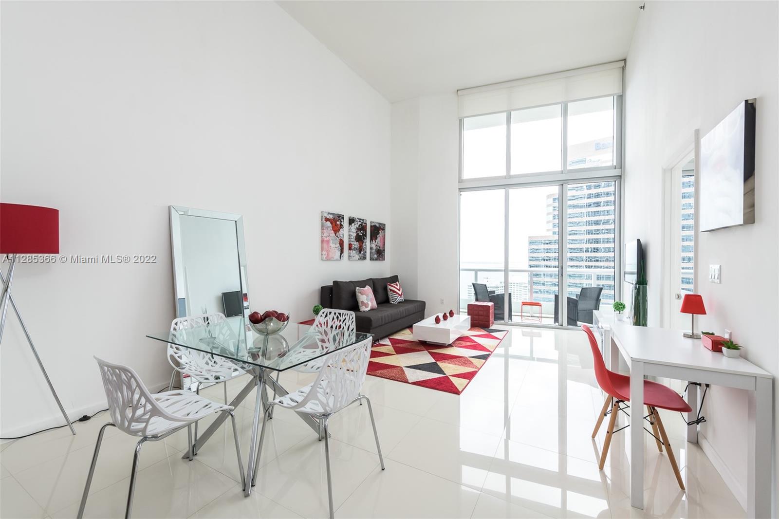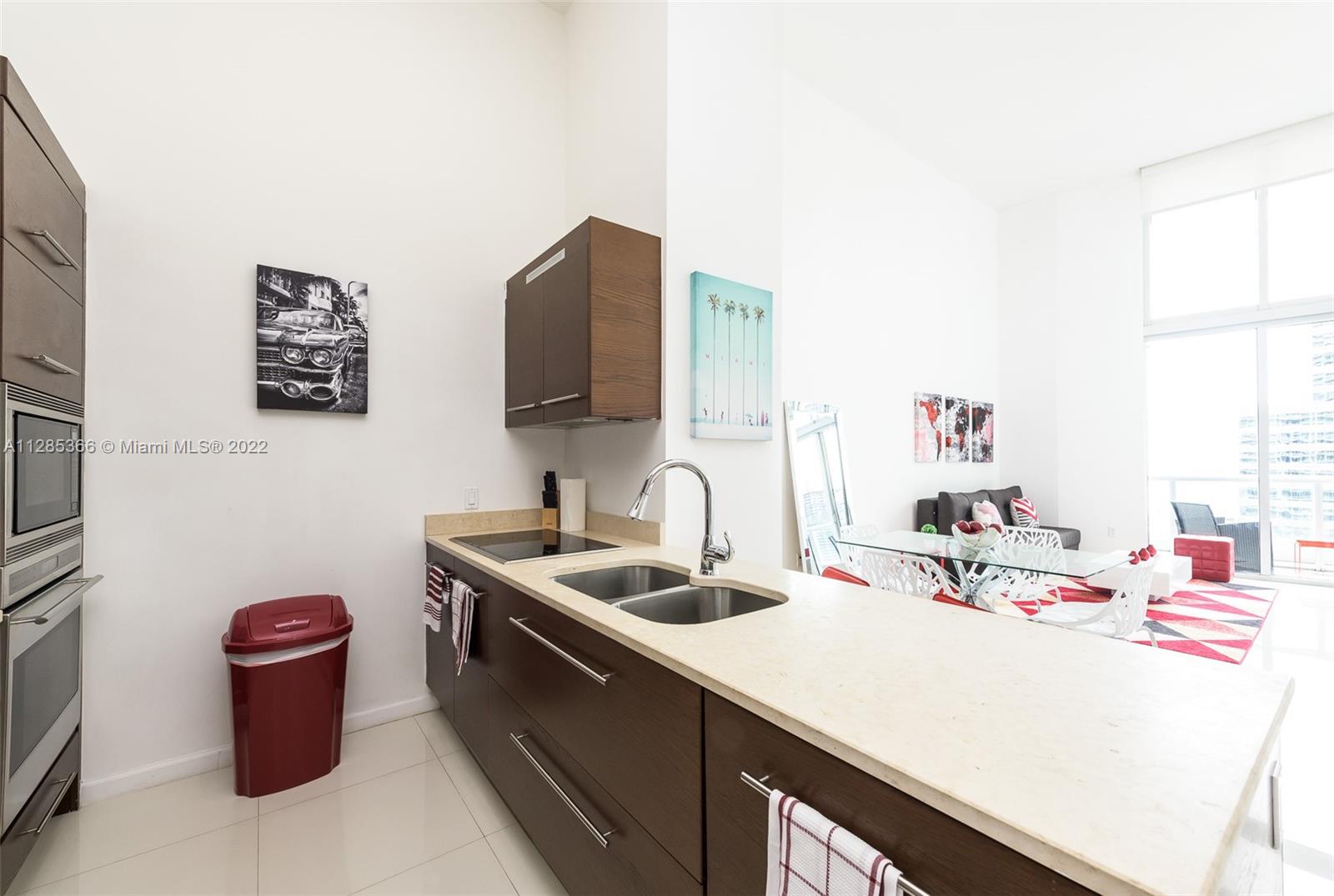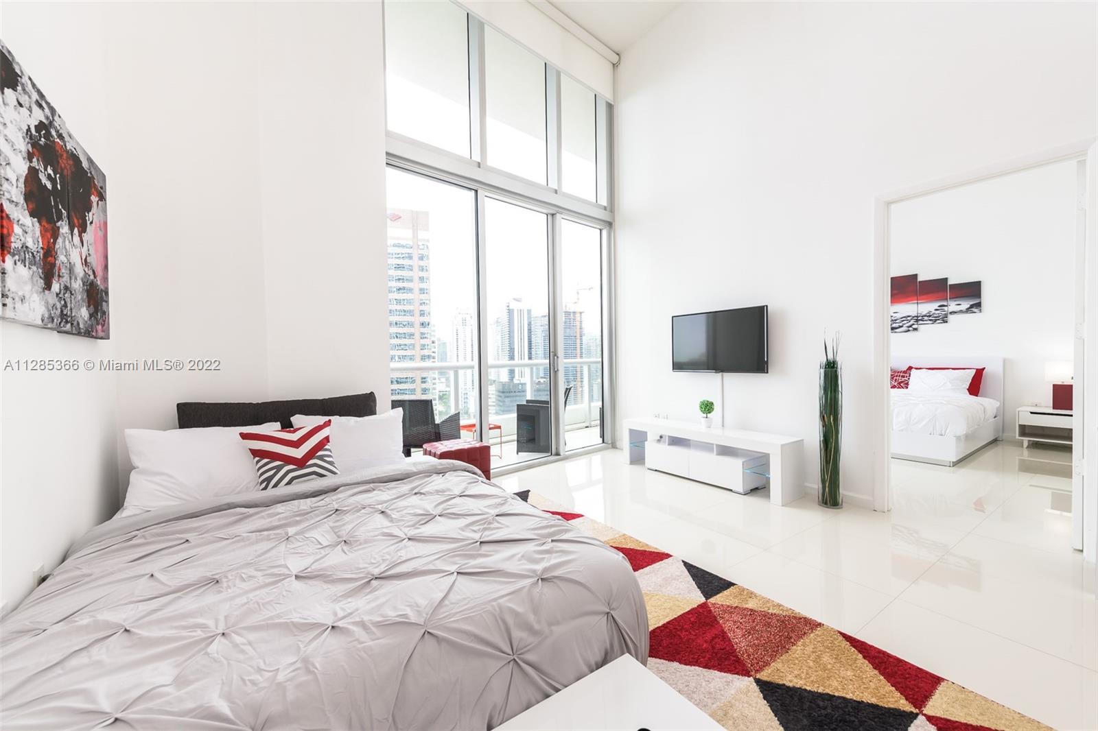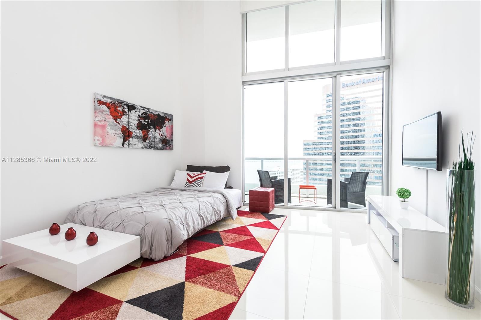 Rarely available high income producing property with over 90% occupancy. Unit can be rented daily or annually. This 1 bedroom + large Den offers 16 ft ceilings, floor to ceiling windows, 24 x 24 white porcelain floors, custom closets, top of the line paneled appliances (Sub-zero, Miele). Southern bay and city views throughout. Full amenities including 2 brand new infinity pools with full service, a restaurant, spa services, fully equipped gym, group classes including pilates. Sold fully furnished.
