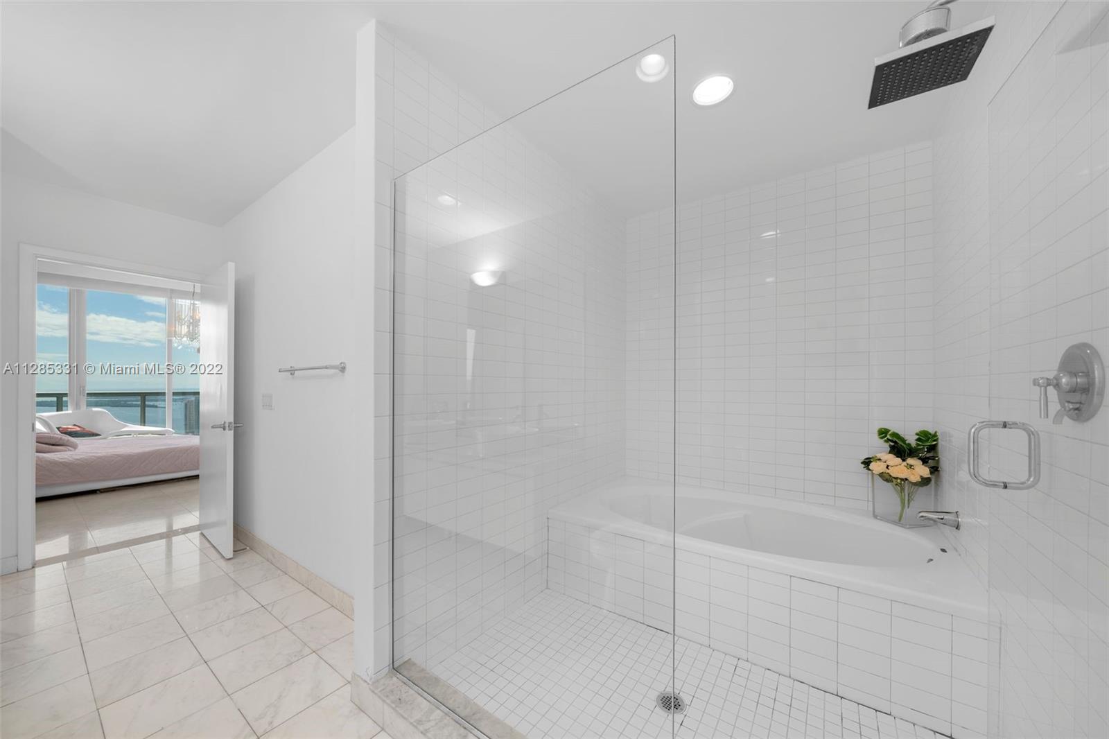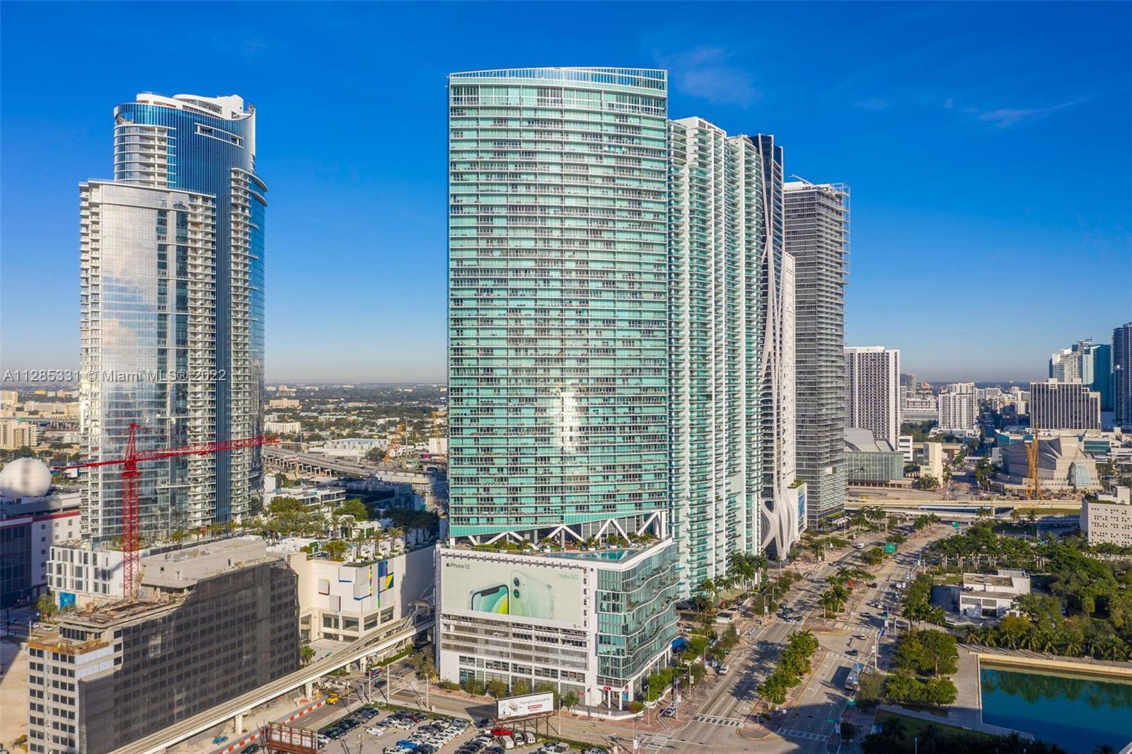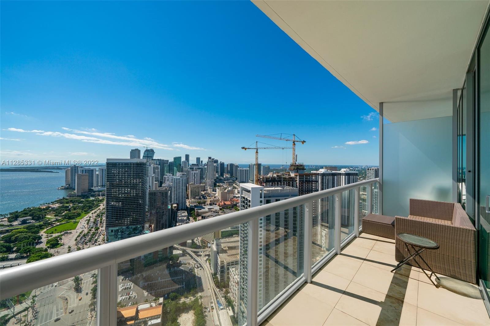 A magnificent, split 2-bedroom residence at MarinaBlue w/ 2.5 baths; marble flooring throughout; motorized shades; large, custom-built closets in both bedrooms; brand new air conditioning unit; stainless steel kitchen appliances; & 10-foot-high ceilings w/ floor-to-ceiling glass windows offering awe-inspiring, panoramic views of the Atlantic Ocean, Biscayne Bay, & Downtown Miami skyline from the 55th floor. Very unique floor plan; only 5 of its kind in the entire building. Both bedrooms have balcony access & direct water views. Includes 1 assigned parking space & 1 assigned storage cage. Building amenities include 2 swimming pools (sunrise & sunset), whirlpool hot tub, fitness center, business center w/ conference room, 24-hour valet parking, sand volleyball court, party room & BBQ grills.