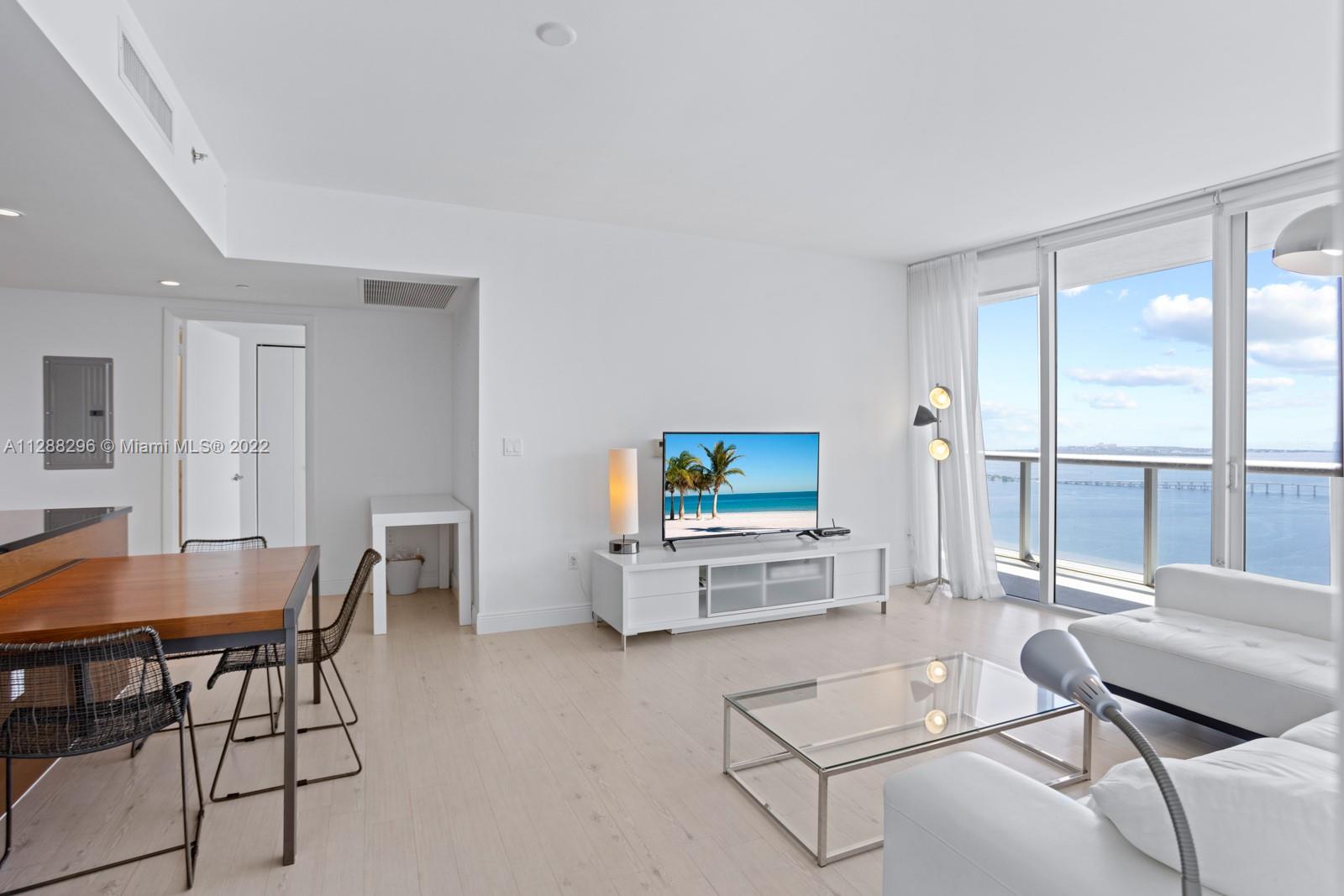 Gorgeous Water and City View a 2 bedrooms & 2 bathrooms corner unit. Amazing views from this 2 bed 2 bath corner unit. Floor to ceiling direct panoramic views of Biscayne Bay and Ocean. State of the art Italian kitchen cabinetry and counter-tops with Sub-Zero Refrigerator. Porcelain floor and 1st class finishes in the whole unit. Elite Spa and fitness center . Unique 300 FT long pool with infinity edge olympic sized pool, jacuzzi, super movie theatre, 4 on site restaurants, dog park and much more! Walking. This is tower II, so you can rent it for a minimum of 6 months!