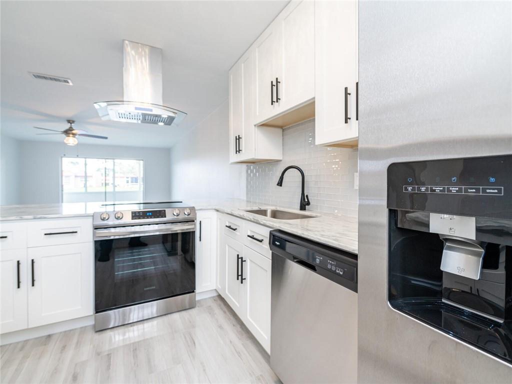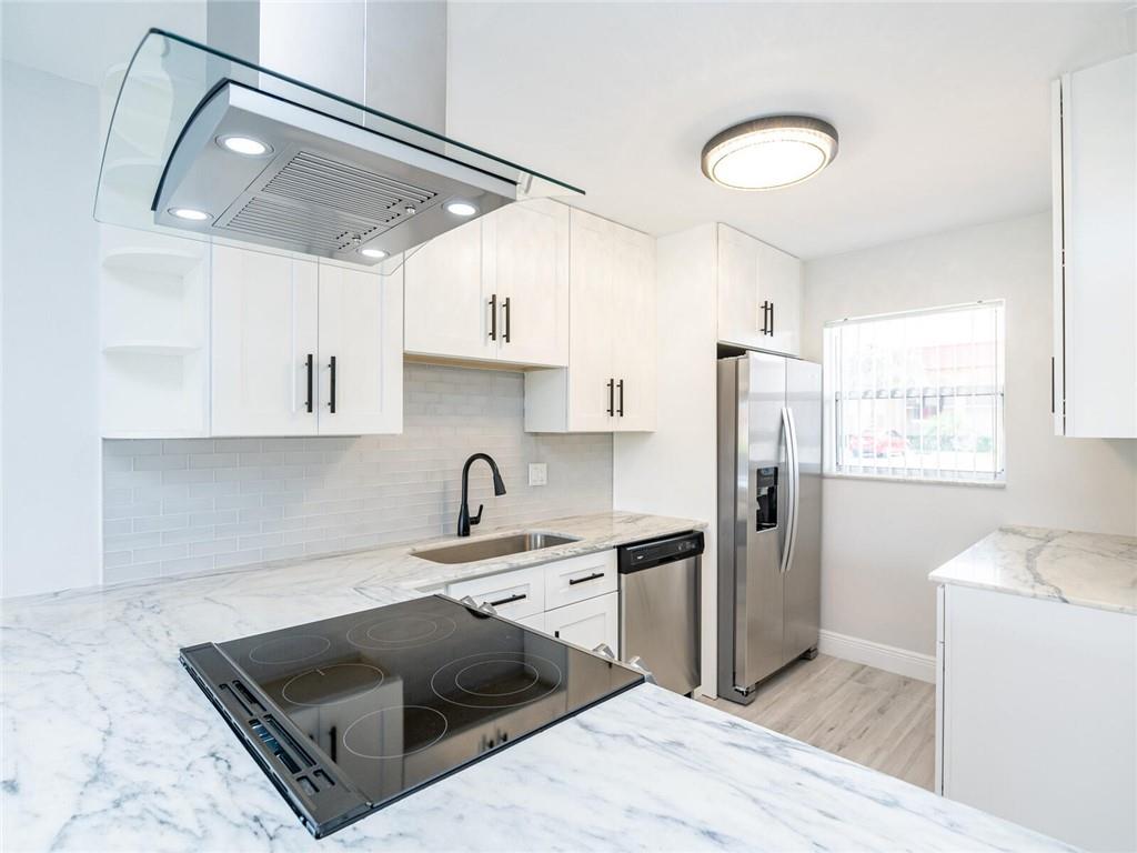 FULLY REMODELED VILLA. EVERYTHING IT'S BRAND NEW HERE. 2 bedrooms, 2 bathrooms villa with a beautiful lake view located in the highly desirable community of Golden Lakes Village . Open concept kitchen with white cabinets, stainless steal appliances, marble counter tops. Porcelain floor throughout the whole unit. Brand new A/C with 10 Years warranty, brand new washer and ventless drier, brand new windows. 24/7 guarded gate, courtesy bus 2 days a week. One occupant must be at least 55 years old. Large master bedroom with water views and walk in closet. Parking right in front of the unit. Dining and living room have water views and nice glass sunroom balcony!! Amenities include resort style pool, clubhouse, gym and outdoor recreation facilities. Close to highway, restaurants and shopping.