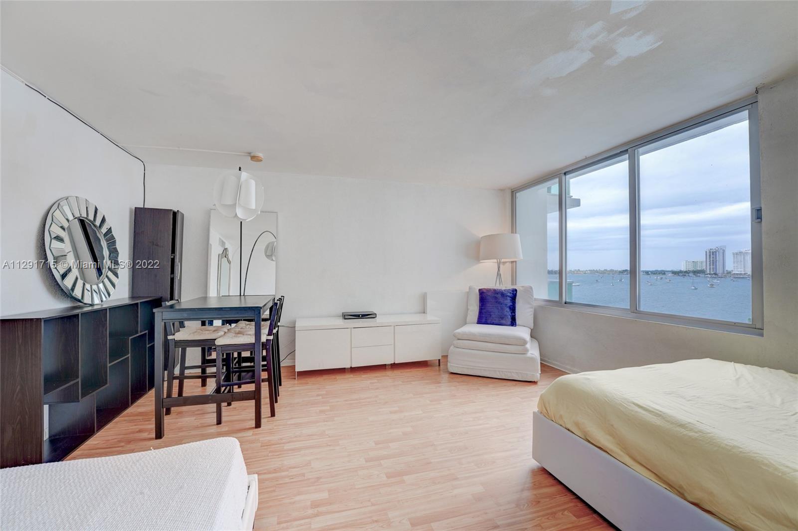 Beautiful spacious bay view studio apt. at Mirador 1000 in South Beach. New impact windows,laminated floors throughout,separate kitchen,bath with shower-tub combo,central air conditioning,lots of closets incl. a walk-in closet & incredible water view with the bay islands. State of the art extra large health fitness gym with a membership,convenience store,heated pool,cabanas,BBQ grill & Jacuzzi currently under construction for ca.1 yr. Across from Whole Foods Market,just a short walk to restaurants,Lincoln Rd. Mall,cinema,Flamingo Park Sport Pool & Tennis Center,public transportation,FREE trolley, nightlife & so much more that SoBe has to offer & less than 1mile from its popular beach & ocean. Unit needs updates! Rented till Oct. 31st, 2023. ALL special assessments paid for full list price!