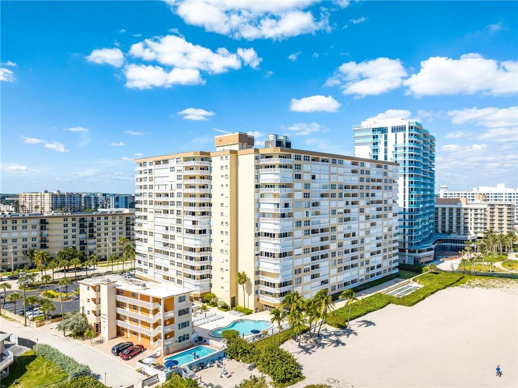This is a great opportunity to live in a 55+ community located right on the beach! This spacious Condo is 1360 SQ FT & has a WRAP AROUND balcony, IMPACT windows & doors, extended UPDATED kitchen with a window & a Washer/Dryer inside the unit. Additionally, there is a NEW 2022 A/C & a 2019 Water Heater. CENTURY PLAZA is beautifully maintained & has deeded beach access, a private beachfront pool, fitness center, library, 24-hour security guarded lobby, community room & beach side BBQ grill. The maintenance includes cable, internet, water, sewer, trash & monthly interior pest control! For investors, the unit is ready to move in or to be leased out (min. lease period of 181 days, 1x a year). The location is also fantastic, a short distance to Pompano Pier, Lighthouse, Shopping & Restaurants!