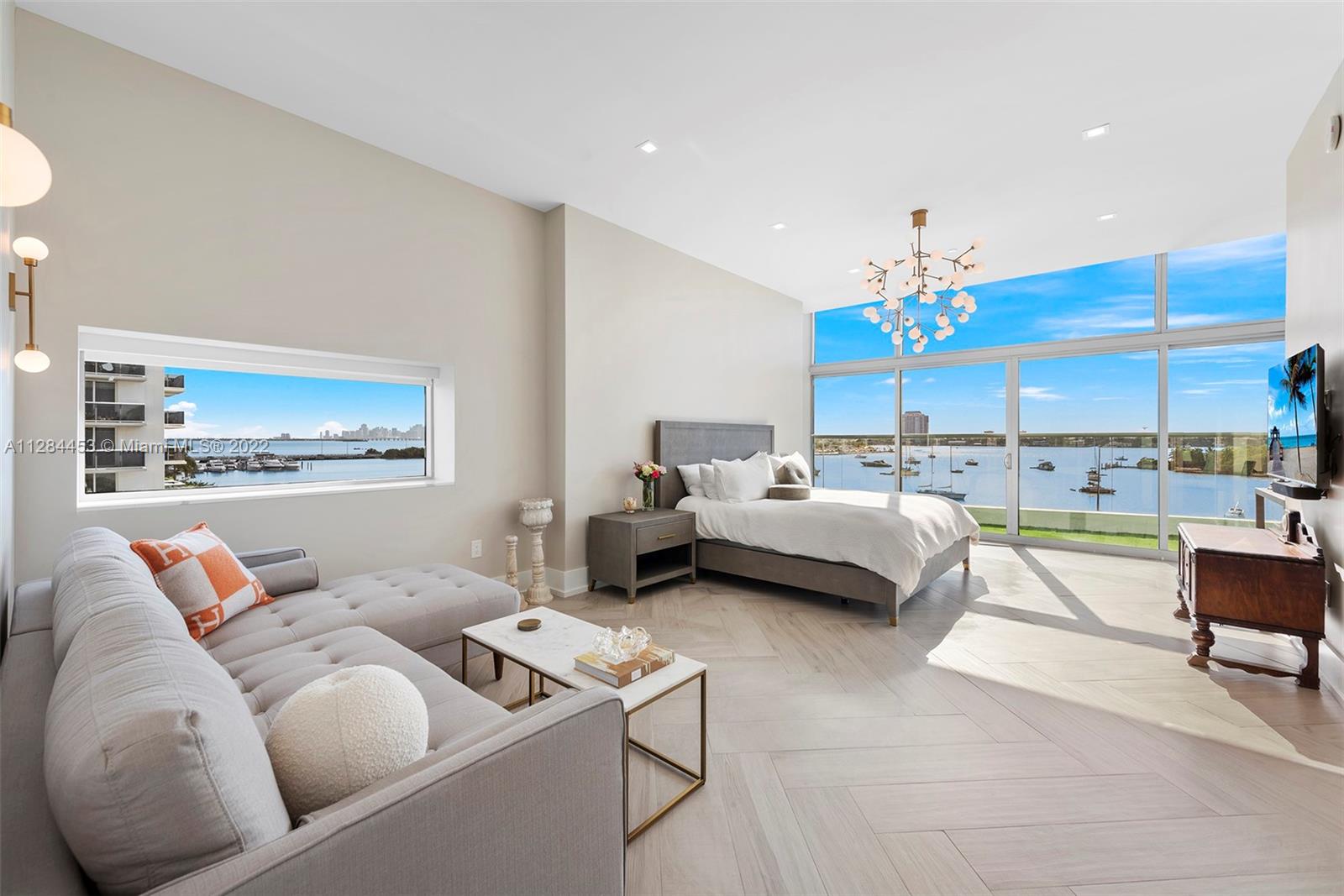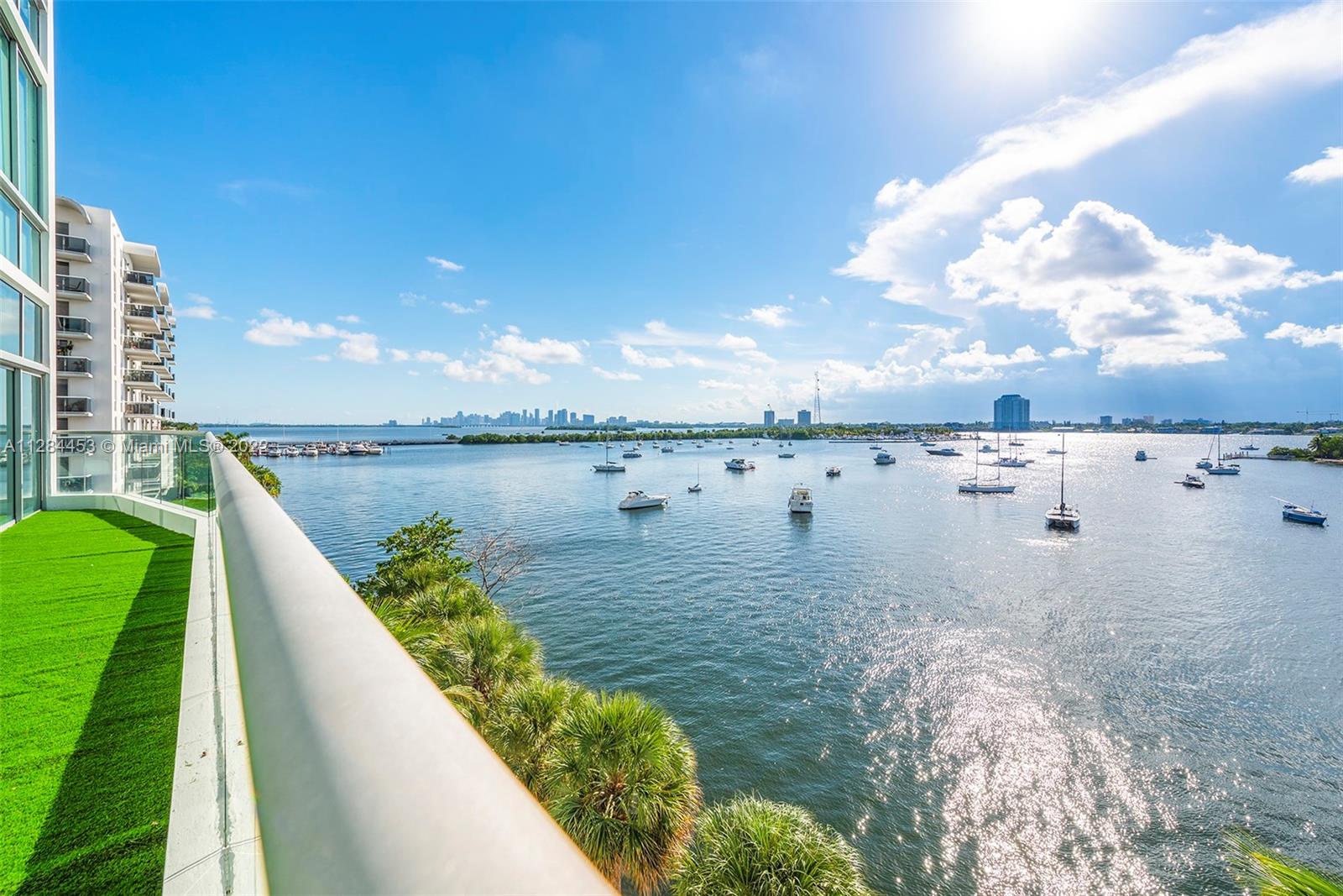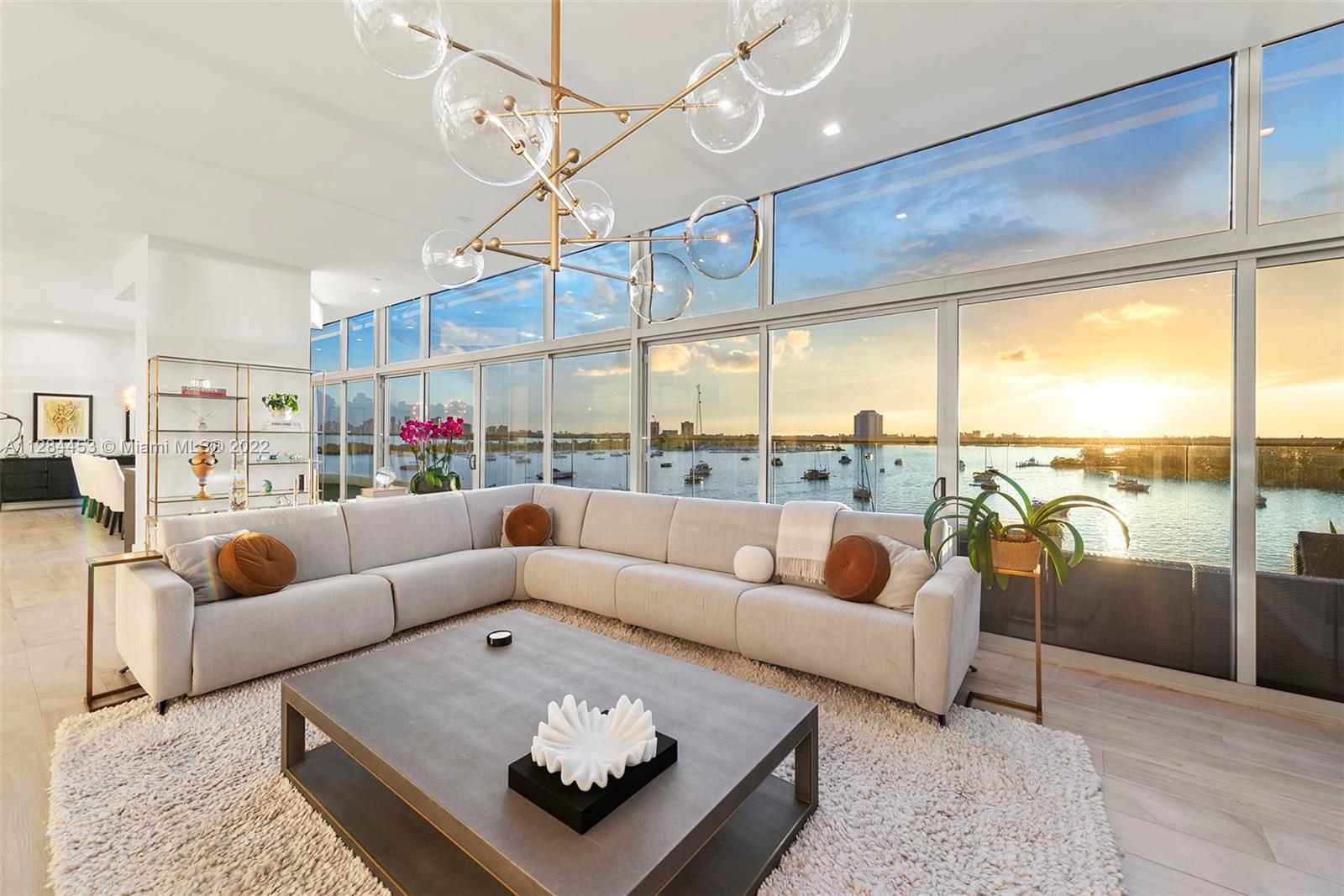 Rarely available, 4/3.5 corner, double-unit of 3,721 sq ft with amazing panoramic waterfront views in the idyllic islands of North Bay Village. Unit boasts open floor plan, with floor-to-ceiling and wall-to-wall impact glass windows and doors leading to an additional 350 sq ft of balcony overlooking the water. Impeccably and elegantly designed; no expense was spared. Features: large bedrooms (three en-suite) solid interior 8-ft doors, Miele and Wolf appliances, 10' kitchen island and high end lighting throughout. Building amenities include 24-hour security entrance, gated parking, private waterfront boardwalk with BBQ area, lush rooftop heated pool, and well-equipped fitness center. Four parking spaces, big dogs welcome. This peaceful waterfront home enjoys amazing sunsets.
