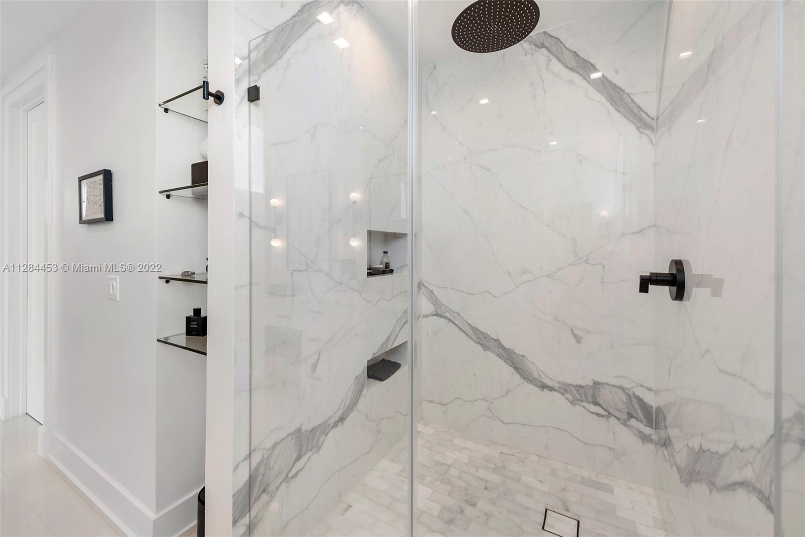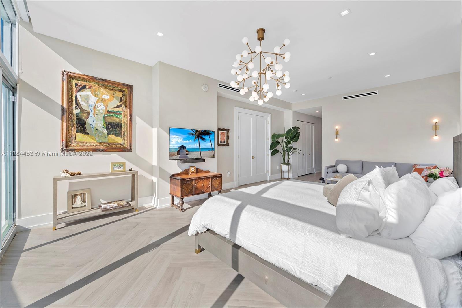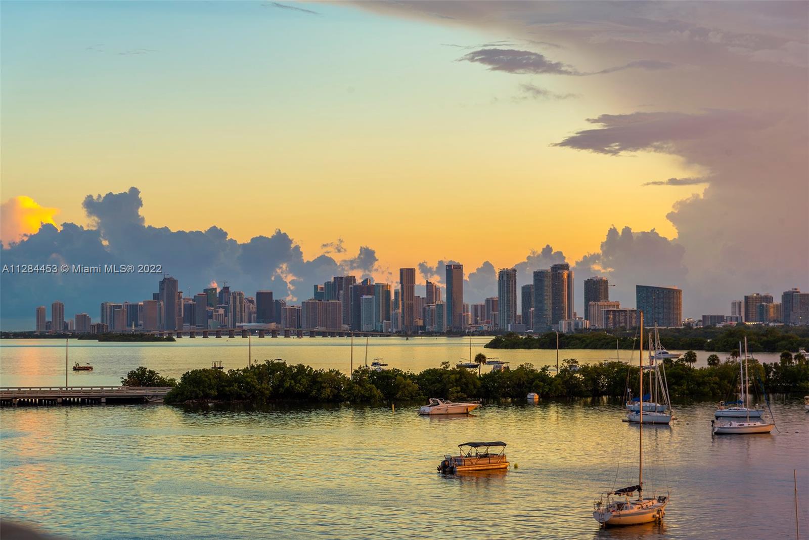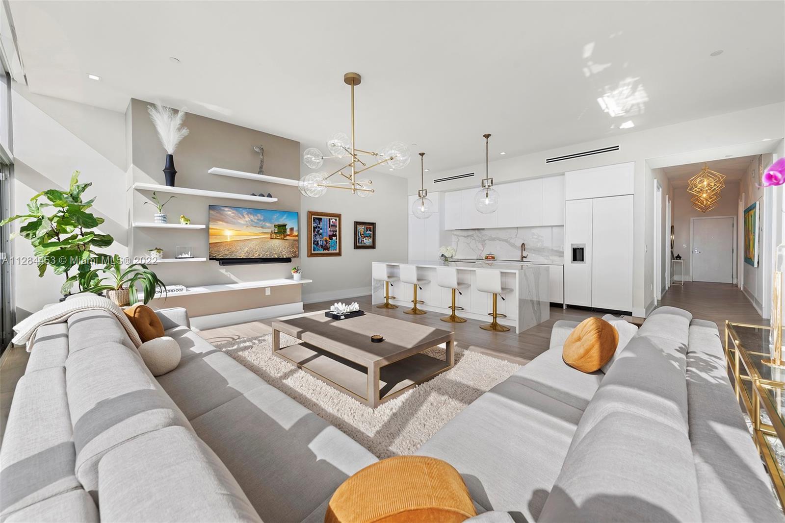 Rarely available, 4/3.5 corner, double-unit of 3,721 sq ft with amazing panoramic waterfront views in the idyllic islands of North Bay Village. Unit boasts open floor plan, with floor-to-ceiling and wall-to-wall impact glass windows and doors leading to an additional 350 sq ft of balcony overlooking the water. Impeccably and elegantly designed; no expense was spared. Features: large bedrooms (three en-suite) solid interior 8-ft doors, Miele and Wolf appliances, 10' kitchen island and high end lighting throughout. Building amenities include 24-hour security entrance, gated parking, private waterfront boardwalk with BBQ area, lush rooftop heated pool, and well-equipped fitness center. Four parking spaces, big dogs welcome. This peaceful waterfront home enjoys amazing sunsets.