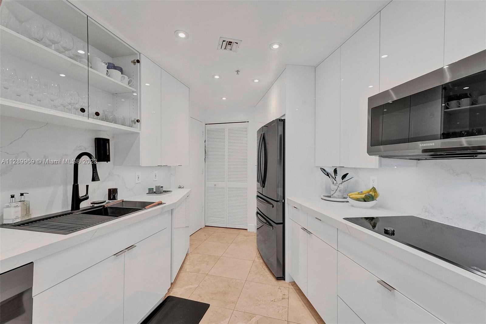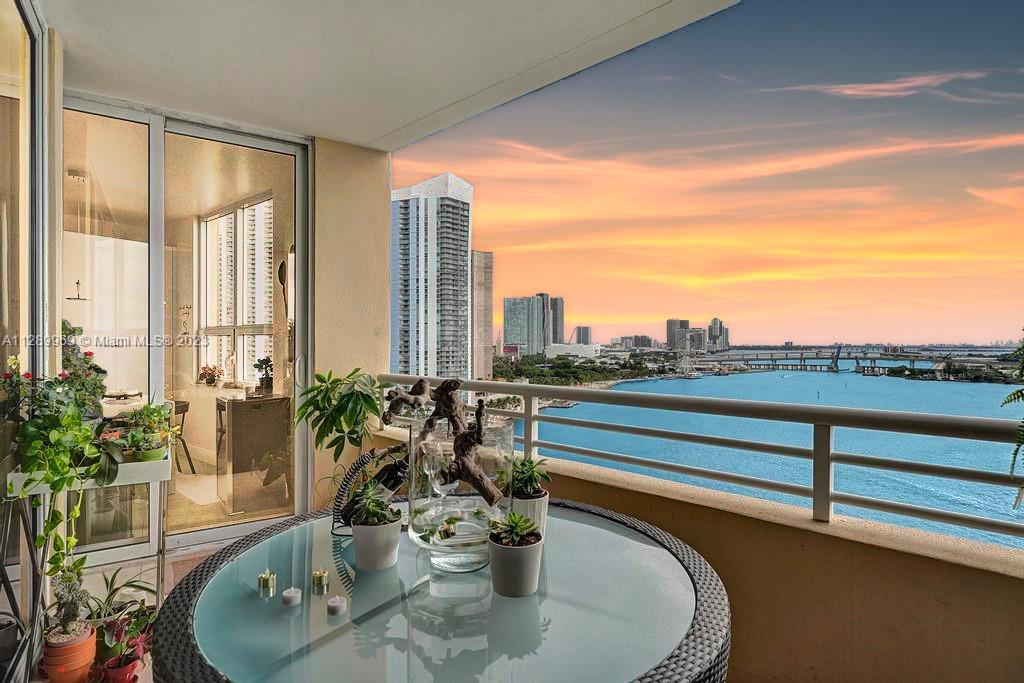 Experience beauty, comfort and breathtaking views in this unit overlooking the Biscayne Bay, the Miami River and the Ocean. Live in the heart of the modern and vibrant Business district, with the privacy, glamour and lifestyle of a tropical island. Move right in and enjoy the modern, yet timeless Italian décor, complete with a brand new kitchen and appliances, renovated bedroom and remodeled Electric blinds, white wood floors and marble floors add elegance to the living and dining areas. Additional guest/studi room with private full bath and walking closet. New A/ First class amenities await you in this remarkable property. Furniture could be included. Don'tiss out this opportunity. Note : 2nd Bedroom is a DEN..For more details please see virtual tour!!
