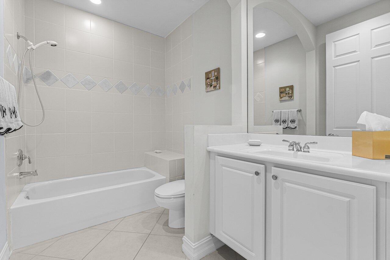 This highly desired floorplan encompasses over 2,700 sf of living space and provides a white neutral palette. Upon entering, you are greeted with a dramatic staircase and your own private elevator in the foyer. At first glance you are impressed by the soaring vaulted ceiling heights in this sun filled condo. The dining room and family room are not photographed but are spacious and perfect for entertaining. A beautiful sizeable open kitchen extends to an eat-in dining area and family room that leads to a covered screened-in patio. The oversized primary bedroom offers two large walk-in closets and a tranquil bathroom retreat with a large soaking tub. The secondary bedroom is very impressive in size and has a private en-suite bathroom and walk-in closet. While the third bedroom