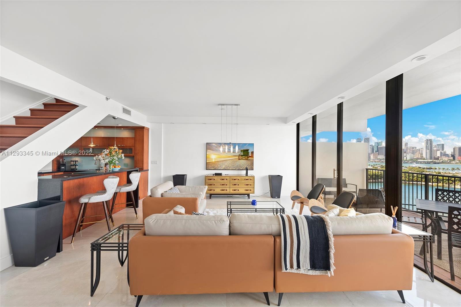 Beautifully appointed 2-story residence w/ unobstructed bay & skyline views! This luxurious 1 BD/1.5 BA unit boasts over 1,000 Sq.Ft. of living space, two spacious terraces, floor-to-ceiling glass windows, open living & dining rooms, kitchen w/ breakfast bar & wine fridge, oversized patio on the main level w/ spectacular sunset views, & spacious bedroom suite upstairs w/ large private terrace! Located on the Venetian Islands, one of Miami Beach's most desired locations, between South Beach & Miami's downtown arts & design areas! This full service luxury building offers security, concierge, doorman, 2 pools w/hot tub, tennis courts, basketball court, barbecue area, fitness complex w/ spa & sauna, children's play area, dog park, complimentary guest parking, & more! ALSO AVAILABLE FOR RENT!