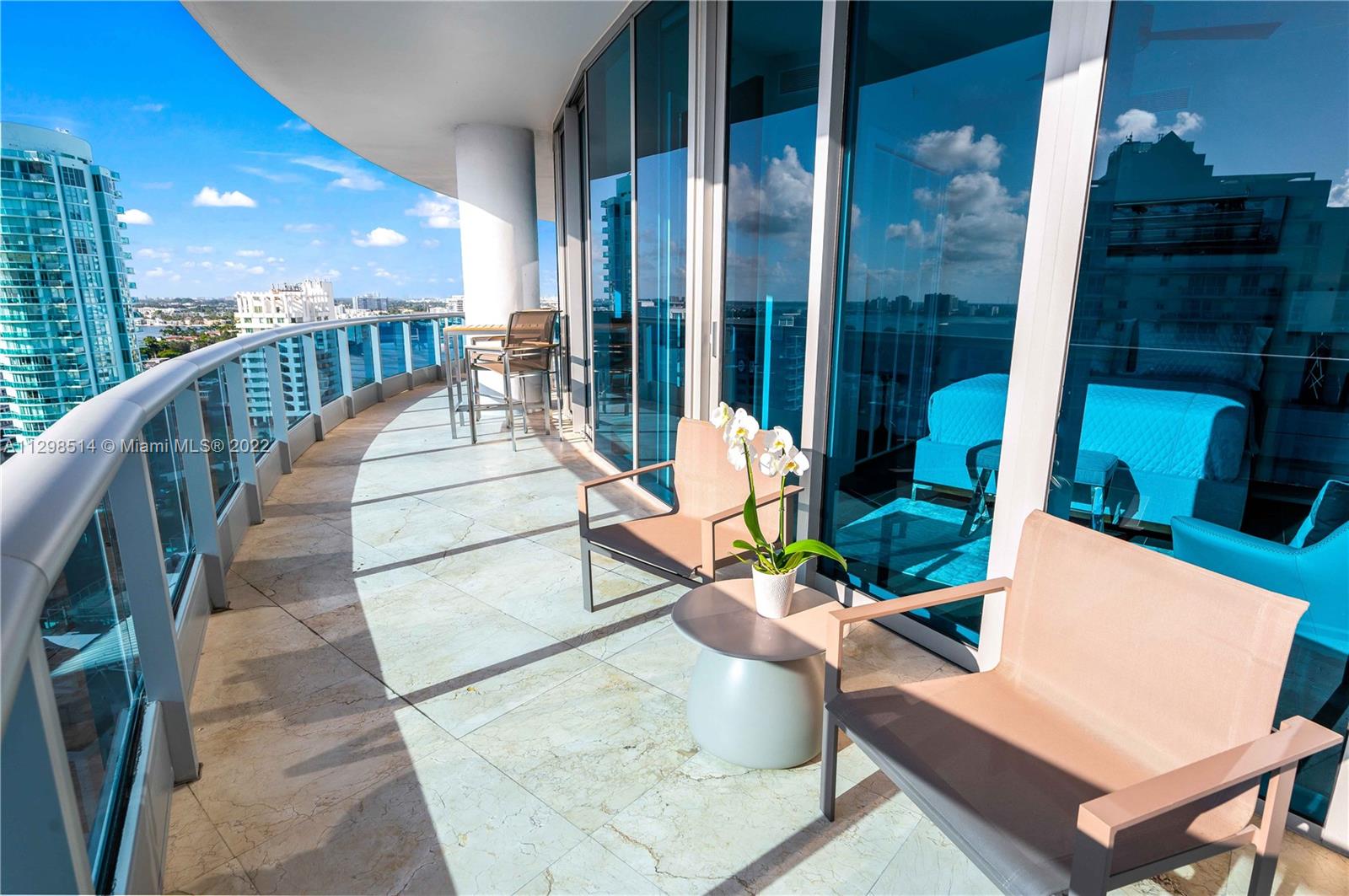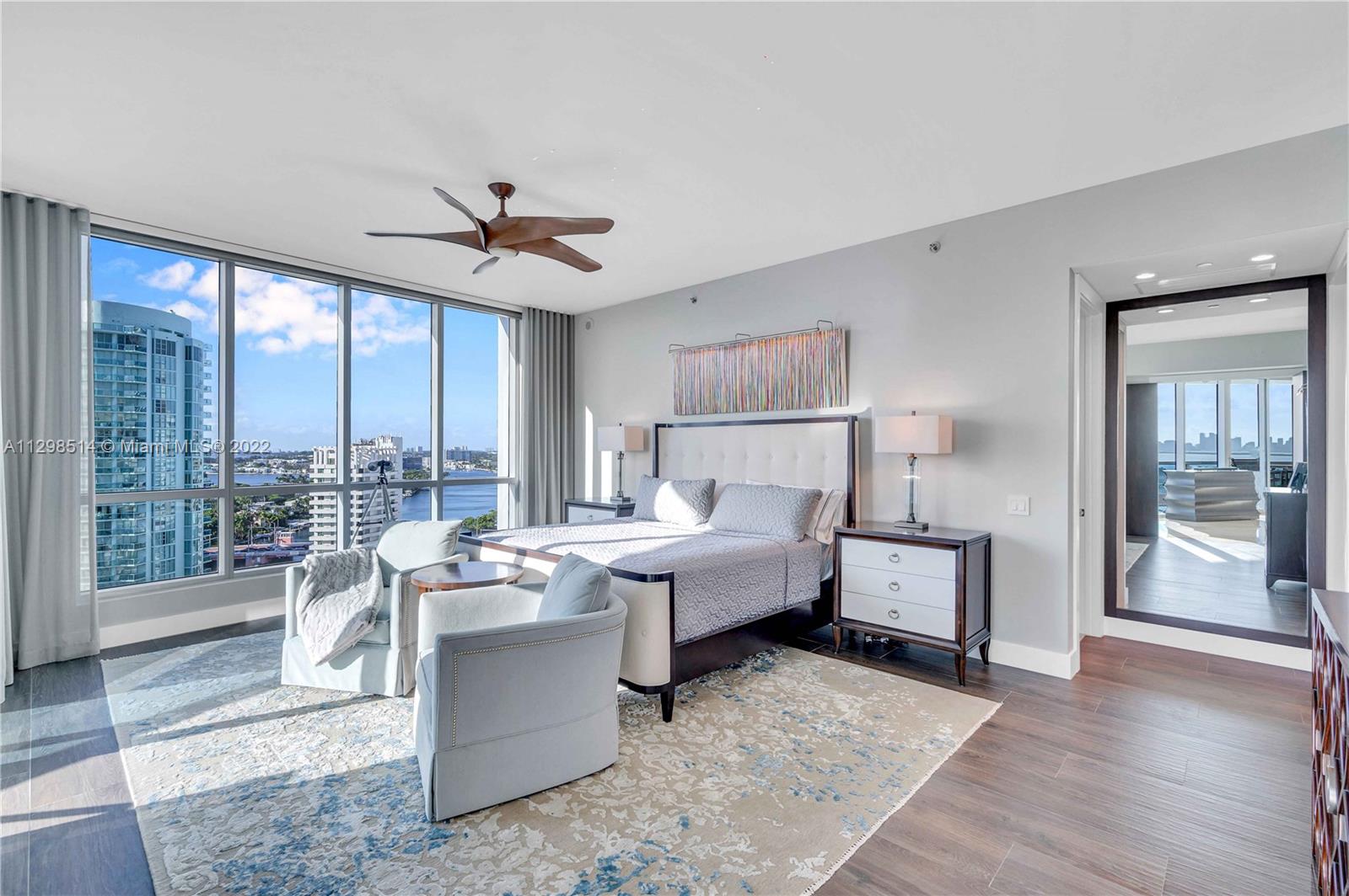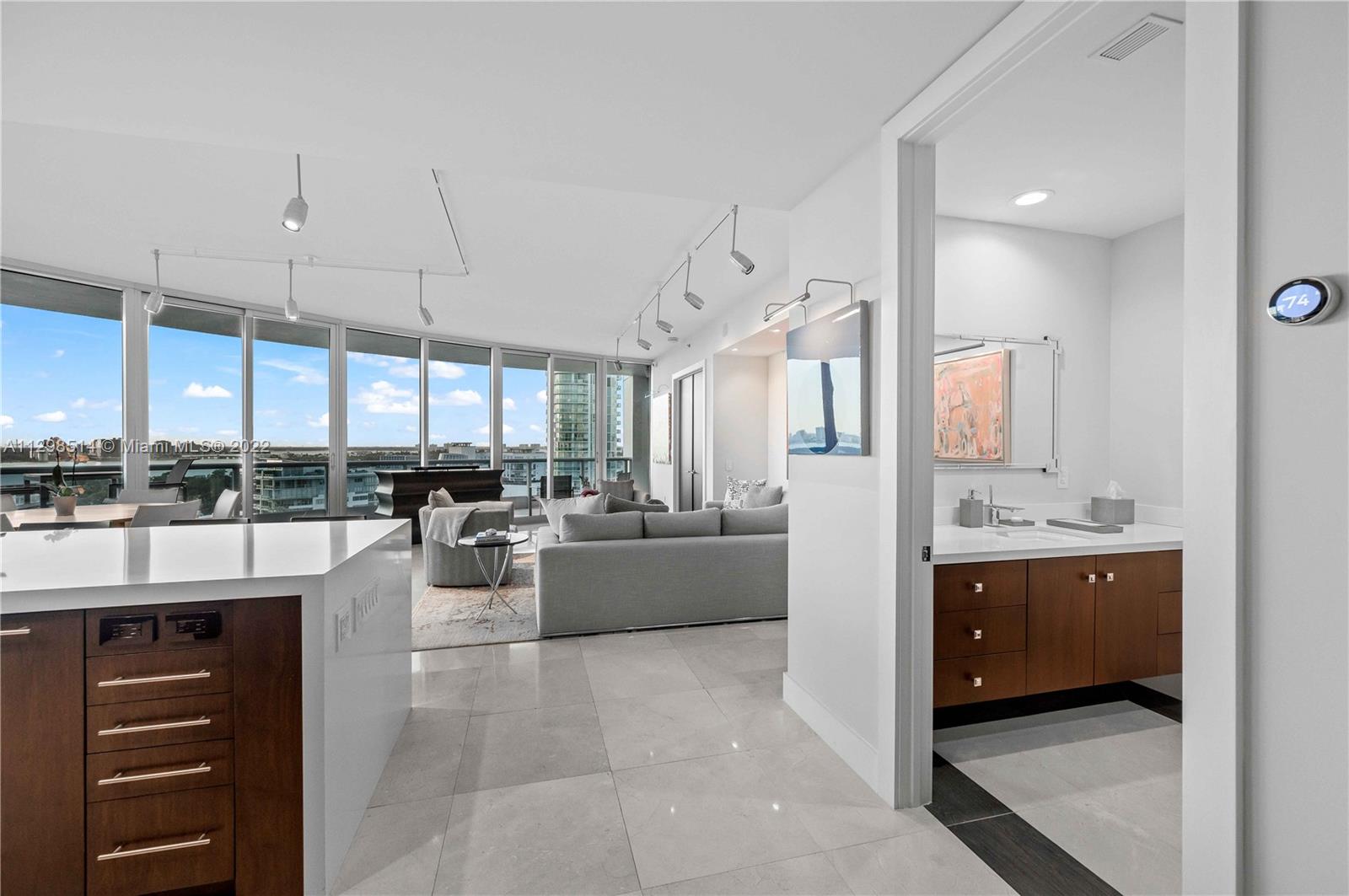 An absolute must see! Breathtaking & expansive water, city, & skyline views greet you upon entering this fully remodeled, turnkey furnished unit. No expense was spared. High up on the 17th flr, the view clears other buildings so the line of sight is endless. The price inclds the furniture & most of the artwork. All the closets are built out; there are 2 full master bathrooms, 1 full bath in the 2 nd bedroom, & a separate half bath. Private elevator foyer. All new appliances, incld an oversized wine cooler & washer/dryer in the laundry room. 5 star oceanfront resort living in a gated building w/ guardhouse, concierge, doormen, & valet parking. Pet friendly, pool, tennis courts, beach service, & a large fitness center (including Peloton stations) & spa.