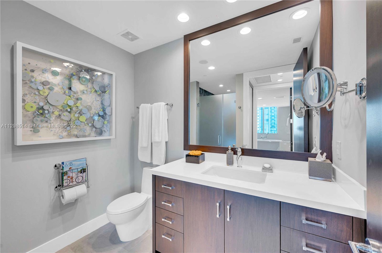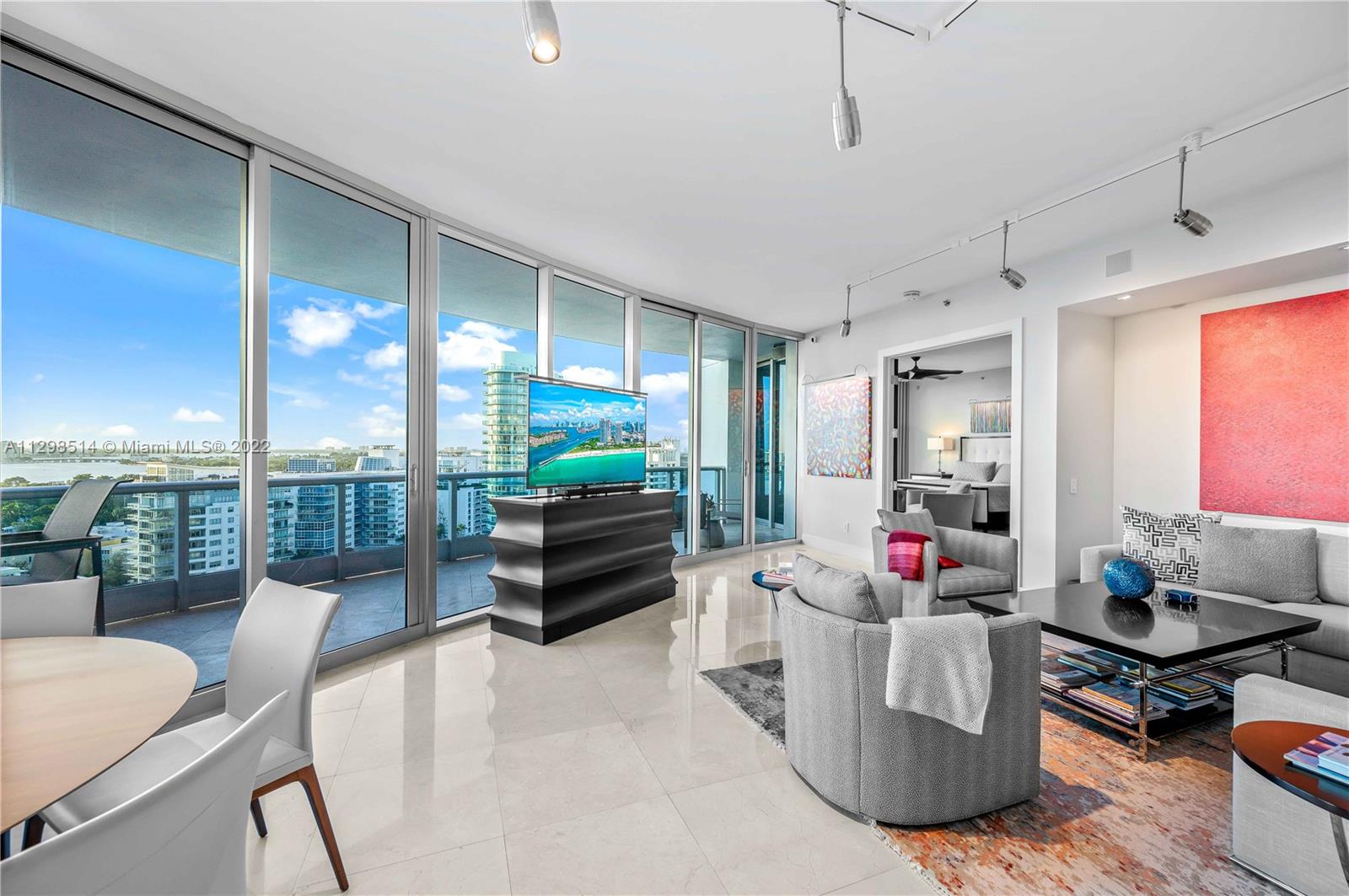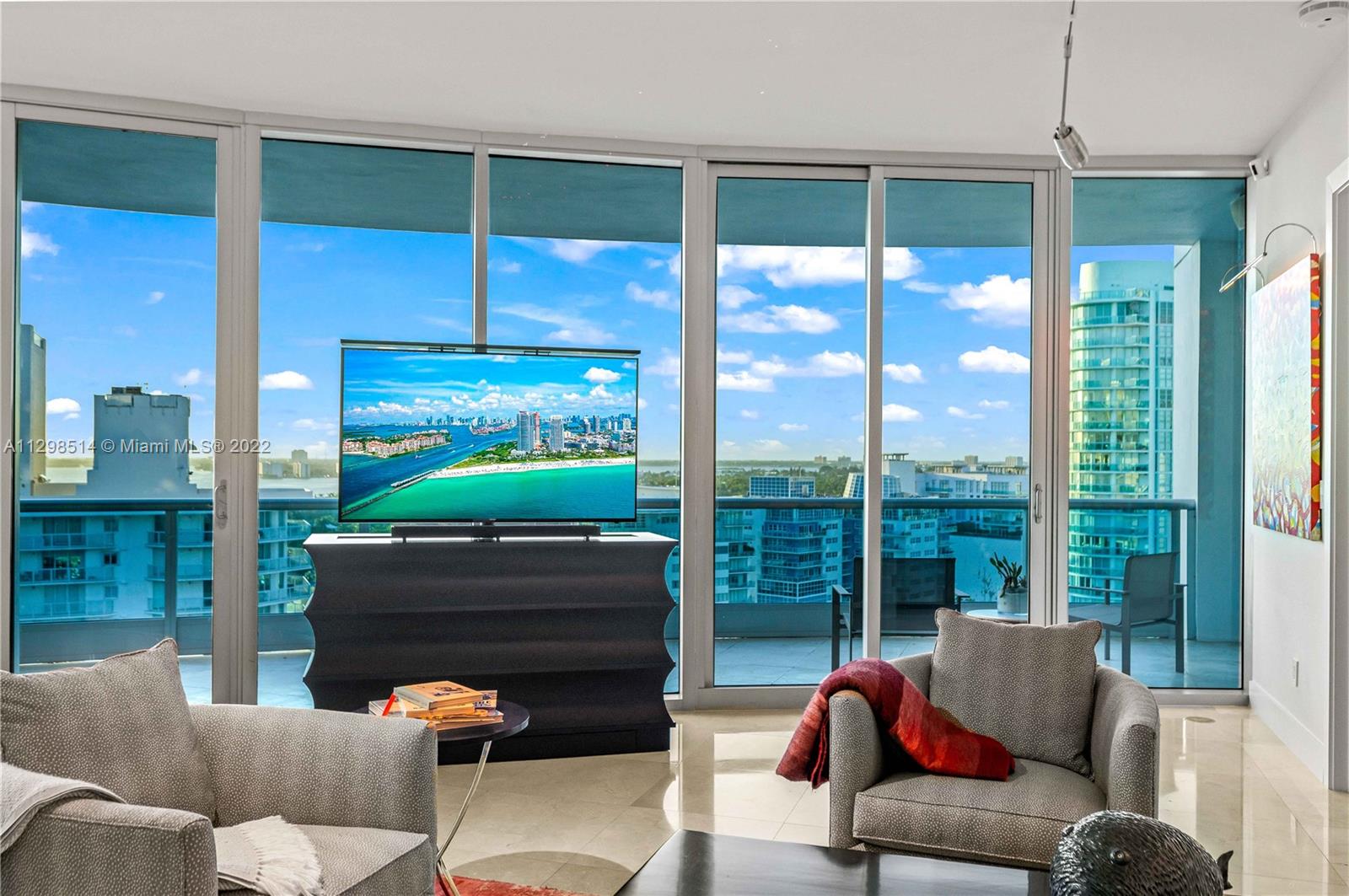 An absolute must see! Breathtaking & expansive water, city, & skyline views greet you upon entering this fully remodeled, turnkey furnished unit. No expense was spared. High up on the 17th flr, the view clears other buildings so the line of sight is endless. The price inclds the furniture & most of the artwork. All the closets are built out; there are 2 full master bathrooms, 1 full bath in the 2 nd bedroom, & a separate half bath. Private elevator foyer. All new appliances, incld an oversized wine cooler & washer/dryer in the laundry room. 5 star oceanfront resort living in a gated building w/ guardhouse, concierge, doormen, & valet parking. Pet friendly, pool, tennis courts, beach service, & a large fitness center (including Peloton stations) & spa.