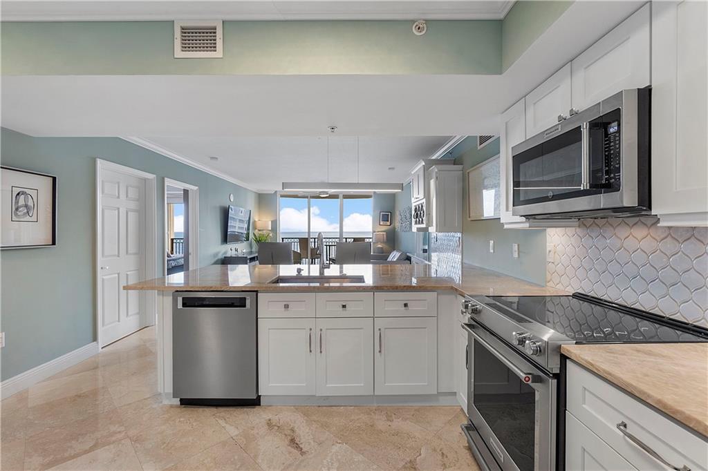 MOVE RIGHT INTO THIS FABULOUS RENOVATED FULLY FURNISHED 3 BED/2 BATH CONDO. AMAZING OCEAN VIEWS IN A VERY UPDATED BUILDING WITH POOLS, SPA AND PRIVATE BEACH ACCESS. 24 HOUR VALET. PET FRIENDLY- UP TO 2 ANIMALS IN EACH UNIT. SELLERS SPENT OVER $100K IN DESIGNER RENOVATIONS WHICH INCLUDES- SHAKER STYLE CABINETS, EXPANDED GRANITE COUNTERTOPS, EXTRA STORAGE, WINE RACK, NEW PLUMBING FIXTURES AND UPDATED LIGHTING. ALL NEW KITCHEN AID APPLIANCES AND BOSCH WASHER AND DRYER- BOTH BATHROOMS HAVE BEEN RENOVATED- CUSTOM CLOSET ORGANIZERS IN 3 CLOSETS. HURRICANE IMPACT WINDOWS. DEN HAS A MURPHY BED AND CAN BE 3RD BEDROOM. NEWER A/C UNIT AND HOT WATER HEATER- IN 2018.