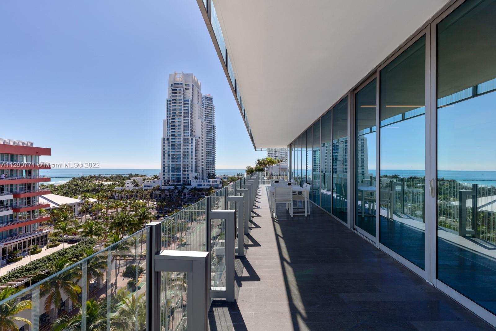 Spanning the entire 9th floor, this expansive residence is the perfect place to call home. Located on the famous Ocean Drive in the heart of the South of Fifth neighborhood boasting 360 degree views through floor to ceiling glass windows, 10 FT ceilings, a Calcutta marble kitchen with Gaggenau appliances and wood flooring throughout. Designed by Architect Rene Gonzalez, engaging our senses with inspiration from the surrounding landscape, designed with an all glass exterior to combine interiors with exterior spaces. Residents of GLASS are offered beach service, a beautiful pool area with Jacuzzi, boutique gym and a full time estate manager.