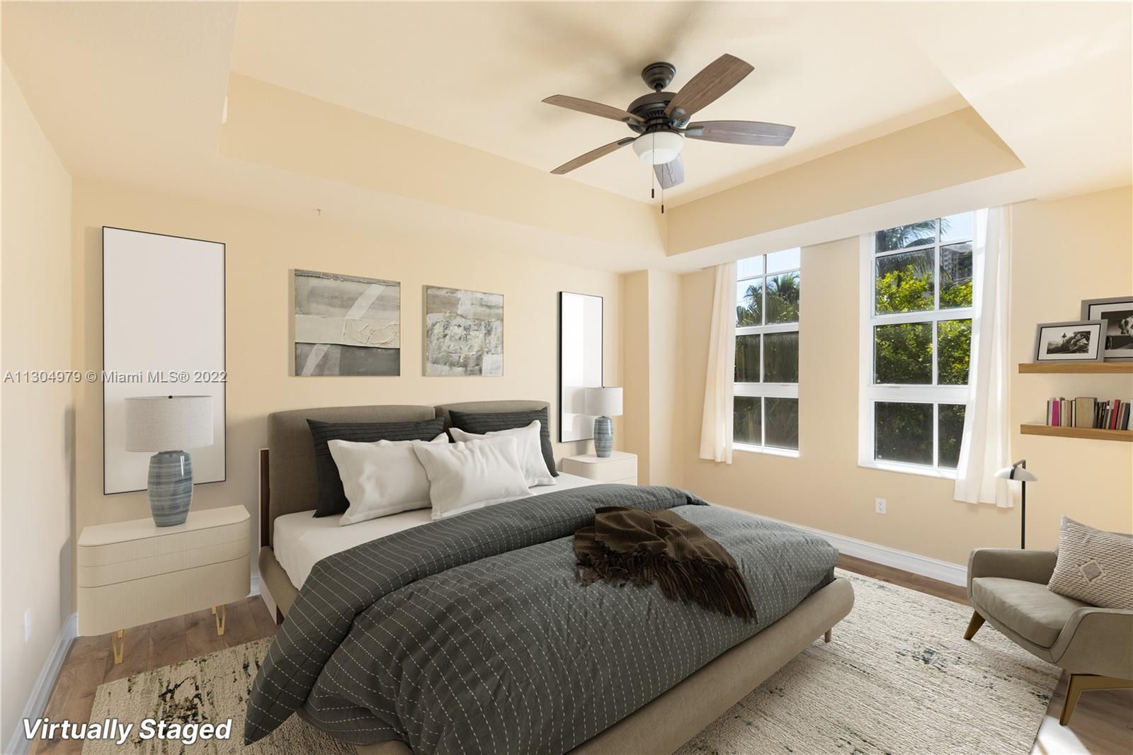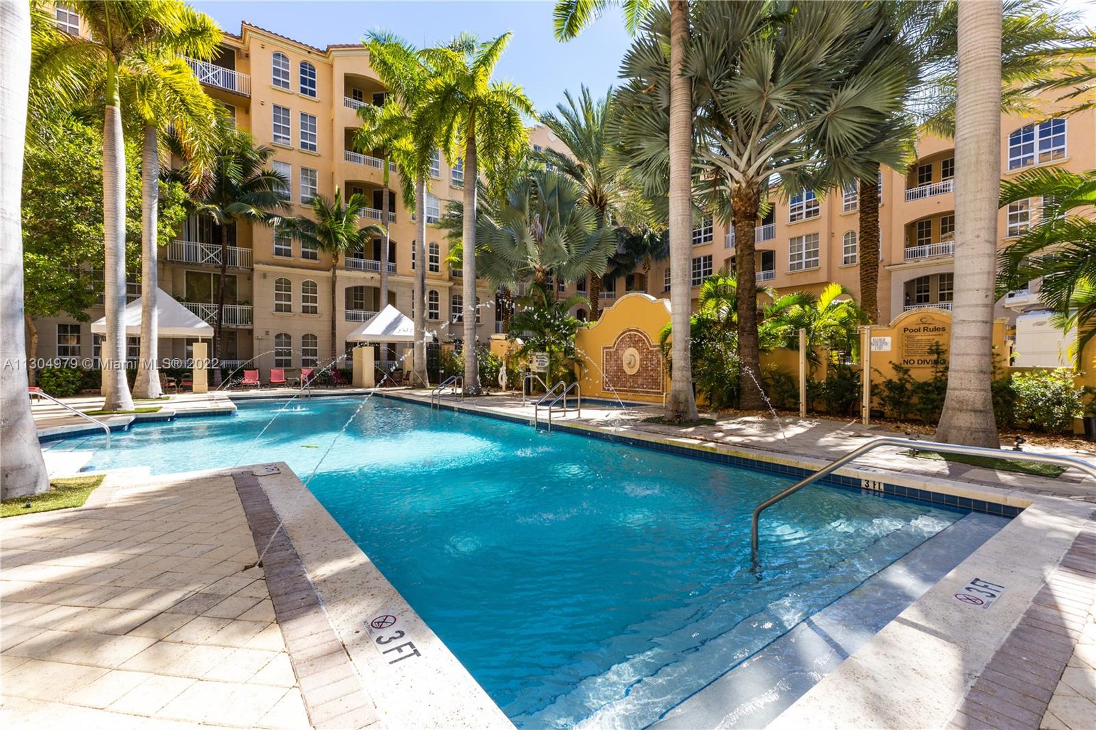 Spacious 2 bedrooms, 2 baths unit at the mediterranean style condo Alaqua, located in the heart of Aventura. The unit features an open floor plan with split bedrooms, 10ft high ceilings and lots of natural light. Enjoy the large balcony with access from living room and bedroom, kitchen with granite countertops and stainless steel appliances, washer and dryer in the unit, and 2 assigned parking spaces. The condo includes a pool, spa, club/billiard room, conference room, gym overlooking the canal and a boardwalk by the canal for walking and relaxing. Maintenance includes cable and internet. Click on "Virtual Tour" for video walkthrough.