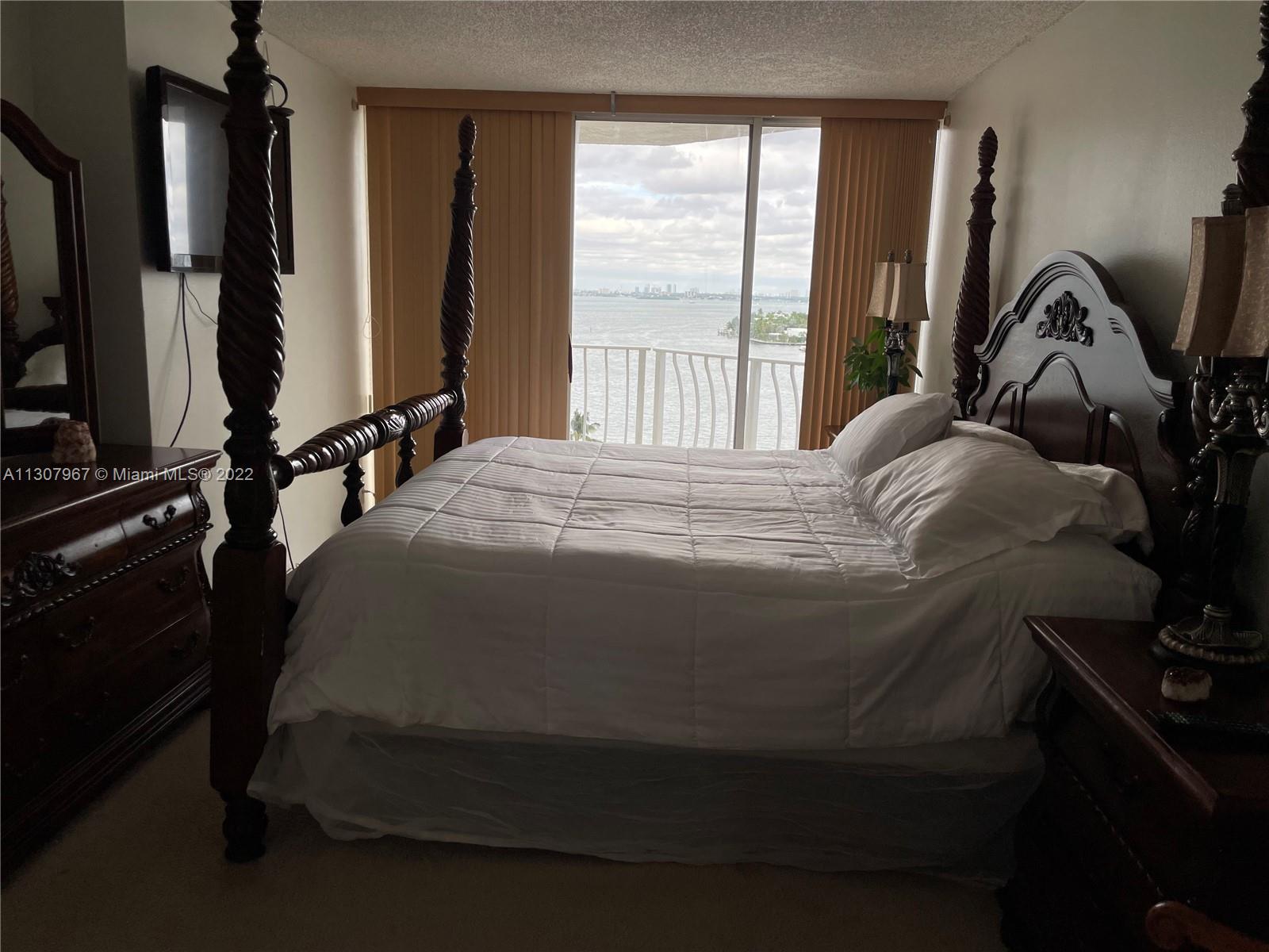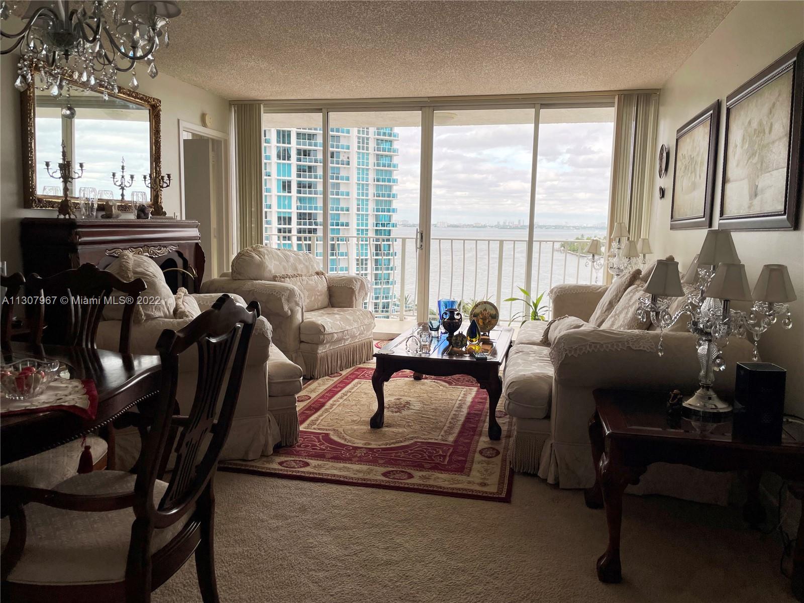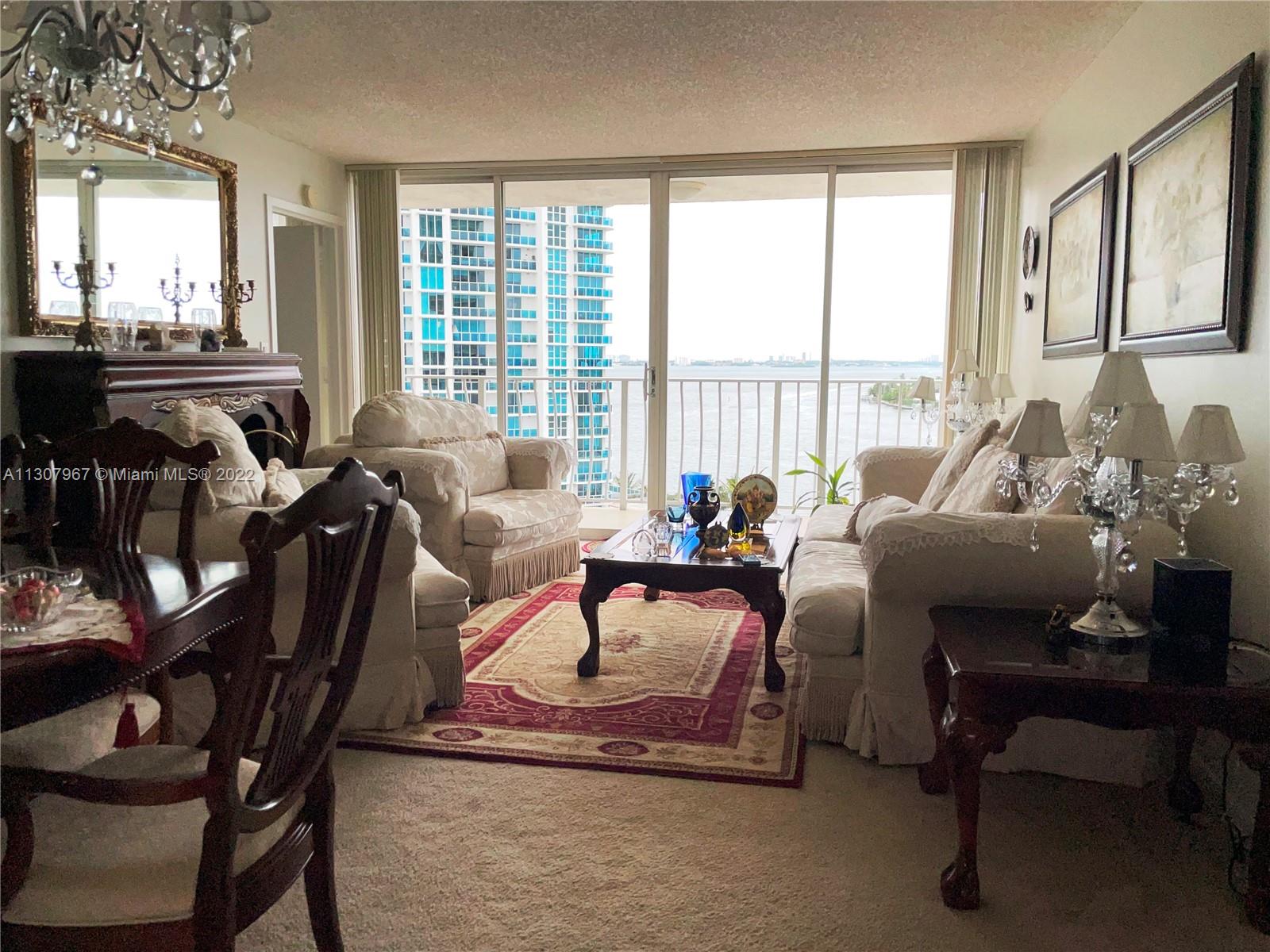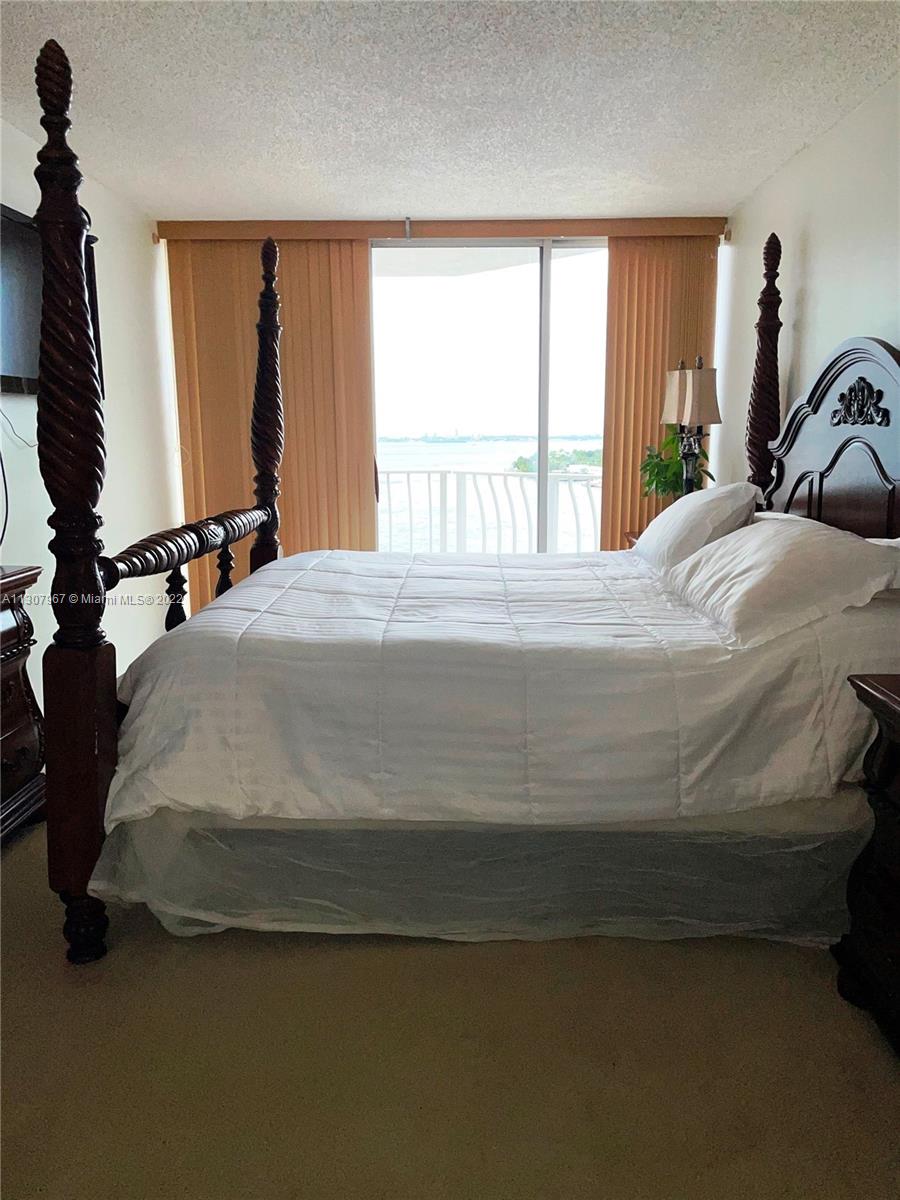 12th floor 2 bedrooms & 2 baths condominium unit with amazing water views. Split unit, both rooms are considered master bedrooms with their own bathroom. Access the spacious long balcony from all areas. Kitchen upgraded with granite counter tops and ceramic tiles. Carpet floors throughout living area and bedrooms, in great condition. North Bay Village, island living, just a few minutes to the beach, airport, major highways and most entertainment areas of Miami Dade. Please allow 24 hours for all appointments. Unit is rented.