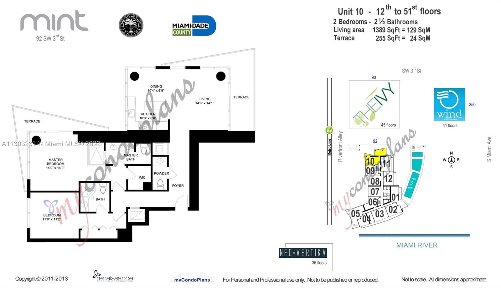 Amazing views from this corner apartment, the 2 bedroom with en-suite bathrooms, in the hallway you will find a half bathroom for guests and laundry room. Spacious kitchen with top of the line appliances. Live in the exclusive gated condominium "Mint at Riverfront". Great location minutes from the main attractions and nightlife that Miami has to offer.