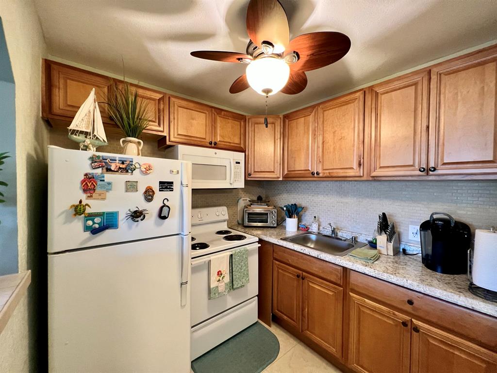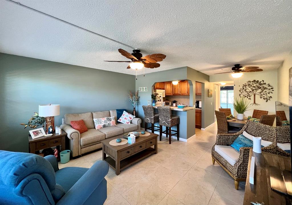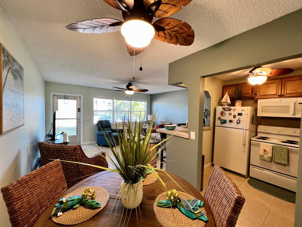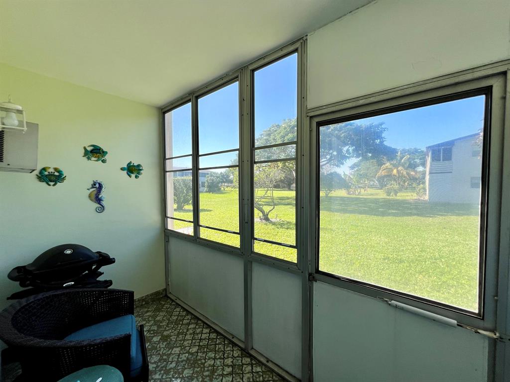 Adorable with Updates in 55+ Century Village! Beautifully maintained FIRST FLOOR 1/1 condo. Pretty updated kitchen. Neutral tile flooring in living area. Full bath with updates. Enclosed lanai with lovely green space views. Tucked away location yet right around the bend from the popular Kent pool! Sold AS IS. Century Village is a 55+ community with so much to offer.