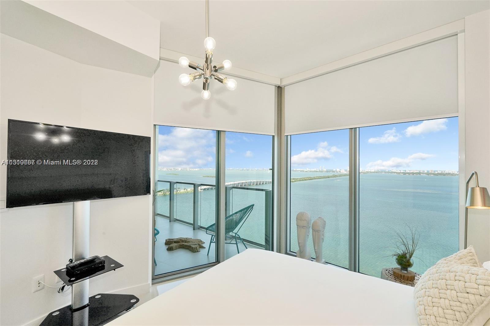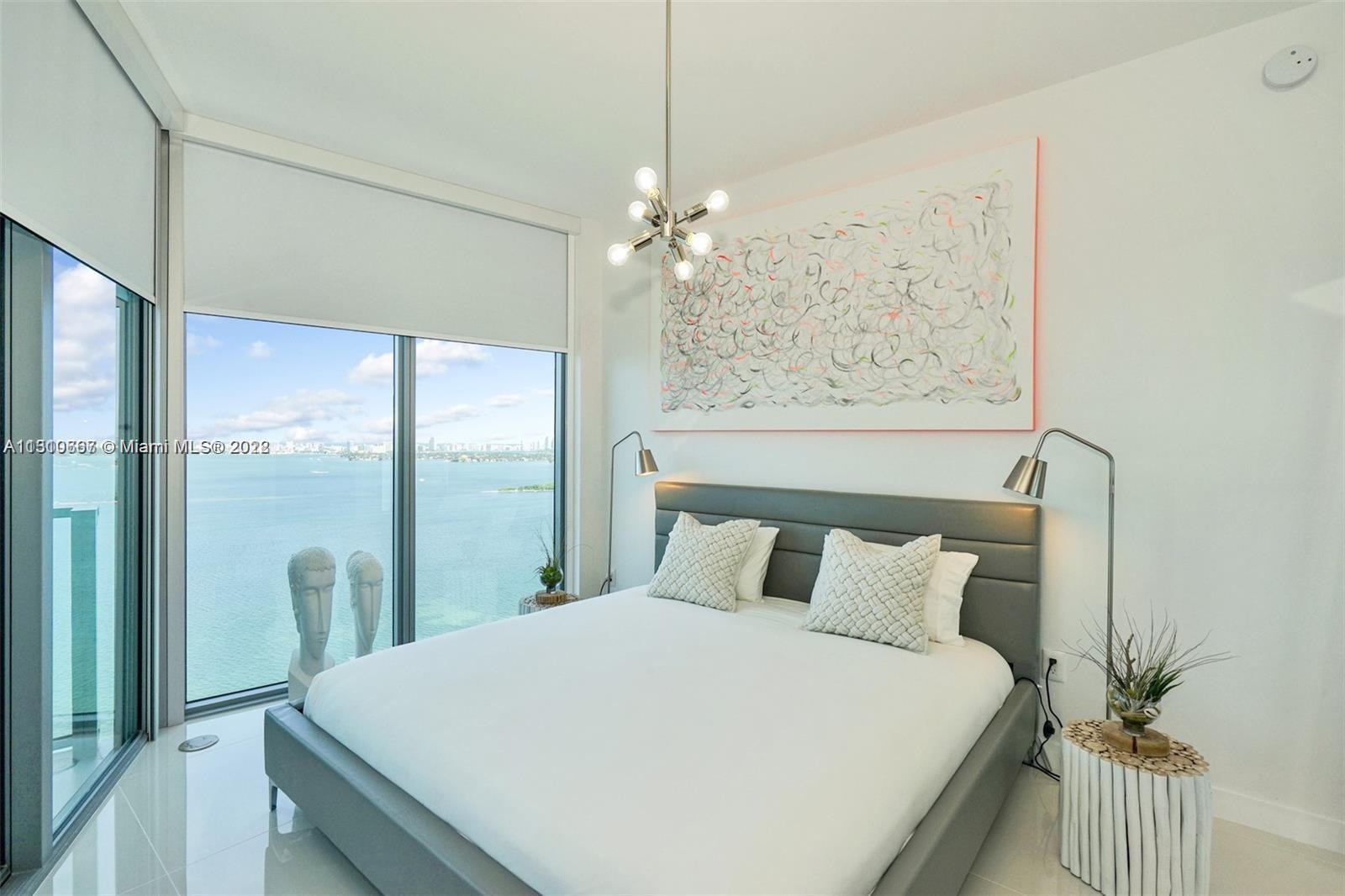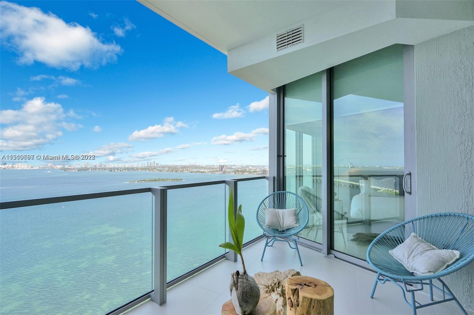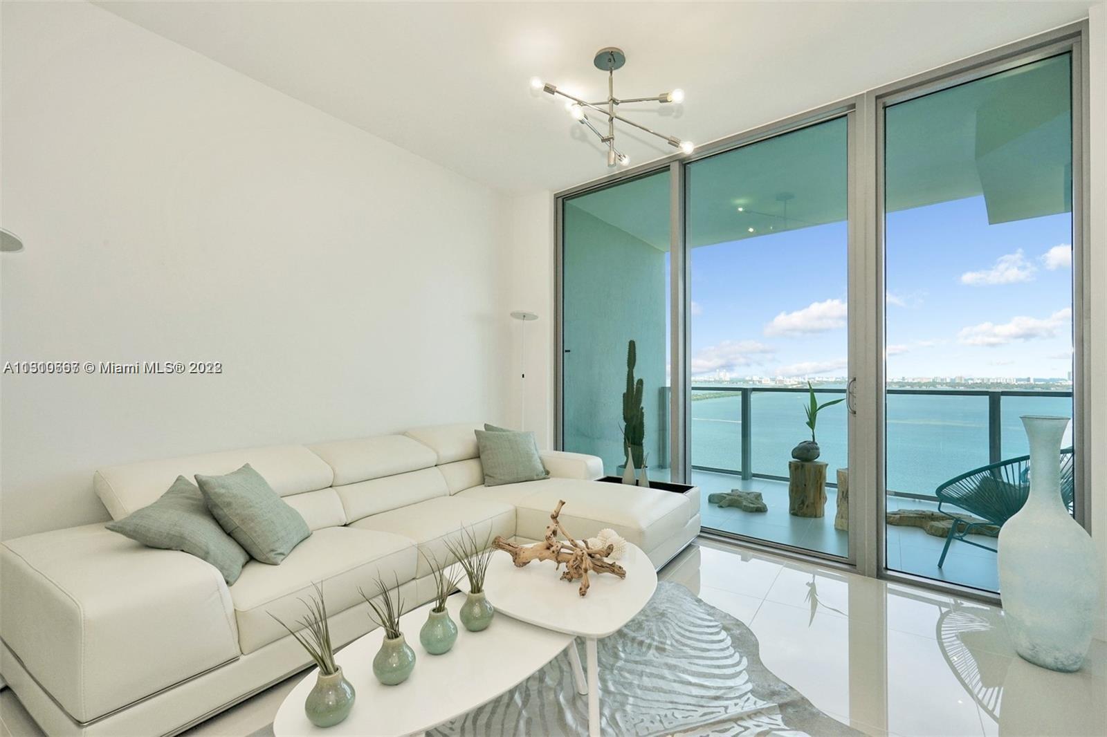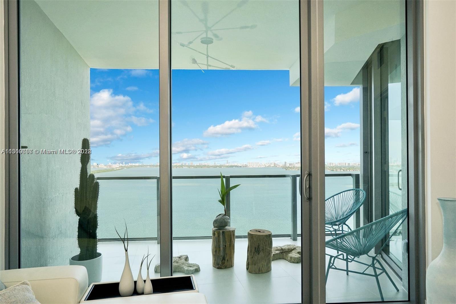 Furnished direct bay view in a luxurious building in Miami’s first man-made beach club directly on the waters of Biscayne Bay with a private beach. Amazing furnished unit 2/2 with a stunning panoramic view of Biscayne Bay and breathtaking views of the Miami Skyline & beautiful sunsets. Adjacent to the popular Design District, Wynwood Arts District, Midtown and Downtown Miami neighborhoods, 10 minutes to Miami Beach. Top of the line appliances, floor to ceiling windows, unit has a private elevator entry. Building lobby level has High-end restaurant, beauty salon, art gallery, business center.