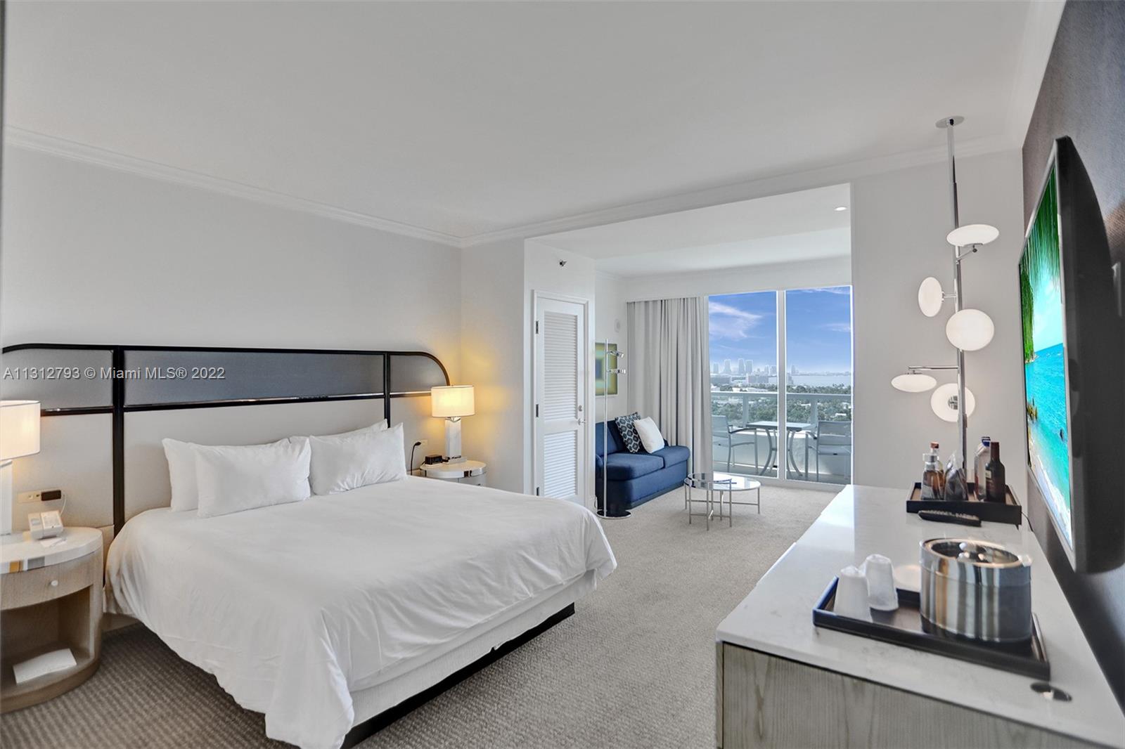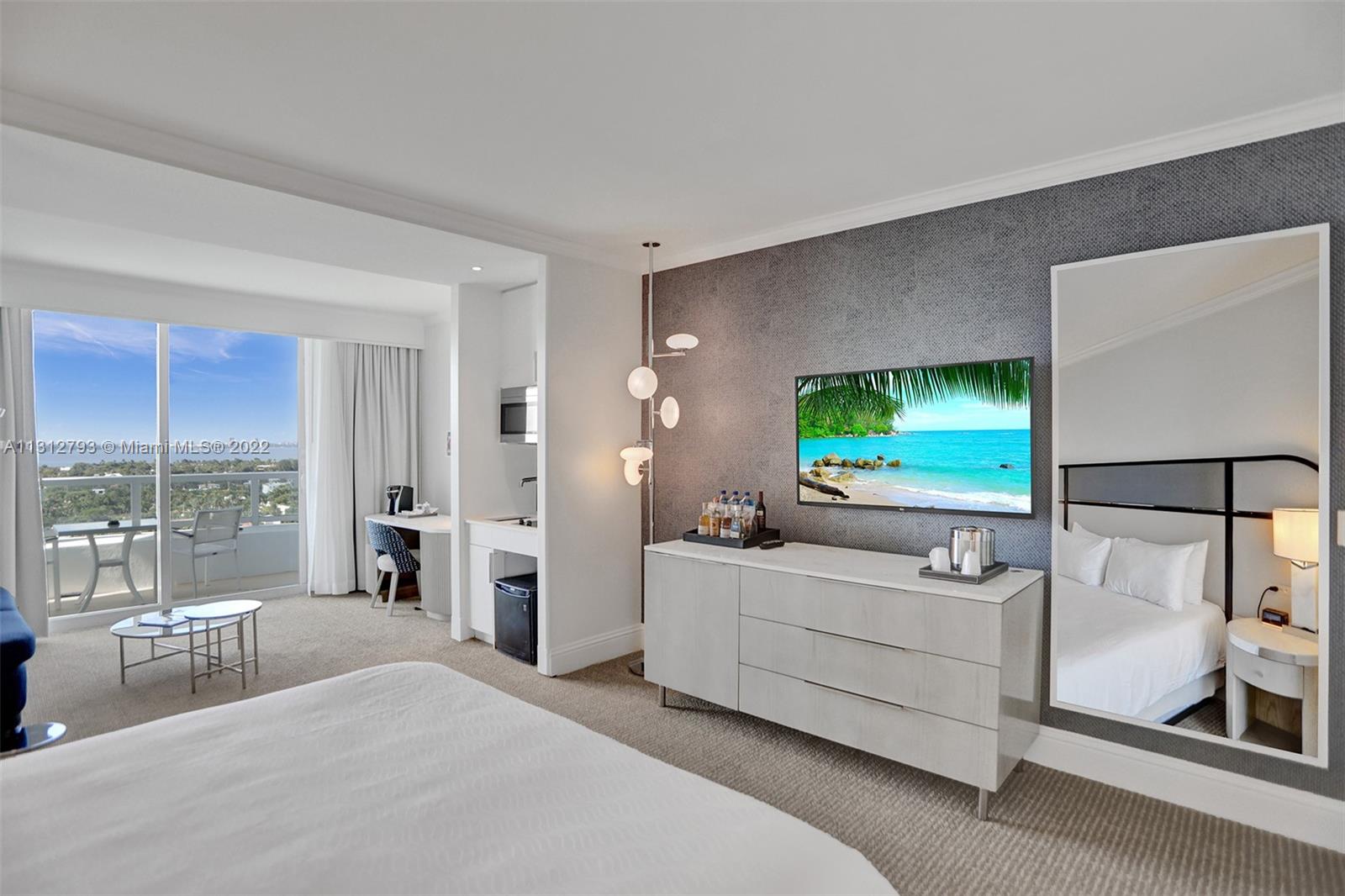 Immerse yourself in ultimate luxury living experience at the Fontainebleau Resort. This newly remodeled JR suite has breathtaking views of bay and city, providing the perfect backdrop for your vacation getaway. This turnkey unit offers full-service, vacation-style living, a king bed, living area with a sleeper sofa, and kitchenette. Enroll in the hotel rental program & receive income while you're away. The Fontainebleau Resort offers a wide range of luxury amenities on 22 oceanfront acres, including award-winning restaurants, the vibrant LIV night club, and the luxurious Lapis spa and state-of-the-art fitness center. Maintenance includes: AC, local calls, electricity, valet and daily free breakfast in owner's lounge. Don't miss out on this incredible opportunity to own a piece of paradise.