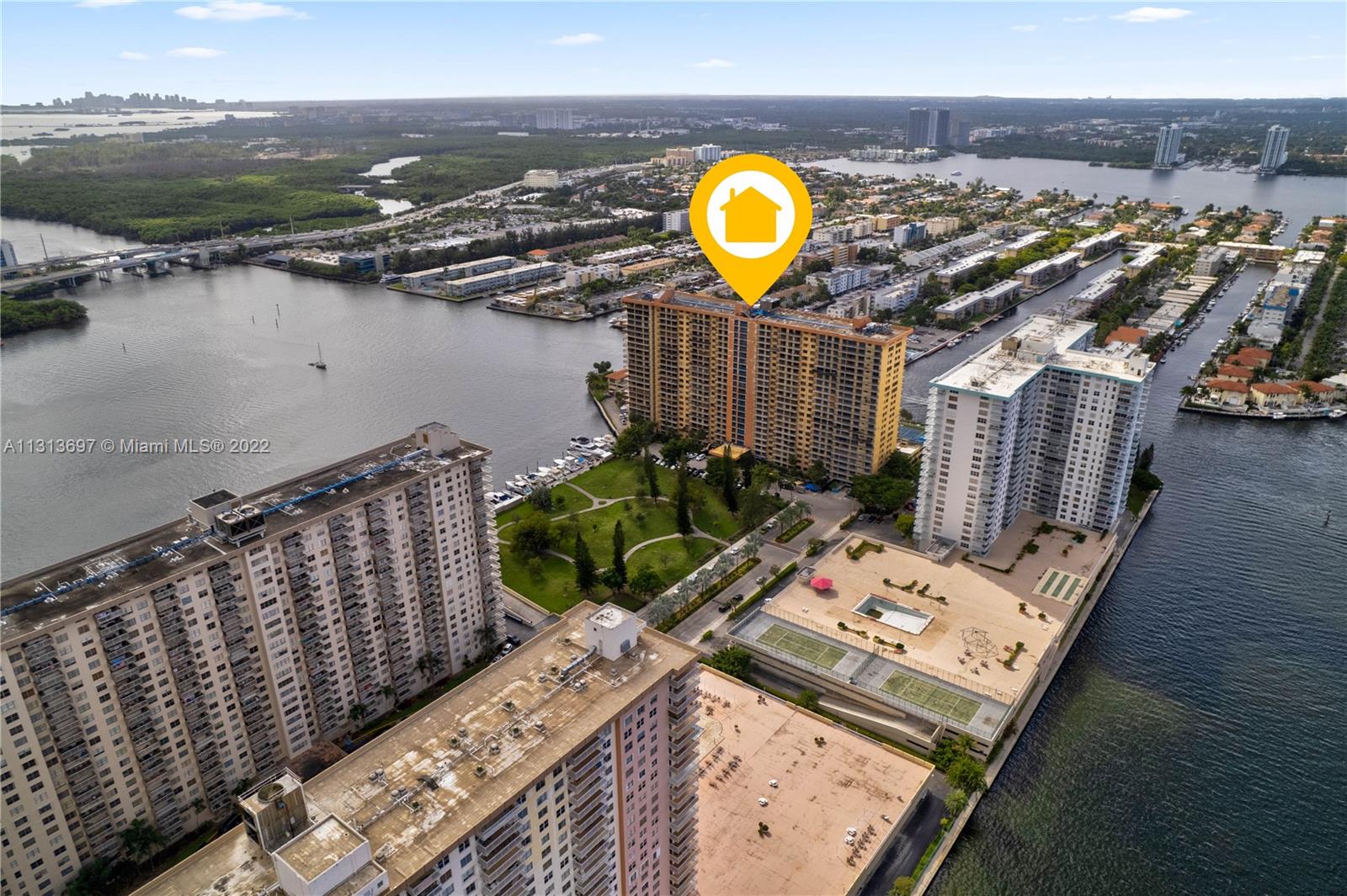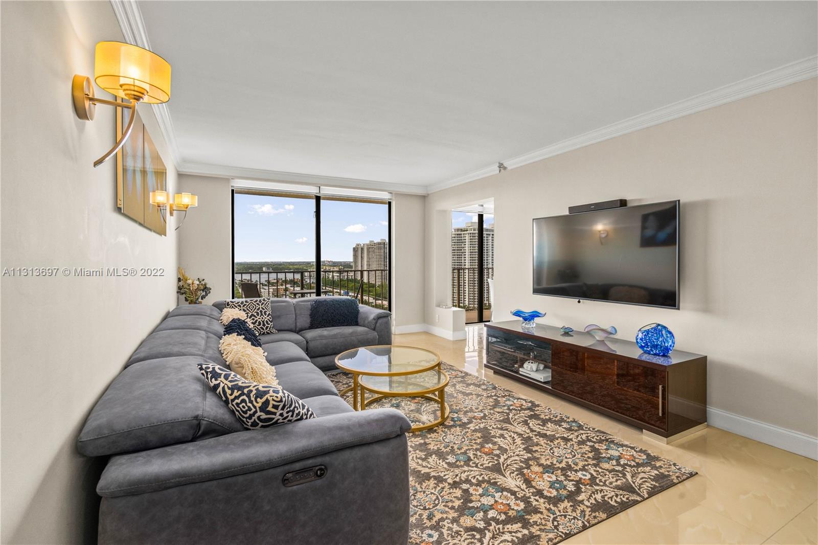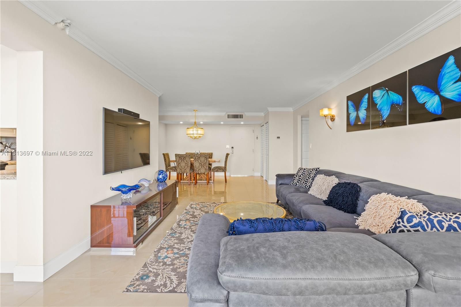 Splendid!!! Totally redone waterfront top floor with dazzling views overlooking the bay, canals, Oleta park and a glimpse of the downtown skyline. This stylish residence features porcelain flooring, crown molding, halogen lighting, totally remodeled kitchen and bathrooms, oversize balcony, 2 yr old AC with smart thermostat and full size washer & dryer. Unit comes tastefully furnished and equipped. Winston 700 allows renting 1st year and min 90 days. The building is under renovation…currently being painted, new pool deck & landscaping. Great location at a walking distance to the beach, A school, restaurants and groceries. Easy to show.
