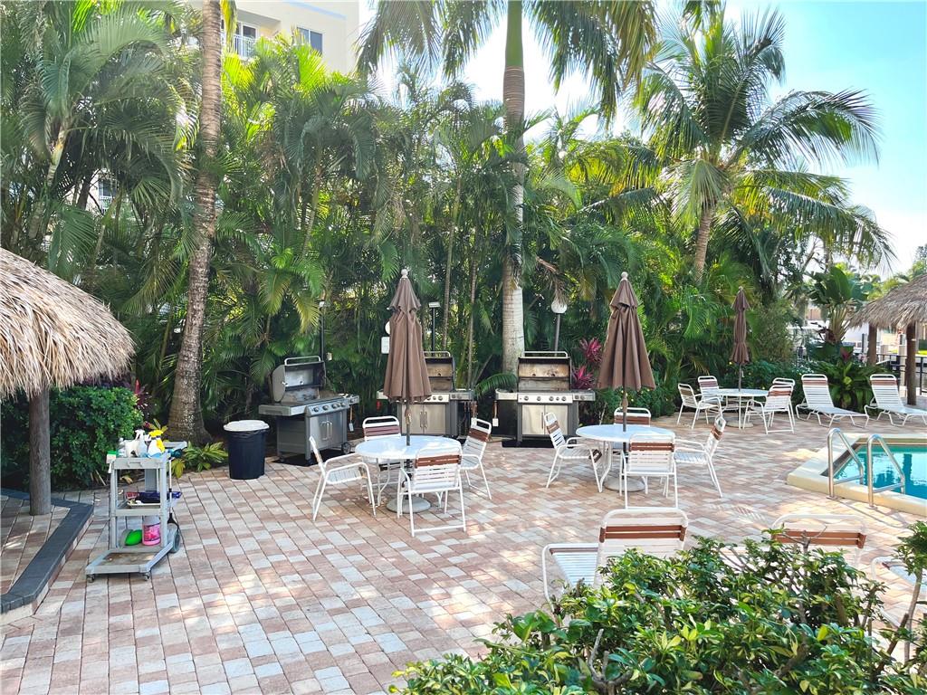 What a deal! Don't miss this beautiful condo in the beach area with incredible amenities. Units are rarely available. This penthouse unit currently offers nice views of the Intracoastal & Ocean from your balcony. This spacious & open unit offers 2022 Water Heater & Shower in bathroom, 2019 Washer/Dryer, 2021 Stainless steel appliances, large bedroom, large walk-in closet, pantry, washer/dryer in the unit and a small pet allowed. No lease first year but can then be rented for as little as 30 days once per year after the first year. The beautiful resort style pool with hot tub, tiki hut picnic area with three gas grills alongside the intracoastal. Gated complex with secure entry. 1 assigned parking space. 2023 Maintenance fee will be $2,097/Quarter.
