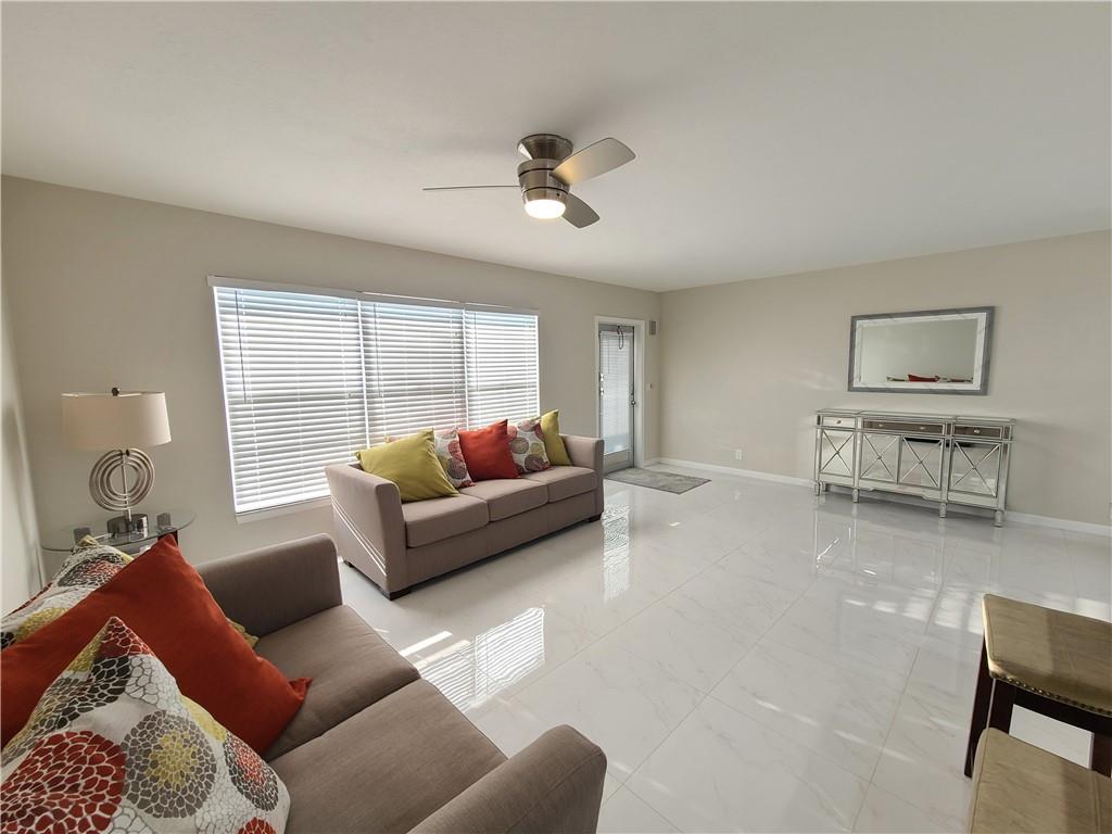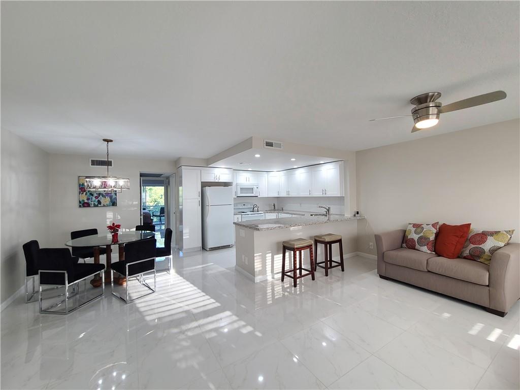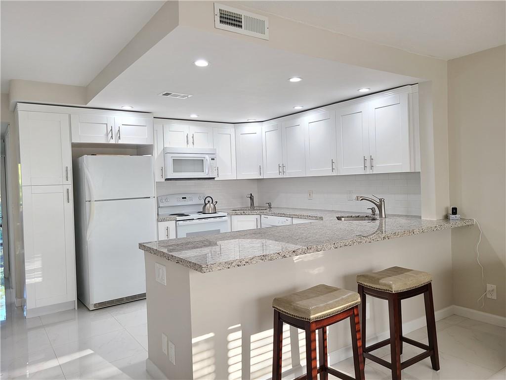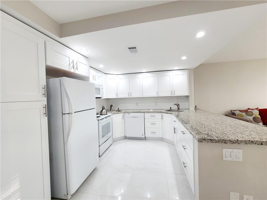 TOP OF THE LINE ALL THE WAY!! COMPLETELY UPDATED SPACIOUS 842 FEET 1 BEDROOM, 1.5 BATHS 4TH FLOOR CONDO. OPEN MODERN KITCHEN. GRANITE COUNTER TOP. LOTS OF COUNTER SPACE. DOUBLE SINK. WHITE CABINETS WITH SELF CLOSED DRAWERS & PANTRY. TILE BACKSPLASH. PORCELAINE TILE & LAMINATE FLOOR IN THE BEDROOM. 2 UPDATED BATHROOMS. SPACIOUS BEDROOM W/ WORKING AREA & OVERSIZE WALK-IN CLOSET. NEW MODERN FURNITURE. BUILDING LOCATED IN A QUIET REMOTE LAREA. ENJOY A RELAXING GARDEN VIEW FROM YOUR SCREENED PATIO WITH IMPACT SHUTTERS. BUILDING W/ RESERVE FUNDS. NEW ROOF. FRESHLY PAINTED. LOCATED STEPS TO A PRIVATE POOL & BBQ AREA ASSIGNED FOR BUILDINGS A.B.C IN GREENBRIER ONLY. SECURED BIKE STORAGE. WELCOME TO CENTURY VILLAGE W.P.B. 24/7 GATED ACTIVE 55+ COMMUNITY. MINUTES TO SHOPPING & RESTAURANTS. MUST SEE