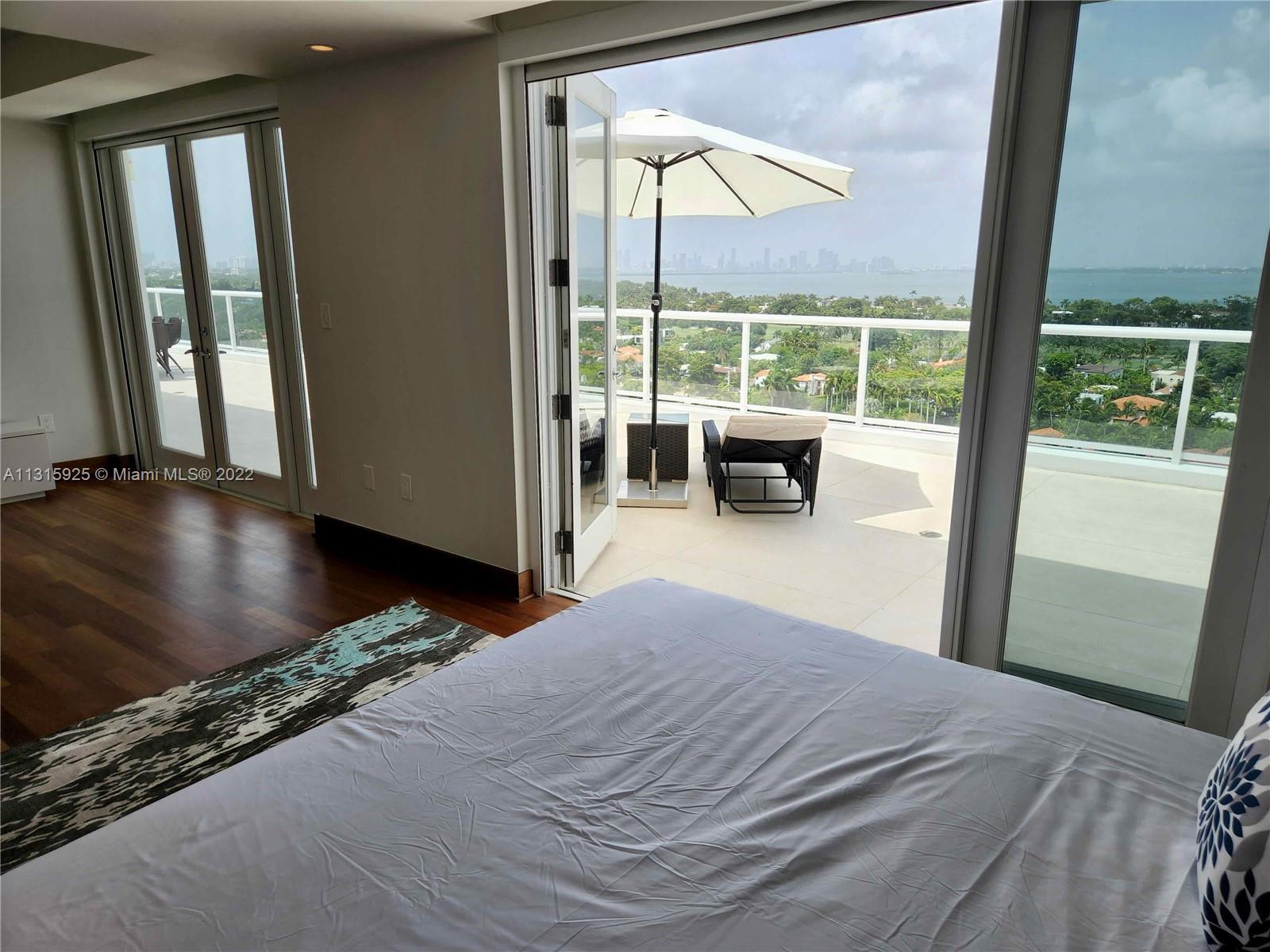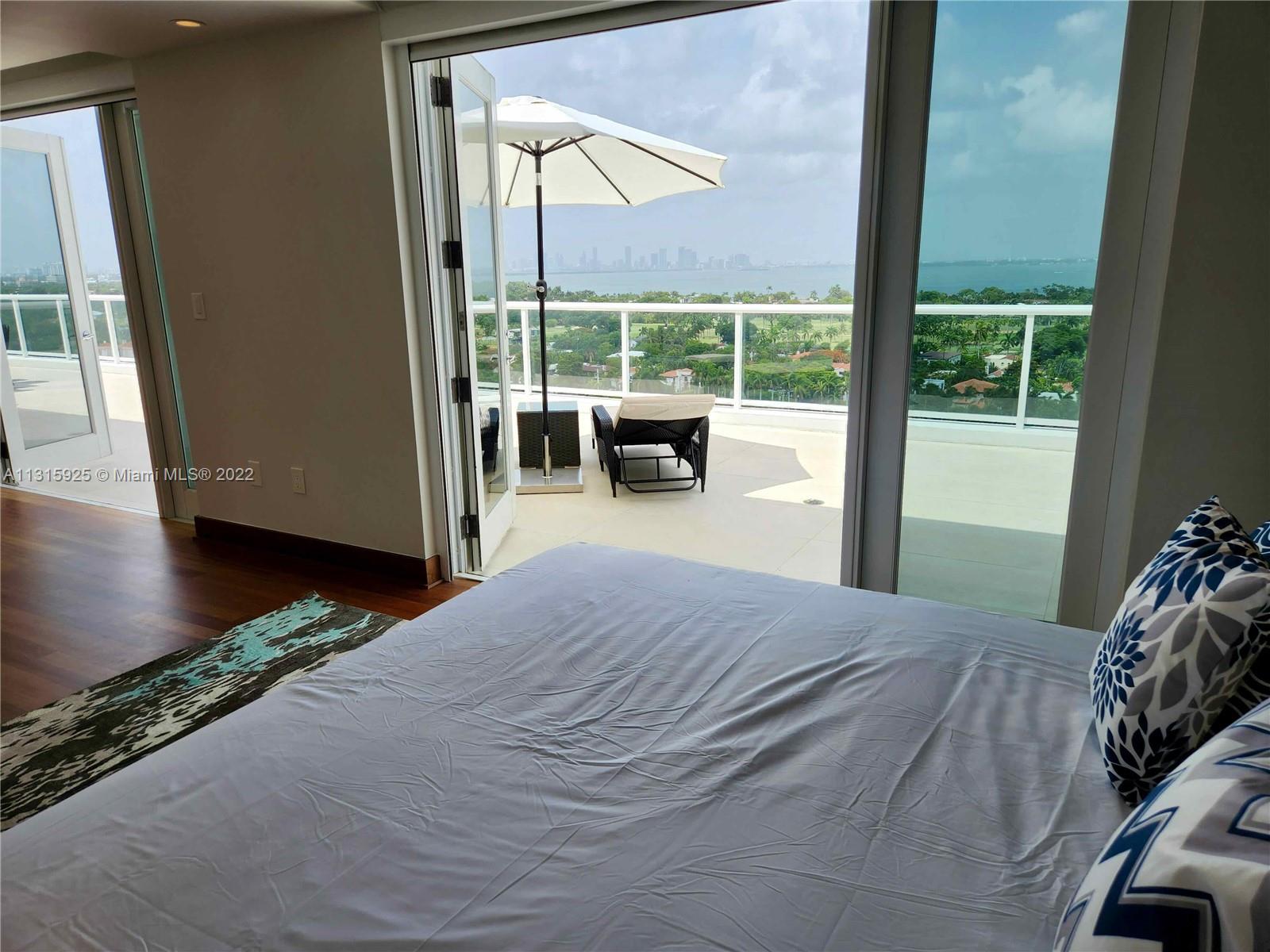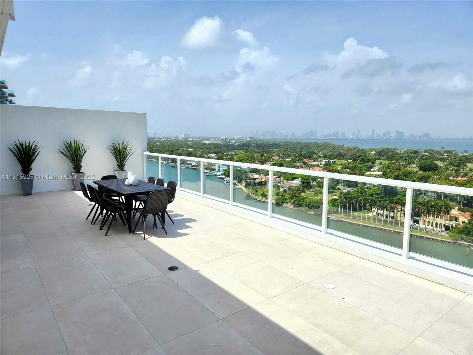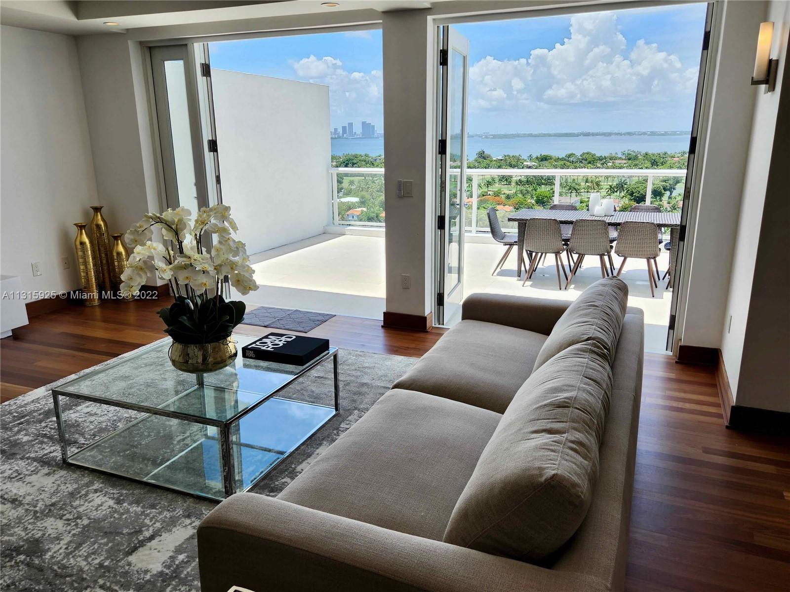 LUXURY 2 BEDROOMS, 2 FULL BATHROOMS PENTHOUSE. 1,840 SQUARE FEET UNDER AIR CONDITIONING & AN ADDITIONAL 950 SQUARE FEET OF TERRACE W/ GORGEOUS VIEWS OF THE INTRA-COASTAL, BISCAYNE BAY, LA GORCE GOLF COURSE, & DOWNTOWN MIAMI AND THE SUNSET. THIS UNIQUE PENTHOUSE INCLUDES A POOL-SIDE CABANA W/FULL BATH. THE RESIDENCE IS FULLY FURNISHED, FEATURING ITALIAN SNAIDERO CHERRY WOOD KITCHEN CABINETRY,SNAIDERO BATHROOM CABINETS AND MIELE APPLIANCES .SOLID WOOD FLOORS. MARBLE BATHROOMS. JACUZZI IN MASTER BATH.LAUNDRY ROOM. PRIVATE STORAGE ON THE APARTMENT FLOOR. PRIVATE WINE CELLAR. 2 PARKING SPACES ASSIGNED. BUILDING COMPLETELY RENOVATED WITH NEW GYM, POOL AREA, ELEVATORS, LOBBY, HEATED POOL, RESTAURANT, MASSAGE ROOM. TV/WIFI INCLUDED.BUILDING HAS PRIVATE MARINA. BOATERS DREAM.