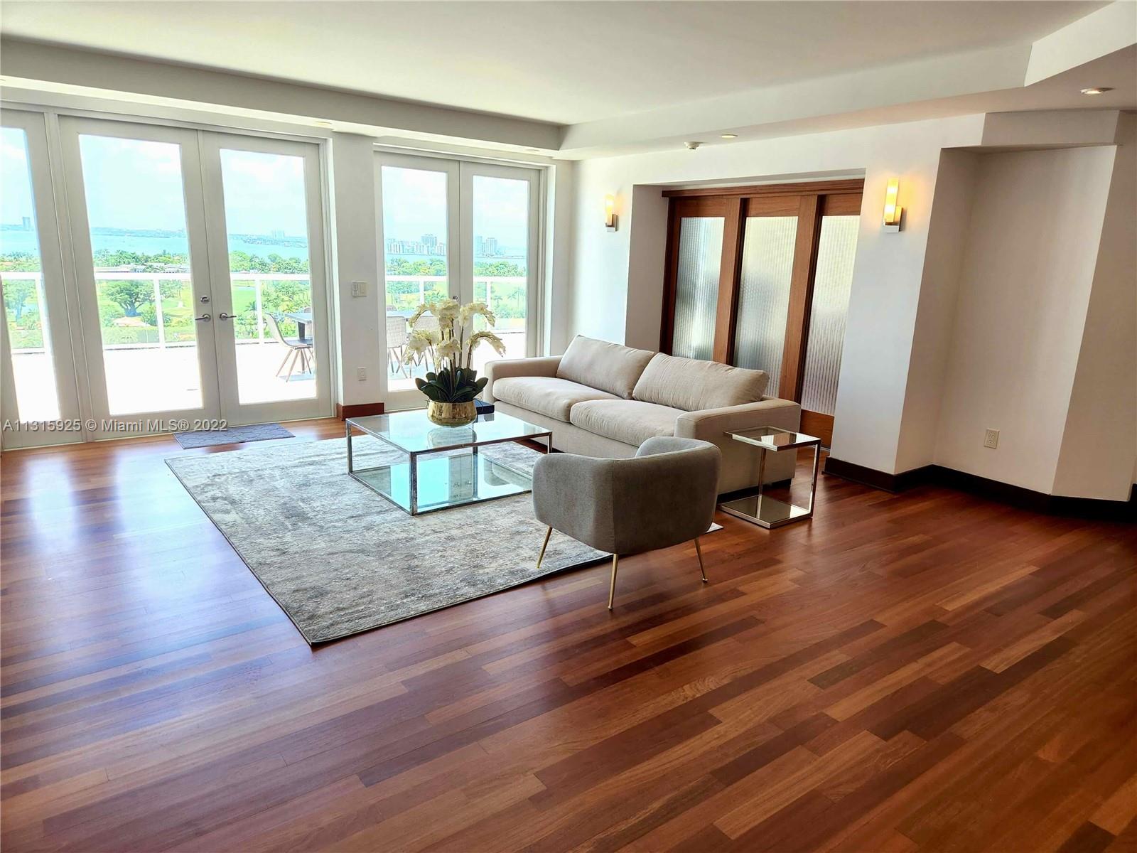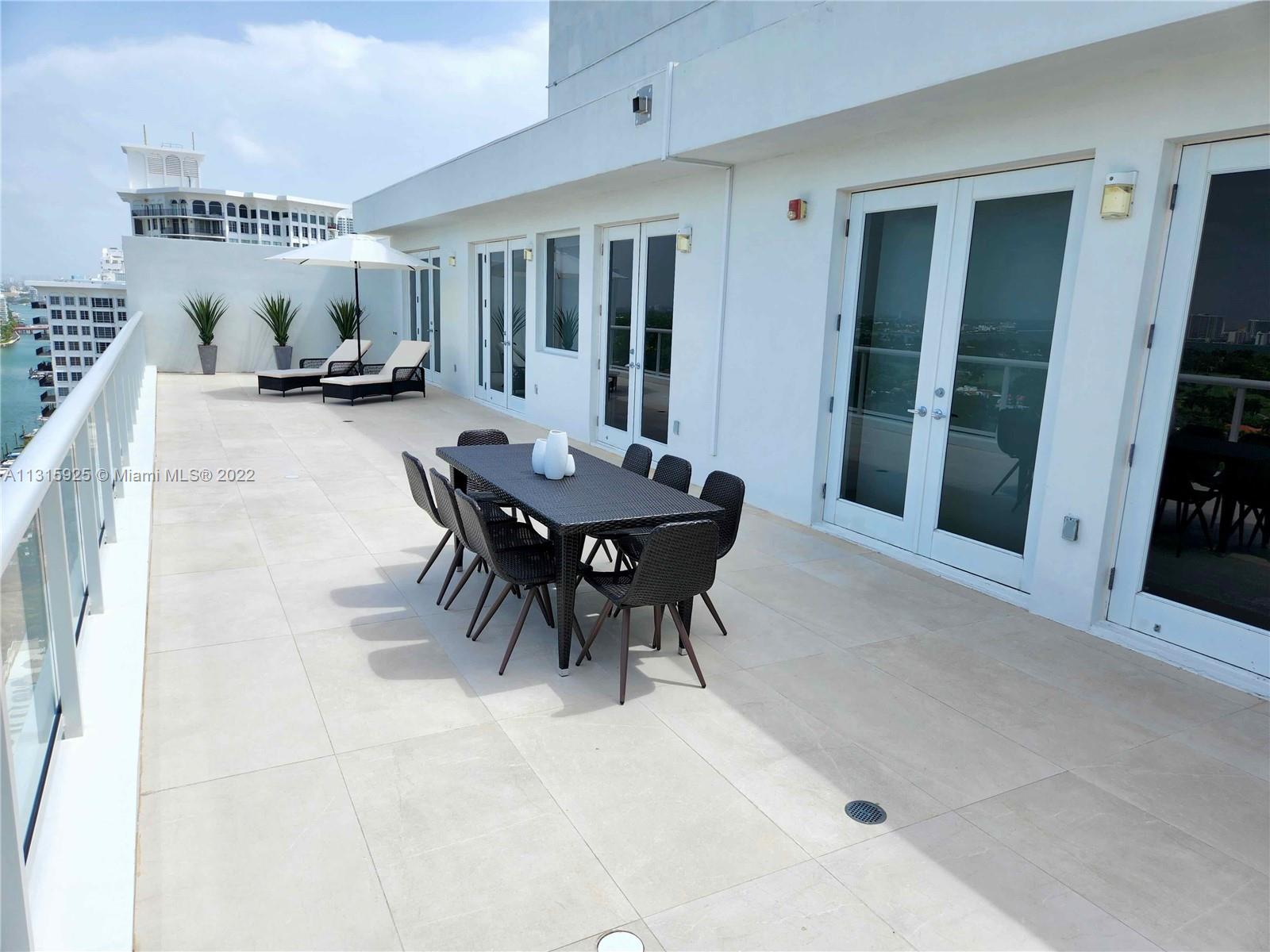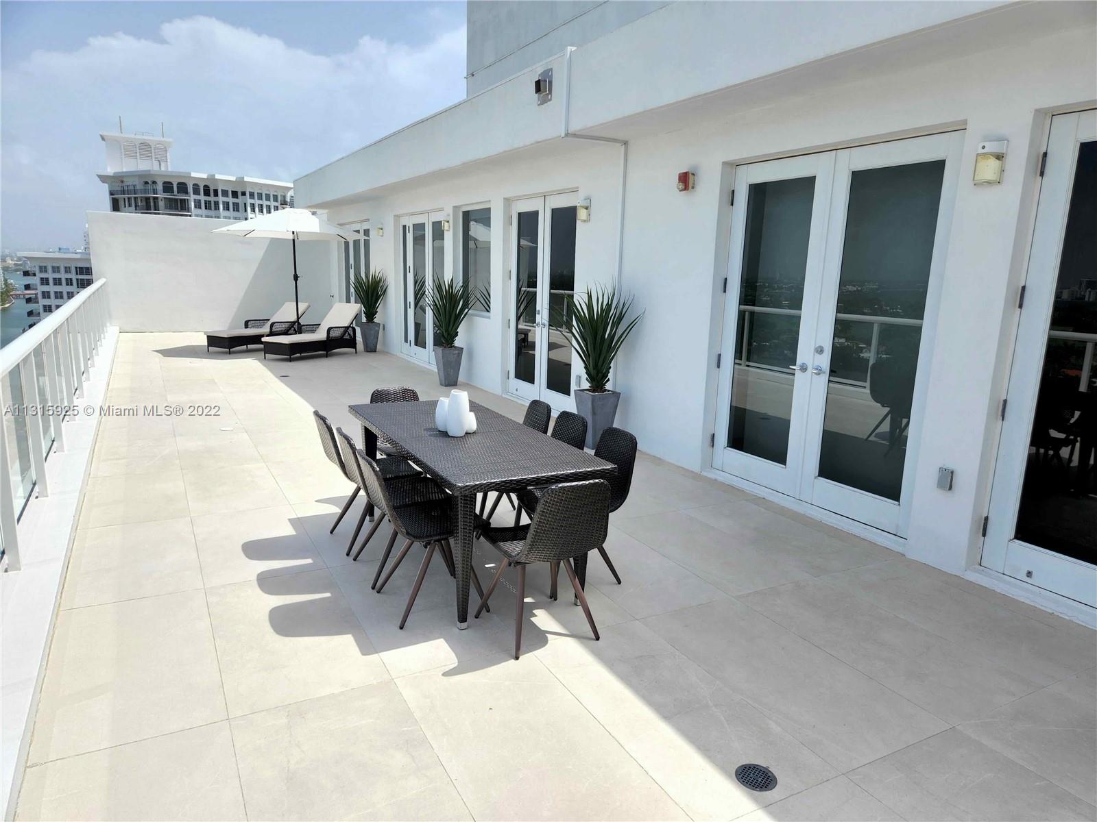 LUXURY 2 BEDROOMS, 2 FULL BATHROOMS PENTHOUSE. 1,840 SQUARE FEET UNDER AIR CONDITIONING & AN ADDITIONAL 950 SQUARE FEET OF TERRACE W/ GORGEOUS VIEWS OF THE INTRA-COASTAL, BISCAYNE BAY, LA GORCE GOLF COURSE, & DOWNTOWN MIAMI AND THE SUNSET. THIS UNIQUE PENTHOUSE INCLUDES A POOL-SIDE CABANA W/FULL BATH. THE RESIDENCE IS FULLY FURNISHED, FEATURING ITALIAN SNAIDERO CHERRY WOOD KITCHEN CABINETRY,SNAIDERO BATHROOM CABINETS AND MIELE APPLIANCES .SOLID WOOD FLOORS. MARBLE BATHROOMS. JACUZZI IN MASTER BATH.LAUNDRY ROOM. PRIVATE STORAGE ON THE APARTMENT FLOOR. PRIVATE WINE CELLAR. 2 PARKING SPACES ASSIGNED. BUILDING COMPLETELY RENOVATED WITH NEW GYM, POOL AREA, ELEVATORS, LOBBY, HEATED POOL, RESTAURANT, MASSAGE ROOM. TV/WIFI INCLUDED.BUILDING HAS PRIVATE MARINA. BOATERS DREAM.