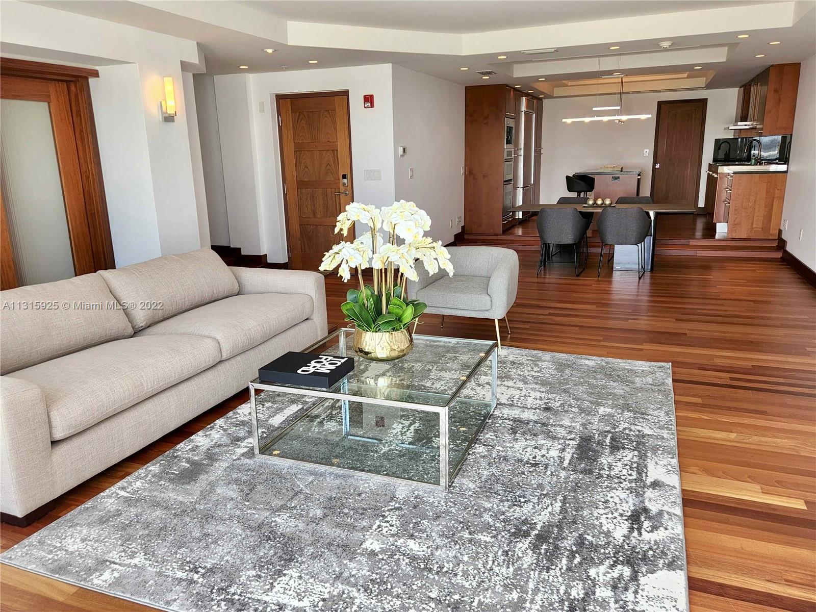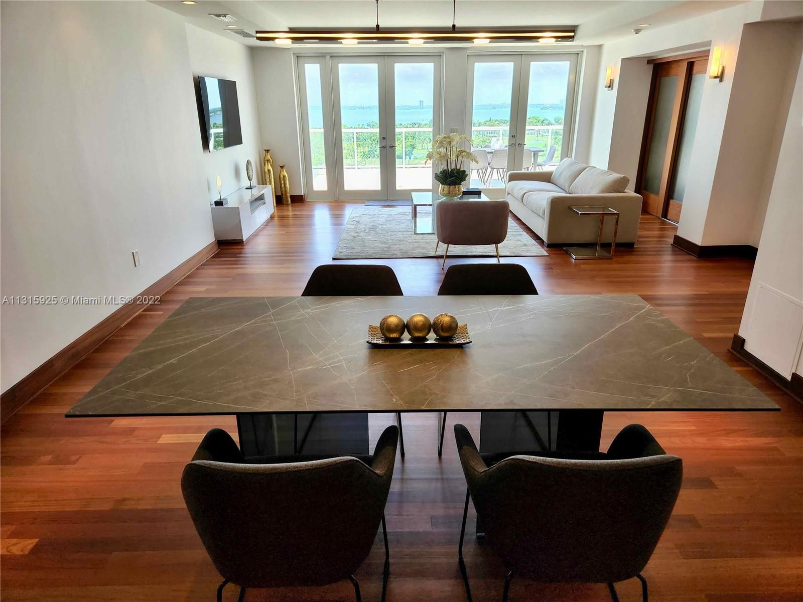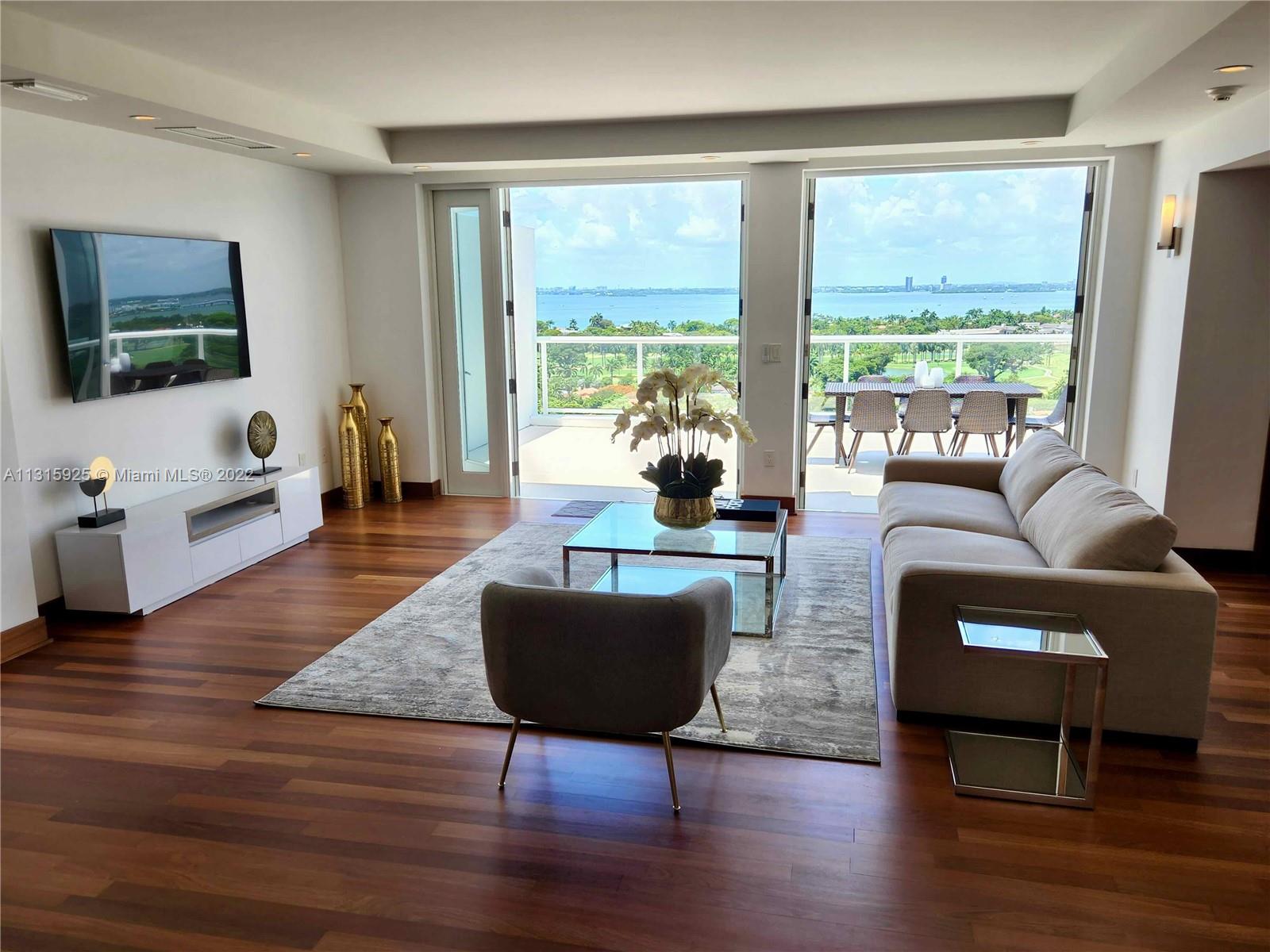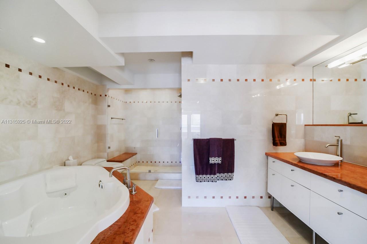 LUXURY 2 BEDROOMS, 2 FULL BATHROOMS PENTHOUSE. 1,840 SQUARE FEET UNDER AIR CONDITIONING & AN ADDITIONAL 950 SQUARE FEET OF TERRACE W/ GORGEOUS VIEWS OF THE INTRA-COASTAL, BISCAYNE BAY, LA GORCE GOLF COURSE, & DOWNTOWN MIAMI AND THE SUNSET. THIS UNIQUE PENTHOUSE INCLUDES A POOL-SIDE CABANA W/FULL BATH. THE RESIDENCE IS FULLY FURNISHED, FEATURING ITALIAN SNAIDERO CHERRY WOOD KITCHEN CABINETRY,SNAIDERO BATHROOM CABINETS AND MIELE APPLIANCES .SOLID WOOD FLOORS. MARBLE BATHROOMS. JACUZZI IN MASTER BATH.LAUNDRY ROOM. PRIVATE STORAGE ON THE APARTMENT FLOOR. PRIVATE WINE CELLAR. 2 PARKING SPACES ASSIGNED. BUILDING COMPLETELY RENOVATED WITH NEW GYM, POOL AREA, ELEVATORS, LOBBY, HEATED POOL, RESTAURANT, MASSAGE ROOM. TV/WIFI INCLUDED.BUILDING HAS PRIVATE MARINA. BOATERS DREAM.