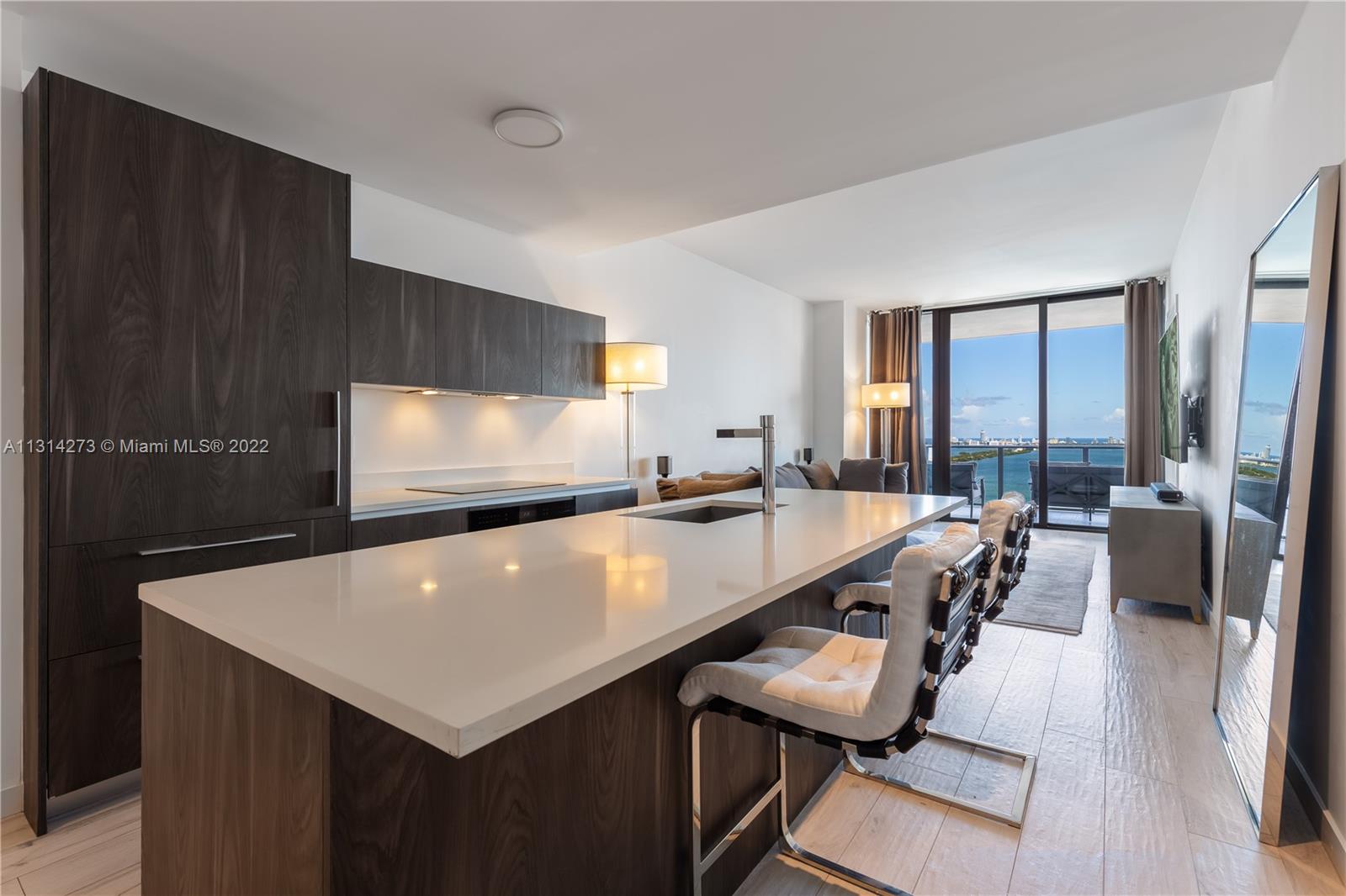 Spacious 1 Bedroom 2 full bathroom apartment with panoramic views of the Biscayne Bay at the luxurious Gran Paraiso. Apartment features subzero/wolf kitchen appliances, electric blinds and a walking closet. Enjoy Resort-Style Amenities - Gym, yoga room, spa, sauna, treatment room, bowling, movie theater, cigar lounge, tennis courts, beautiful parks, and lush gardens. Wake up in paradise!
